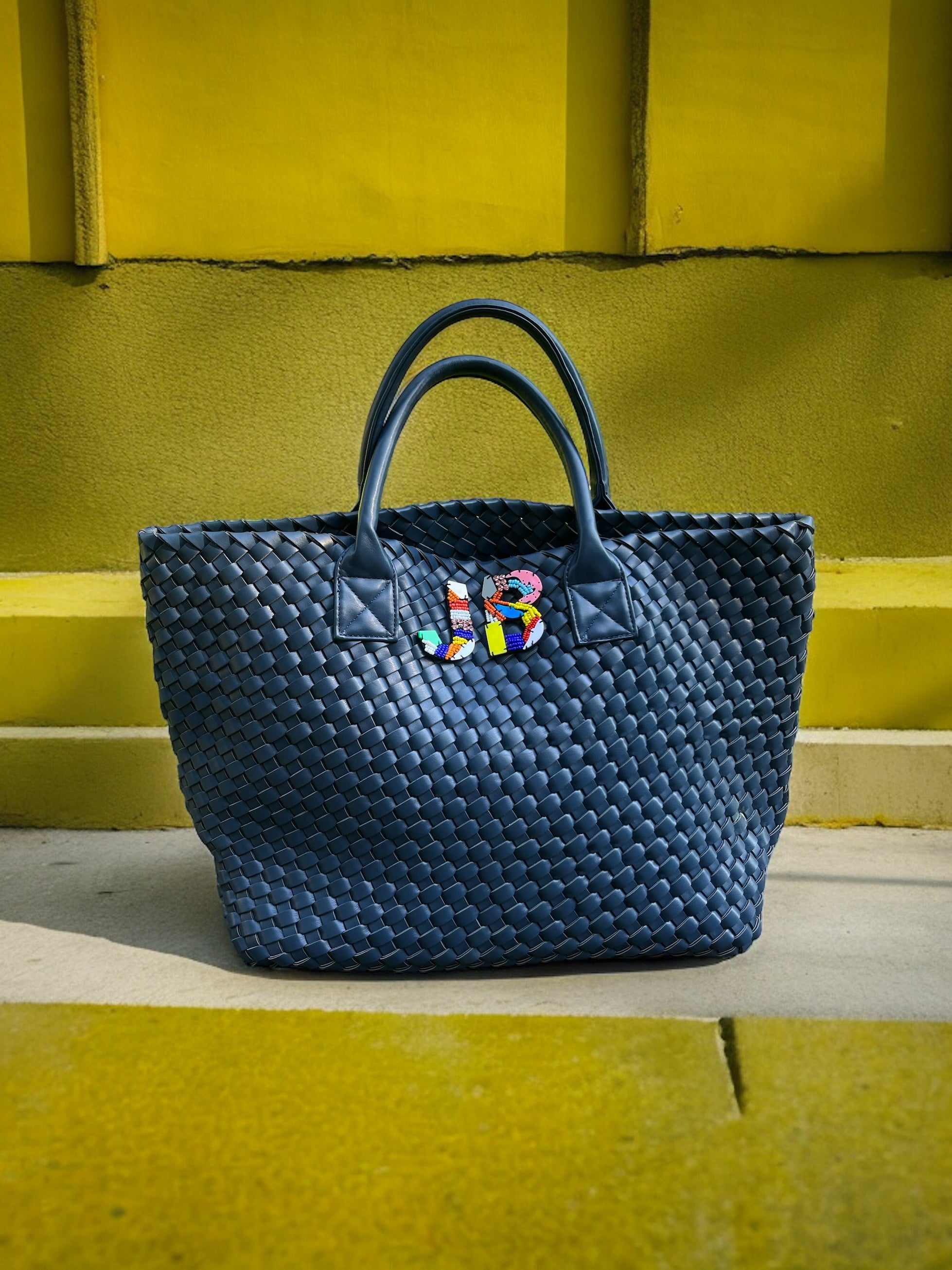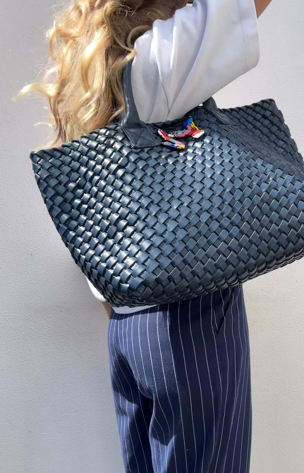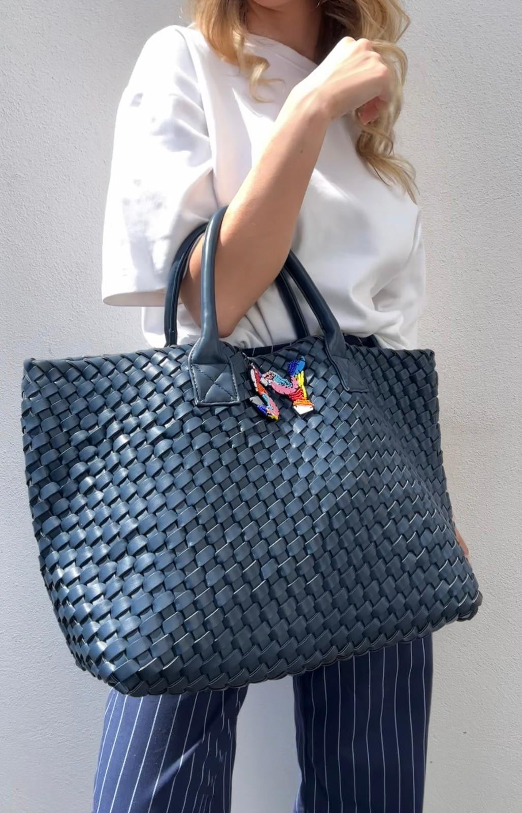 DARK BLUE WOVEN SHOPPER BAG