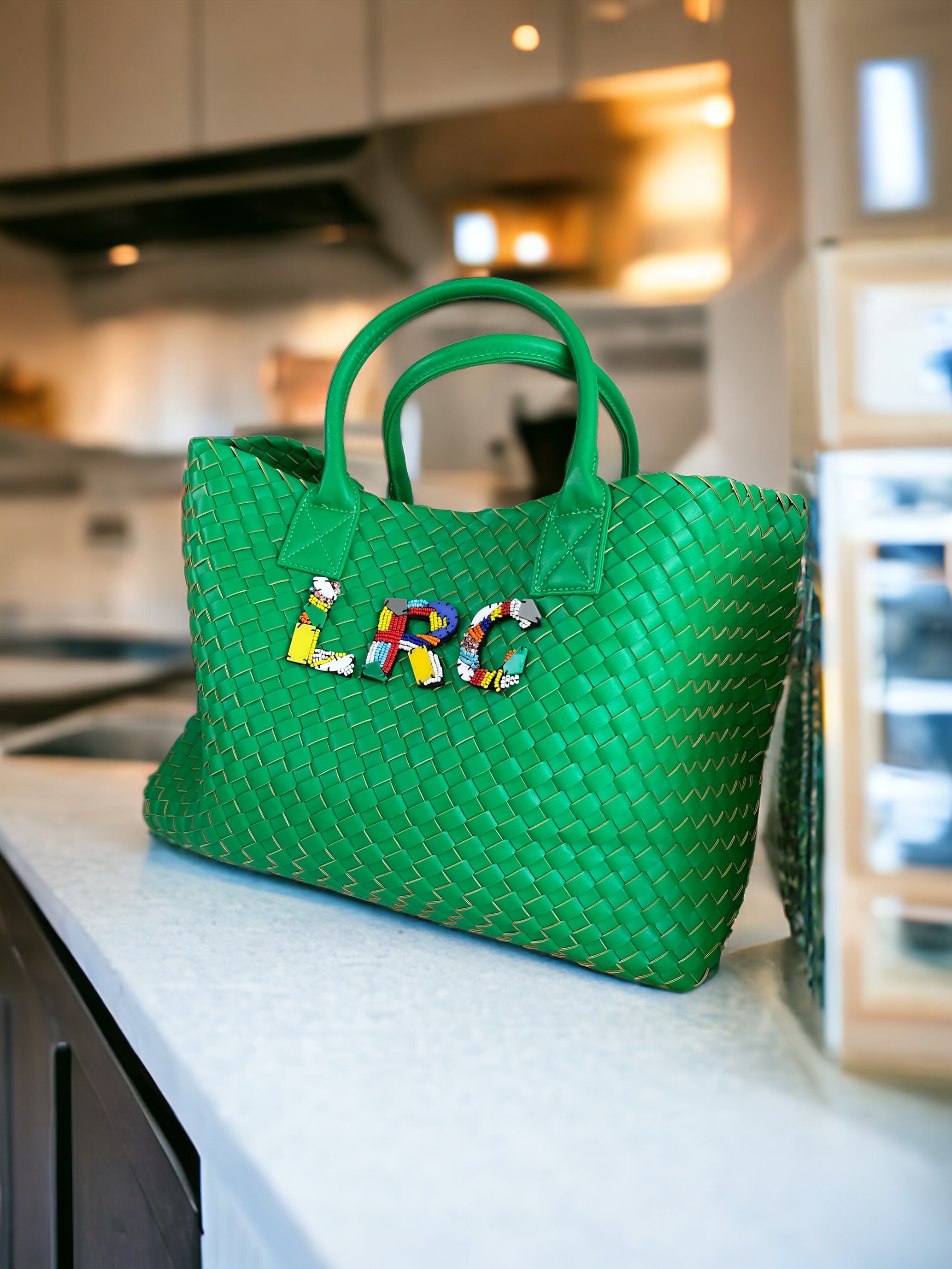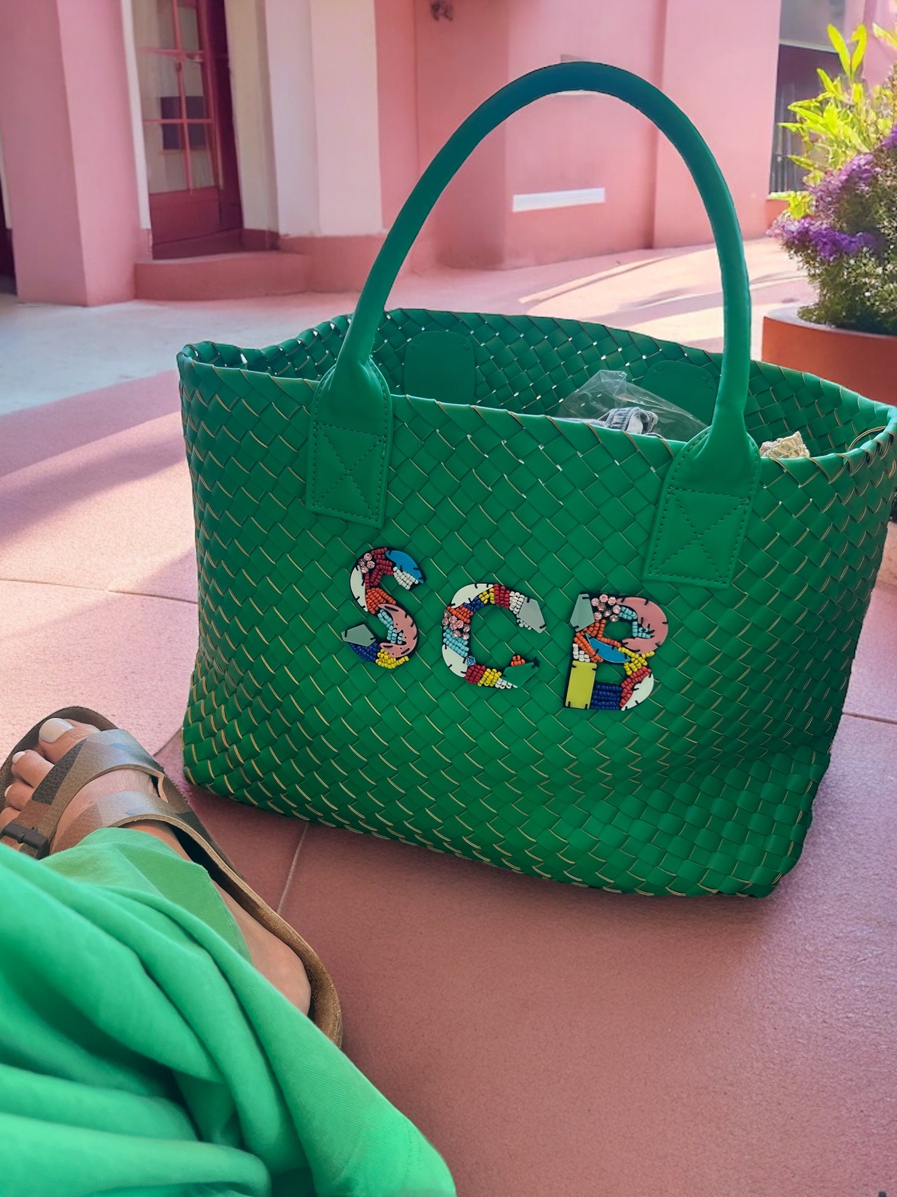 GREEN WOVEN SHOPPER BAG