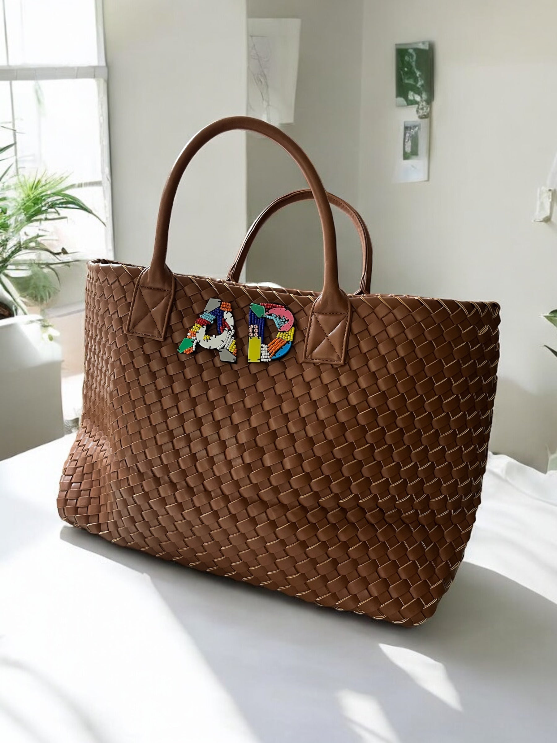 BROWN WOVEN SHOPPER BAG