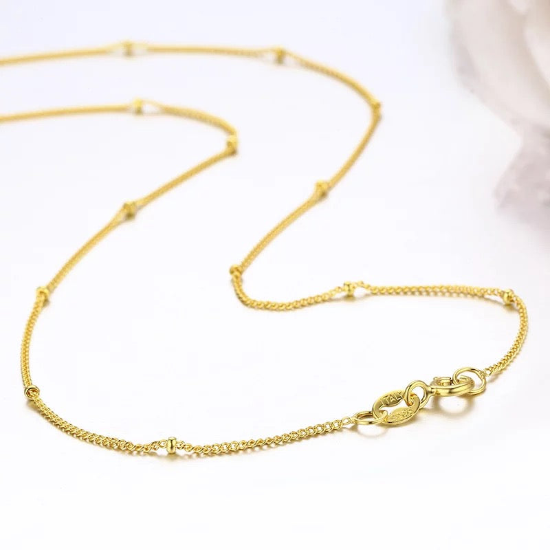Gold plated strung on an electroplated gold chain so they do not tarnish easily and keep their colour