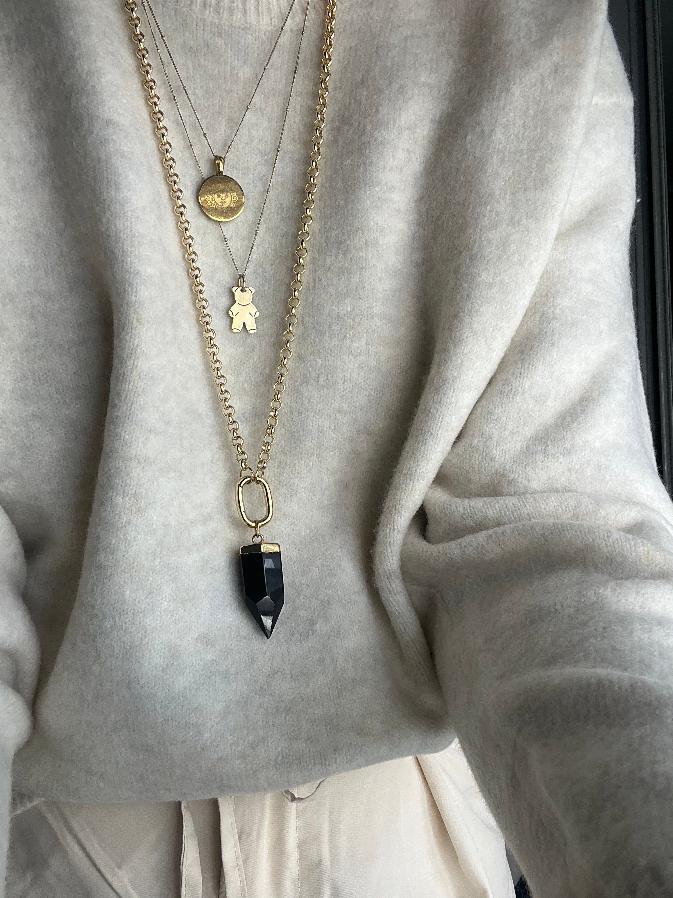 The perfect pendant necklace with crystal drop. Strung on a weighty gold link chain
