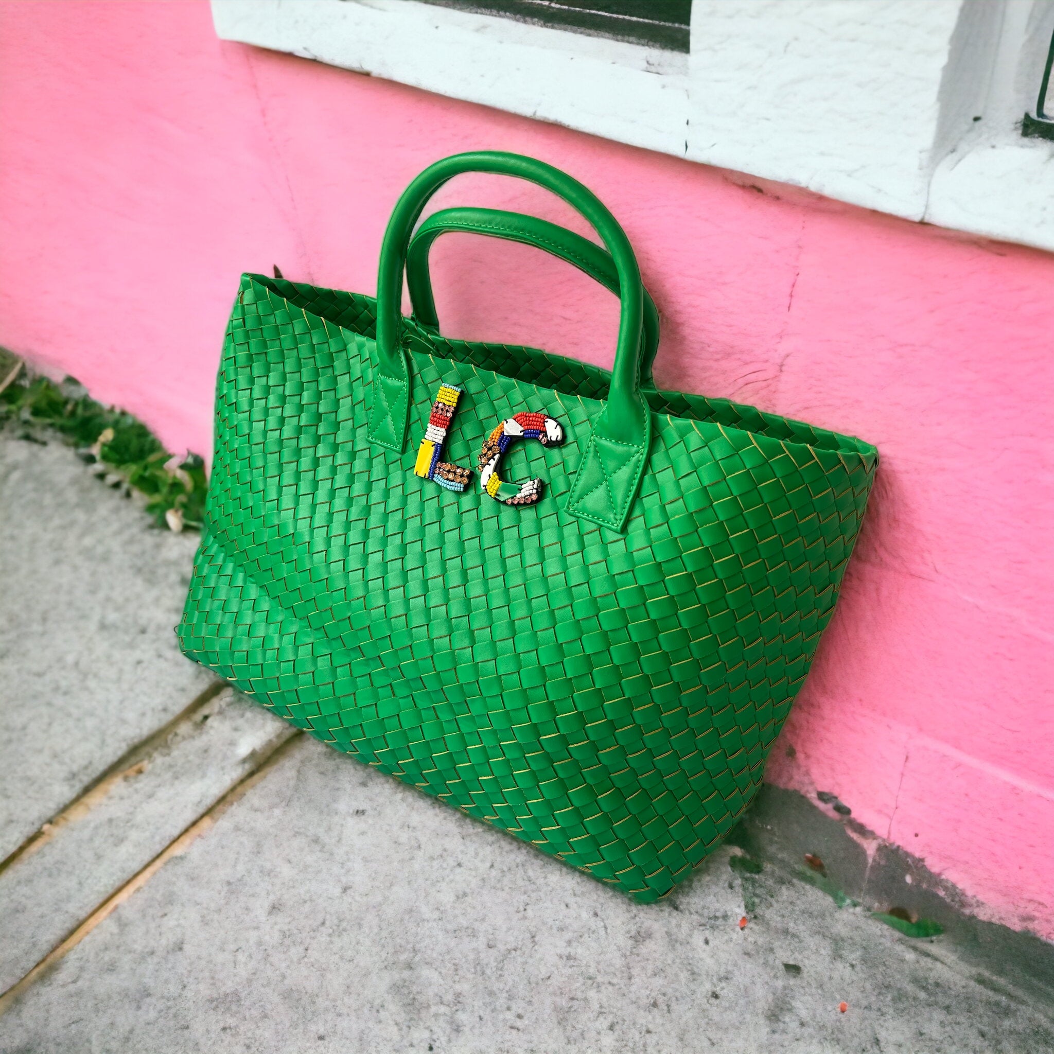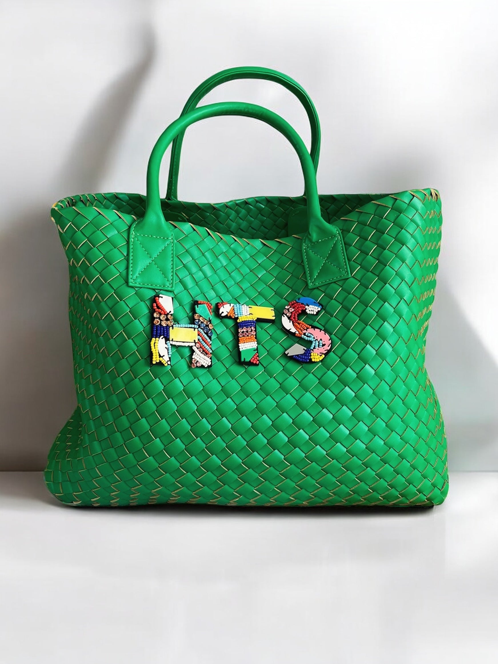 GREEN WOVEN SHOPPER BAG