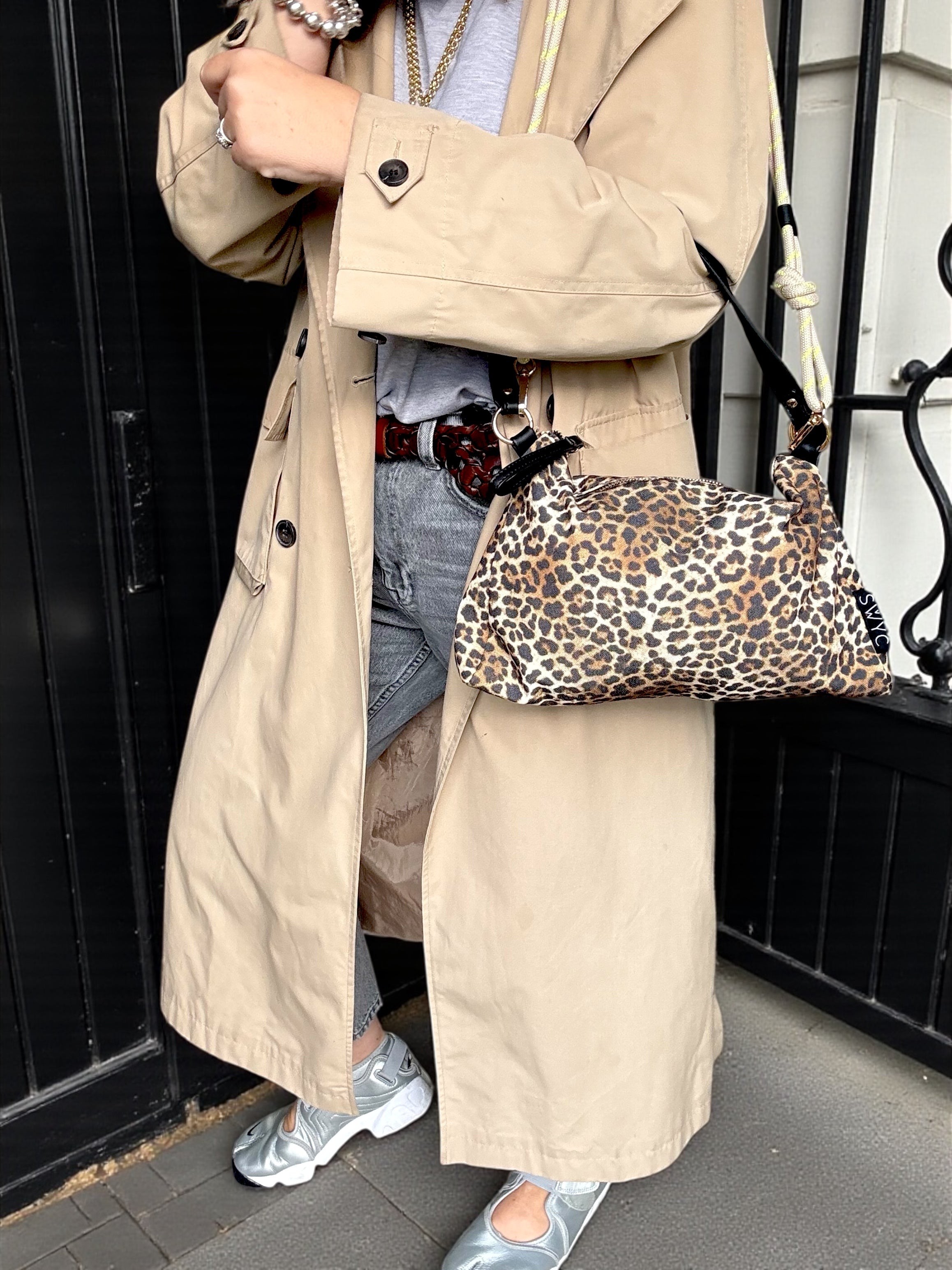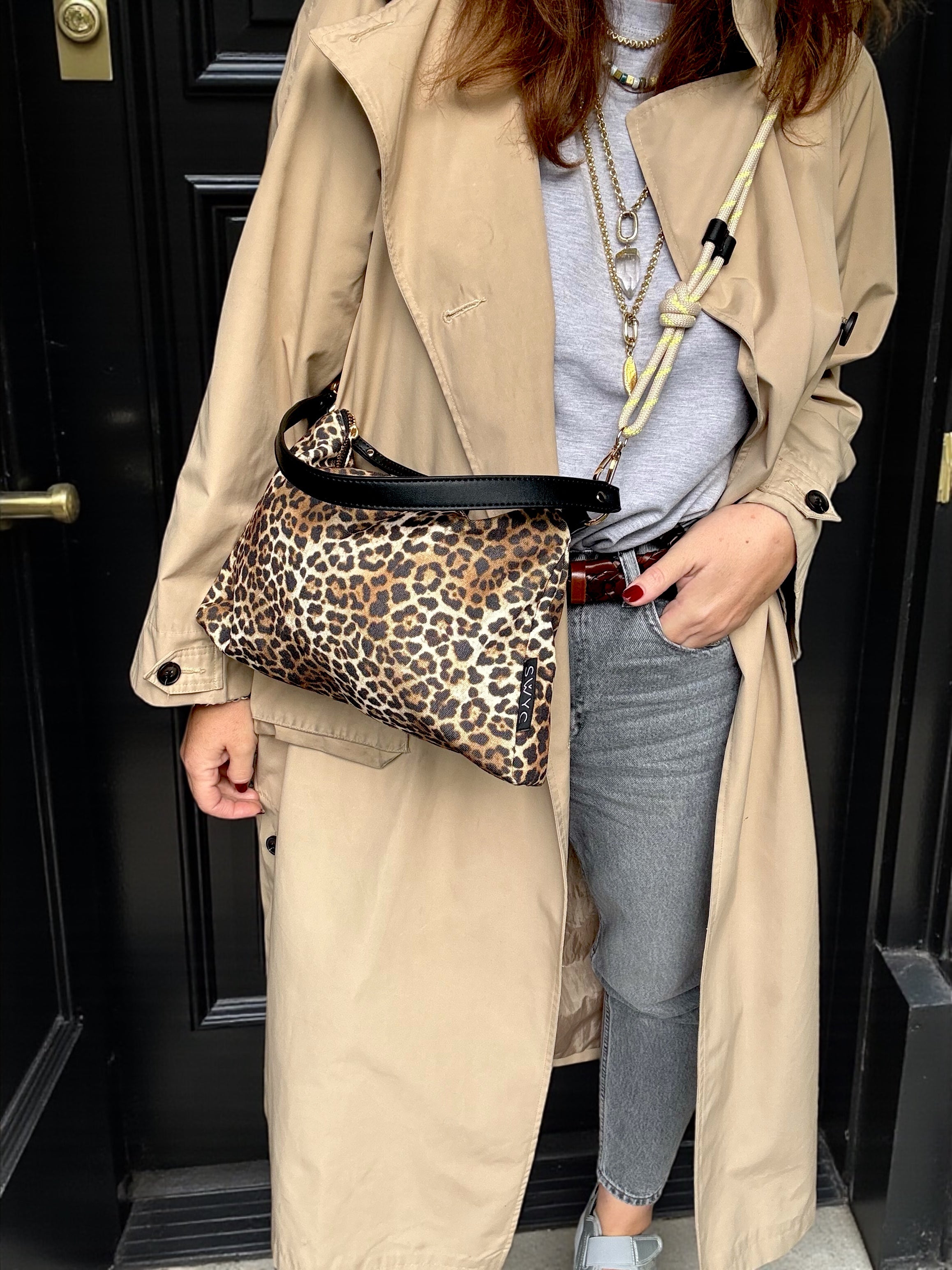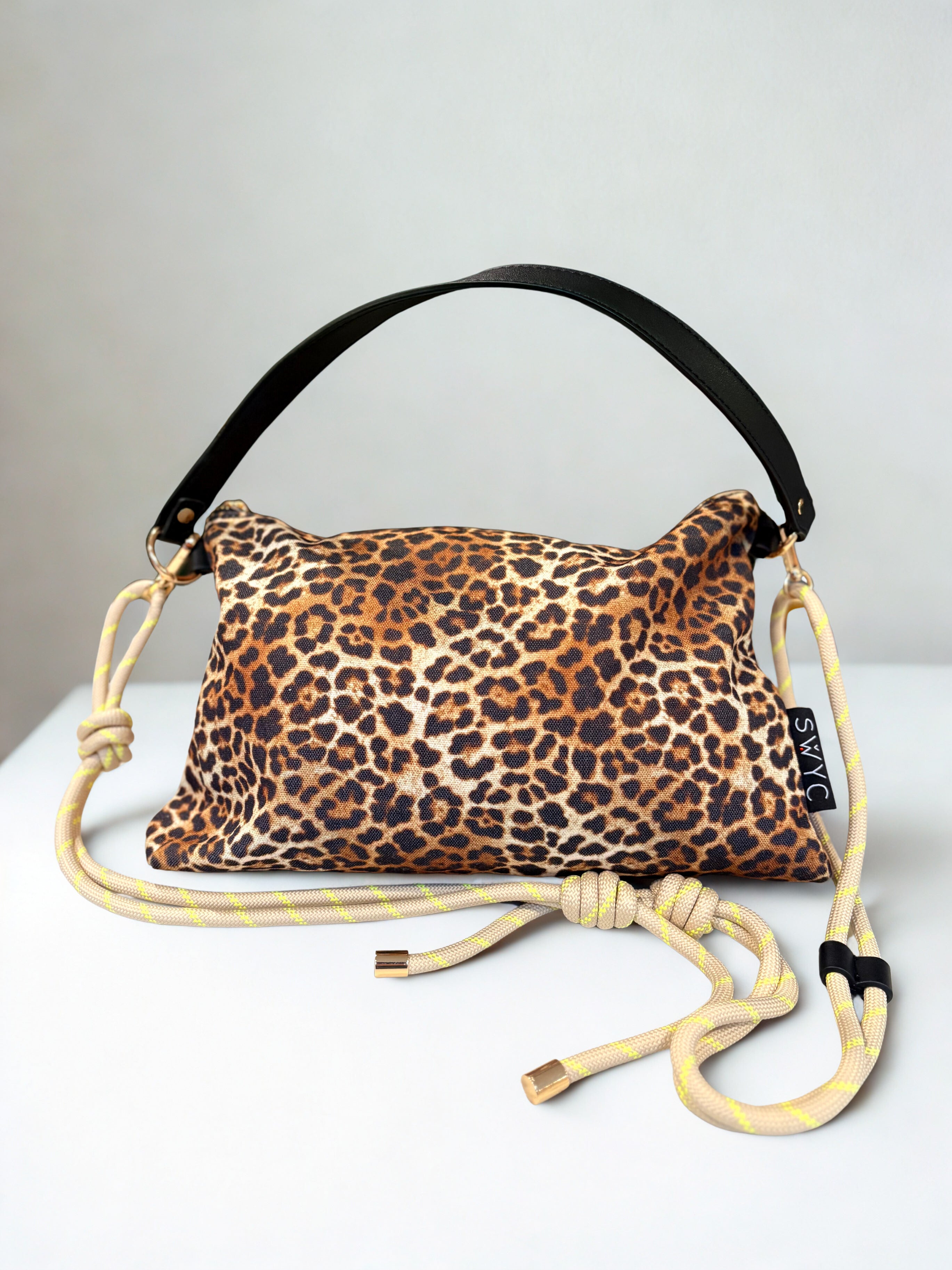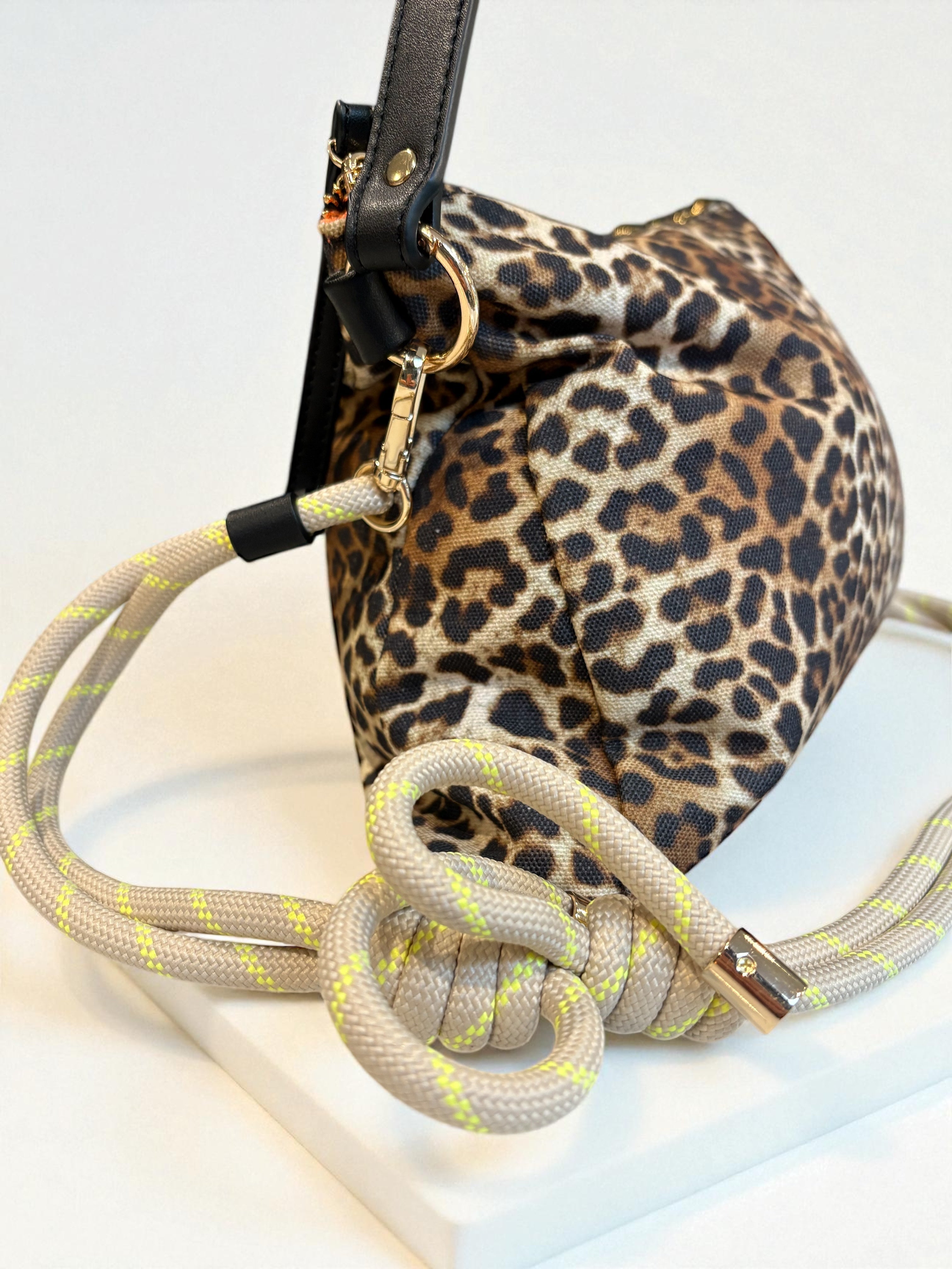 Leopard Print Luxe Crossbody Shoulder Bag with Interchangeable Rope Strap