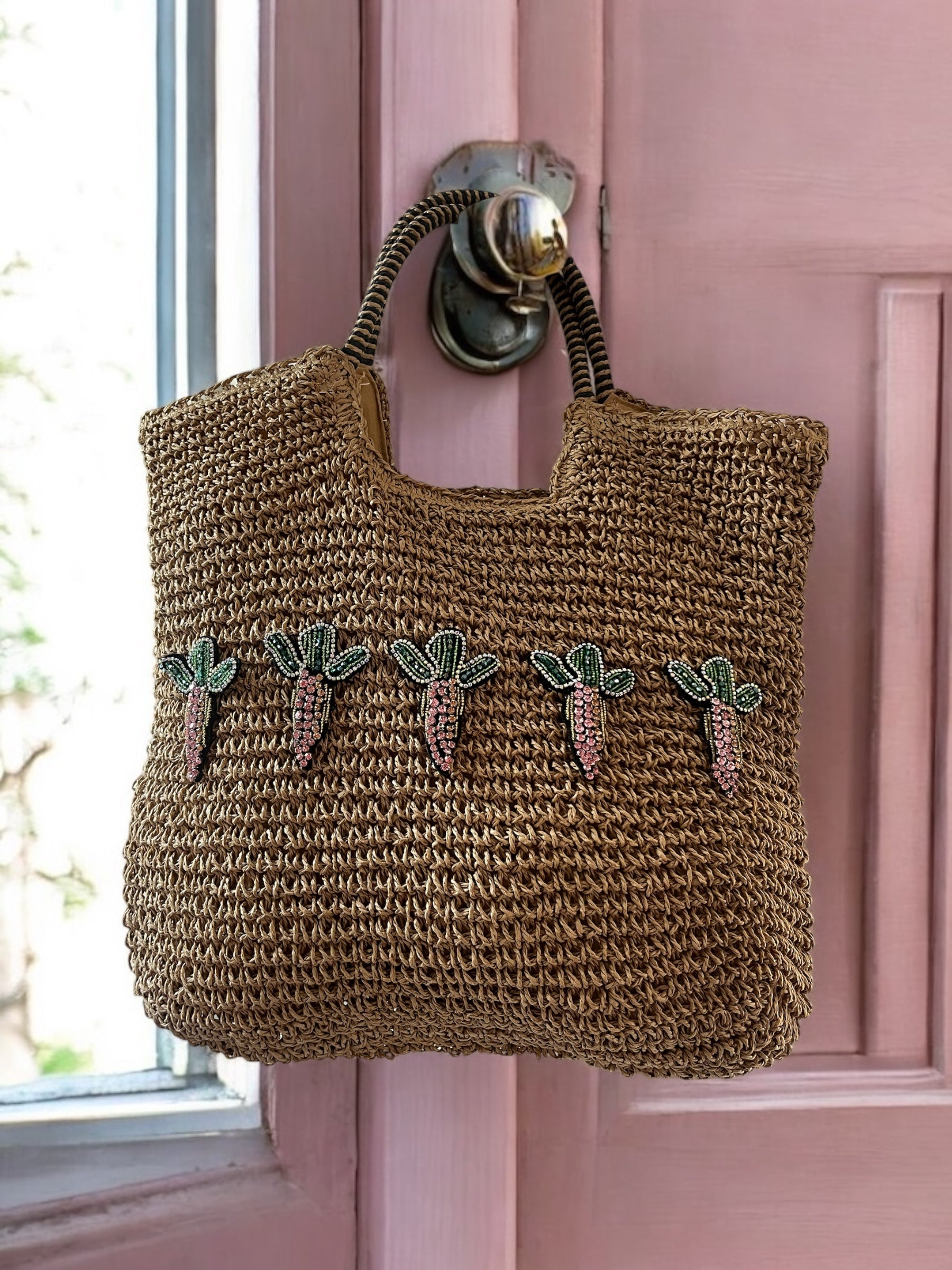 The Pink Carrot Straw Basket Bag is your go-to accessory for both style and functionality. Expertly crafted from durable, handwoven raffia, this charming bag features a classic basket design with a modern twist. Its natural straw texture offers a chic, earthy vibe, perfect for beach days, shopping trips, or casual outings. The bag is equipped with a convenient zip closure and an interior pocket, keeping your essentials safe and organized while you enjoy your day.