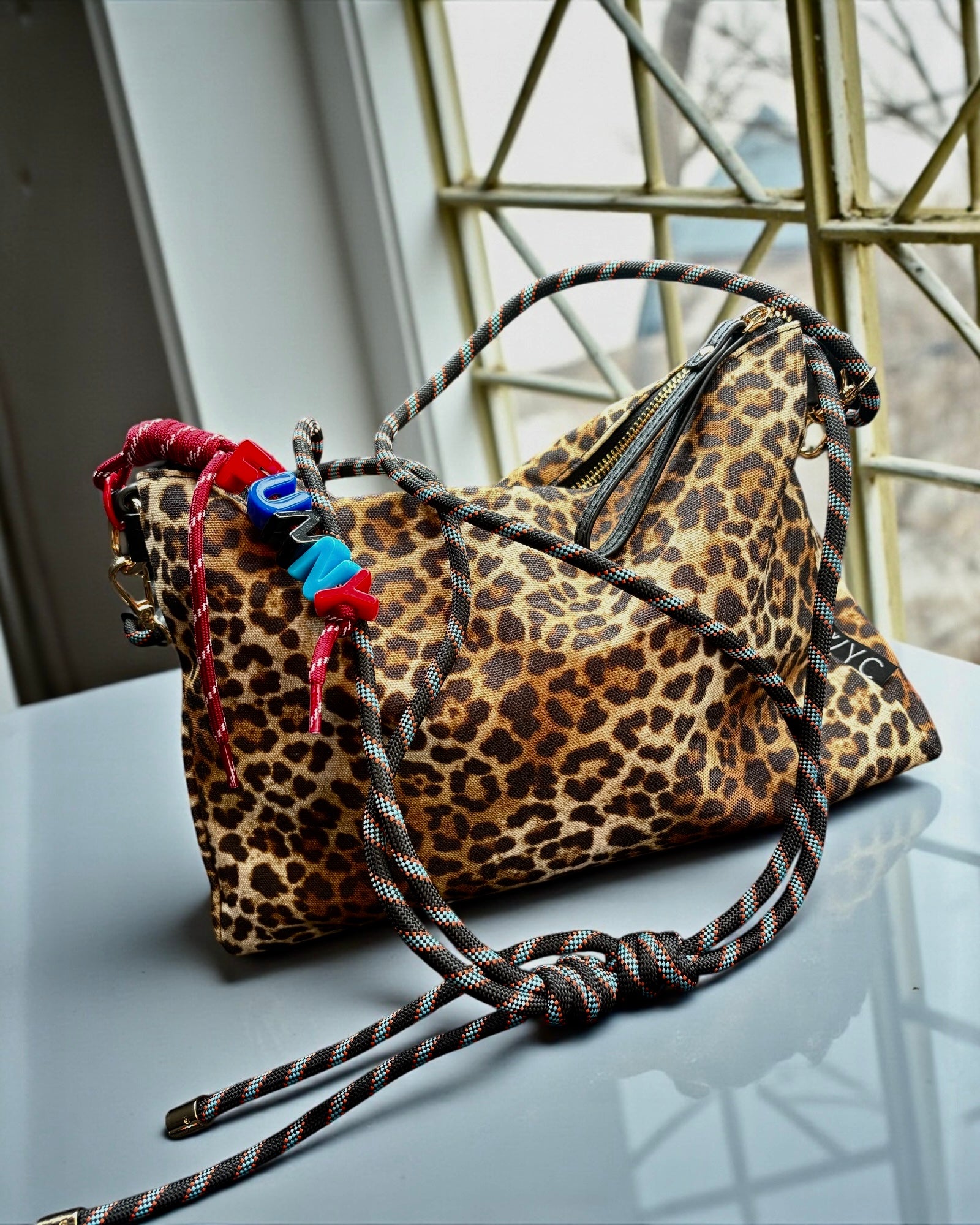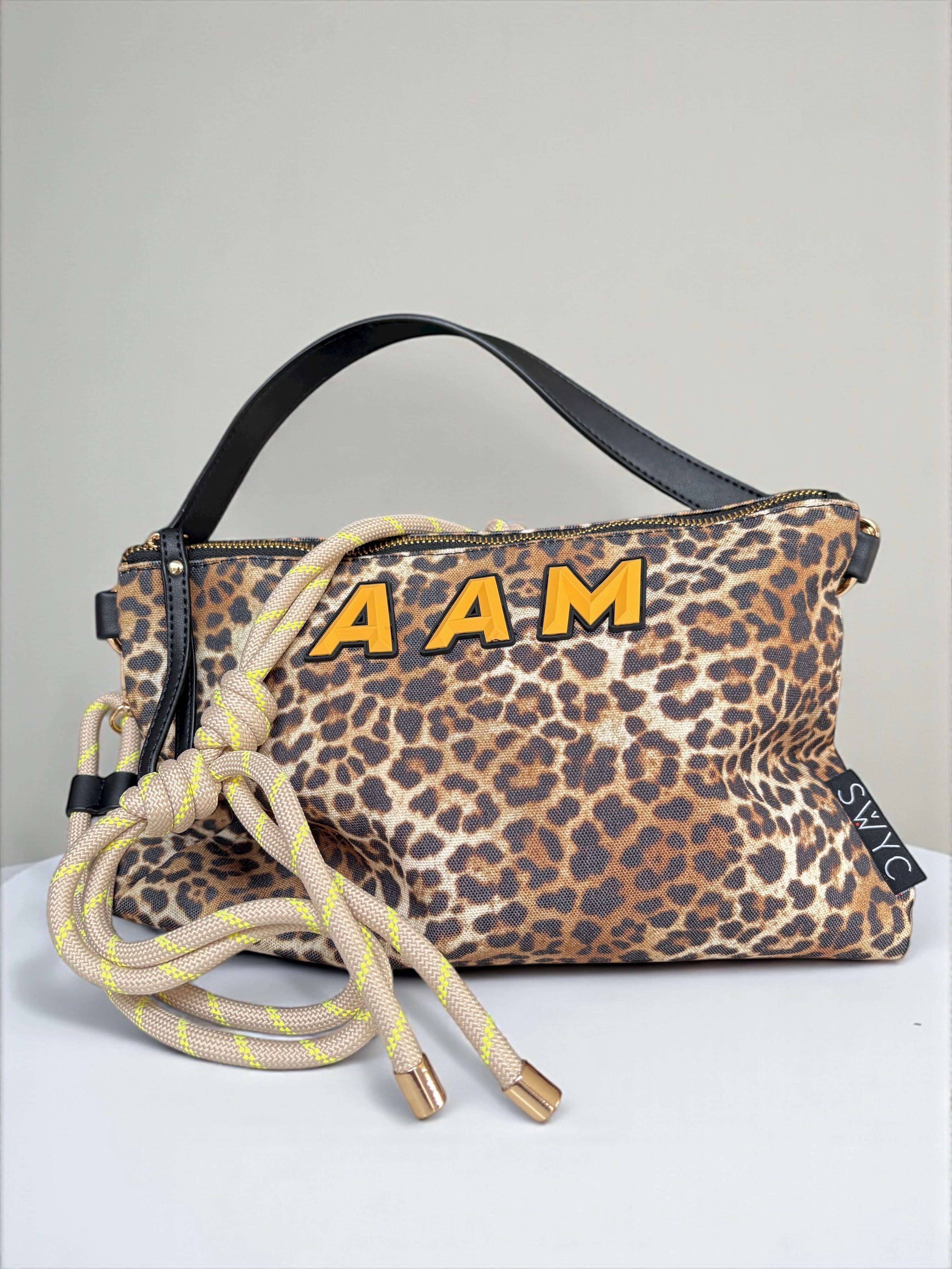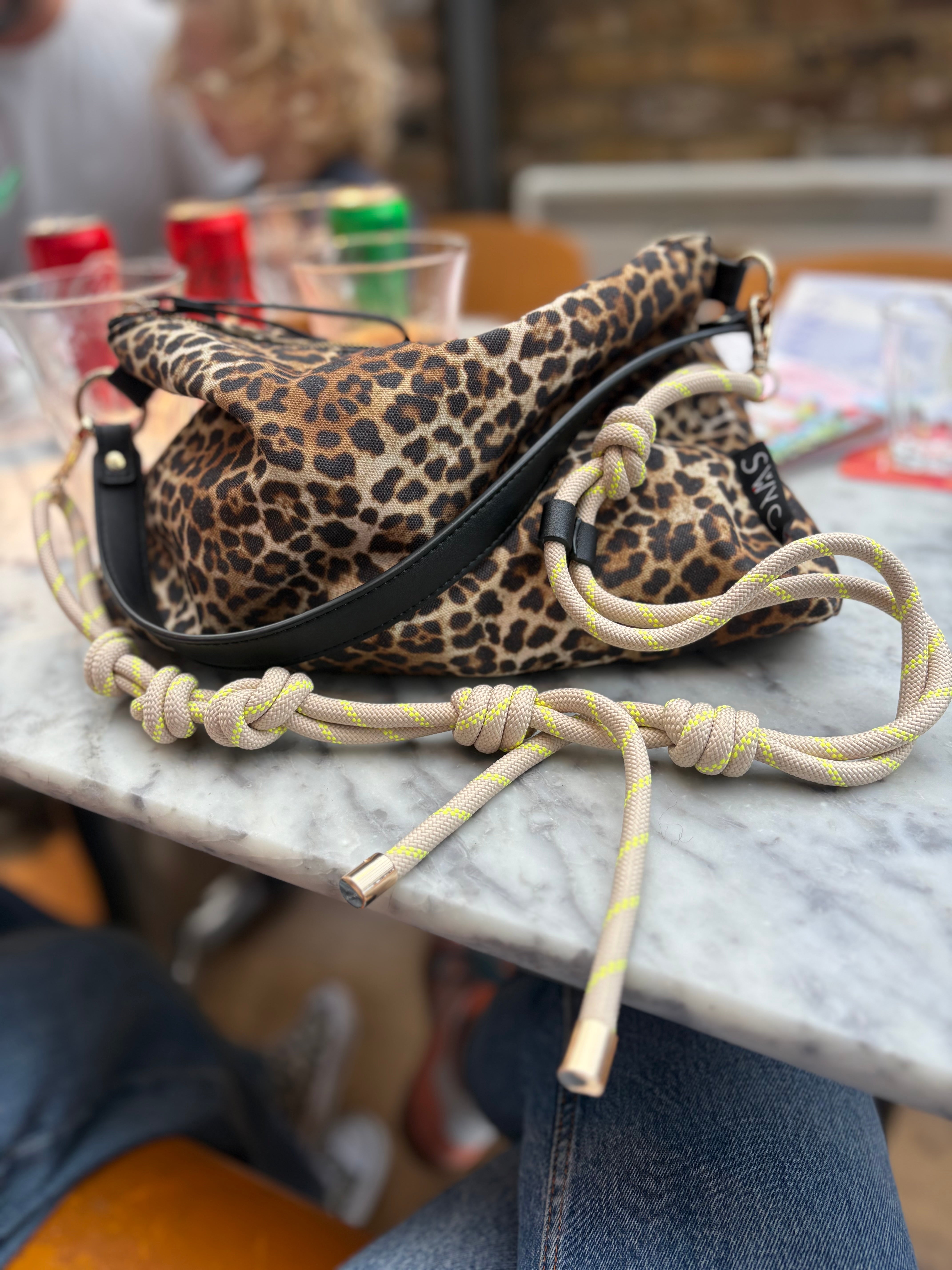 Leopard Print Luxe Crossbody Shoulder Bag with Interchangeable Rope Strap