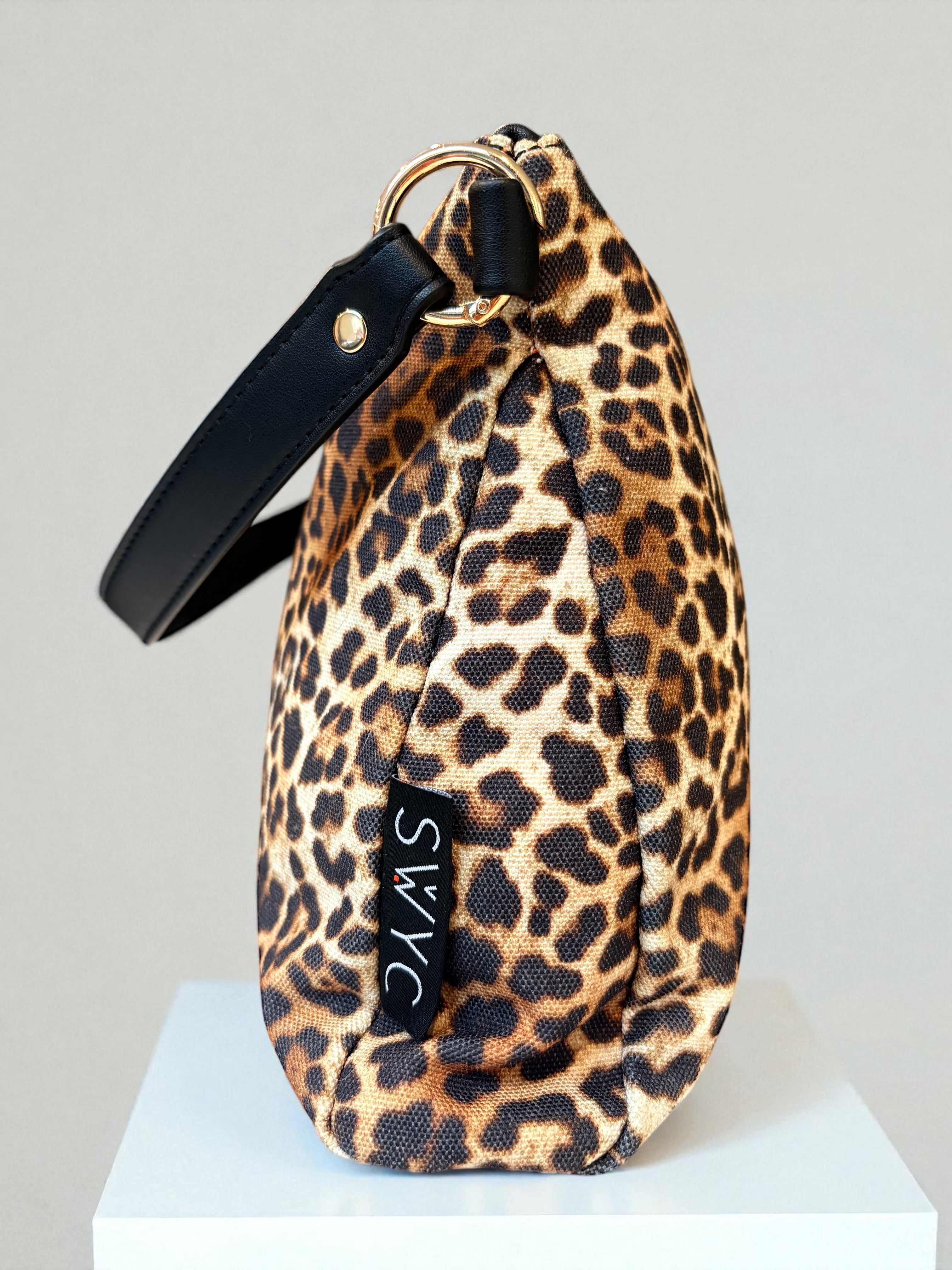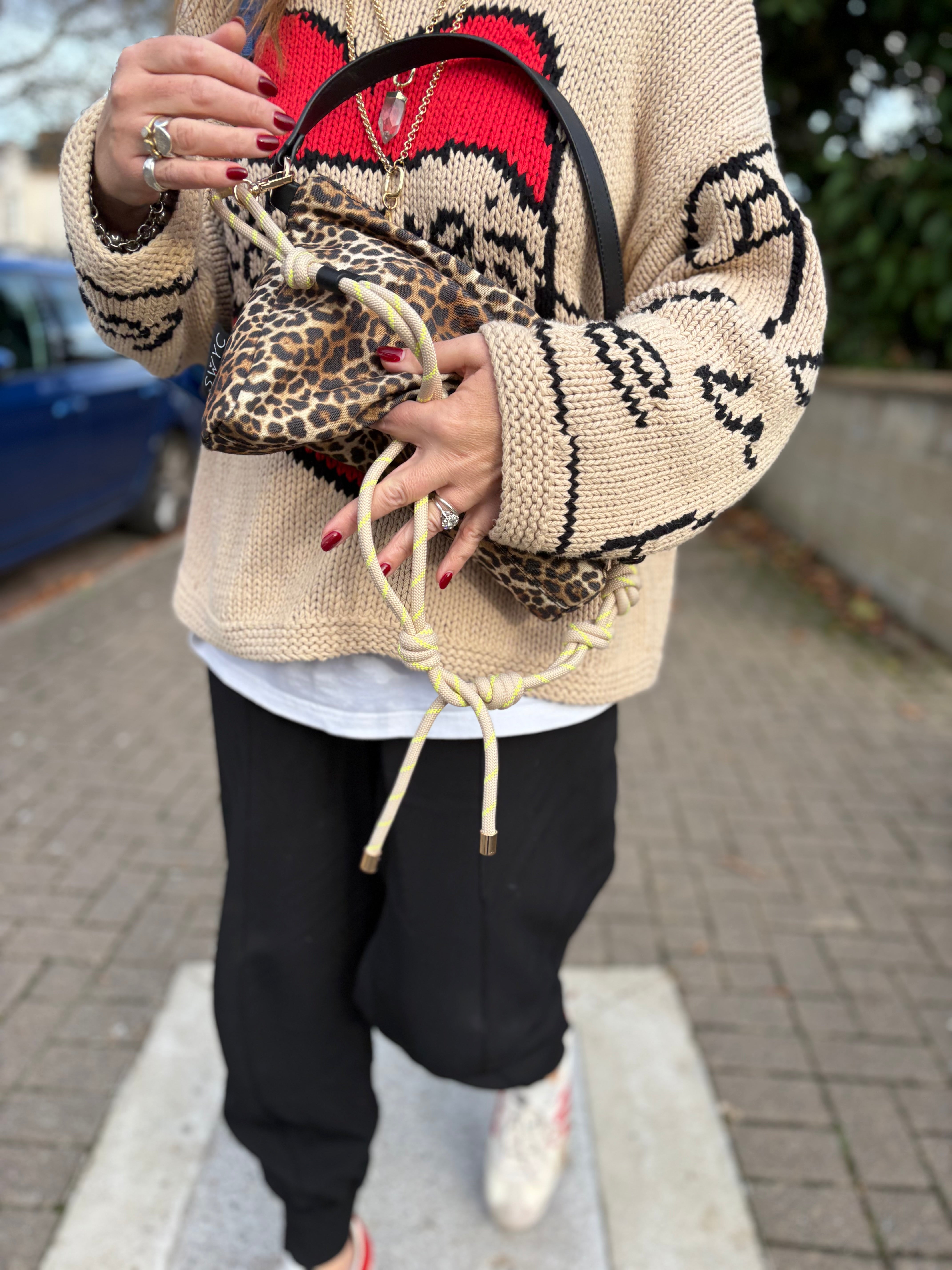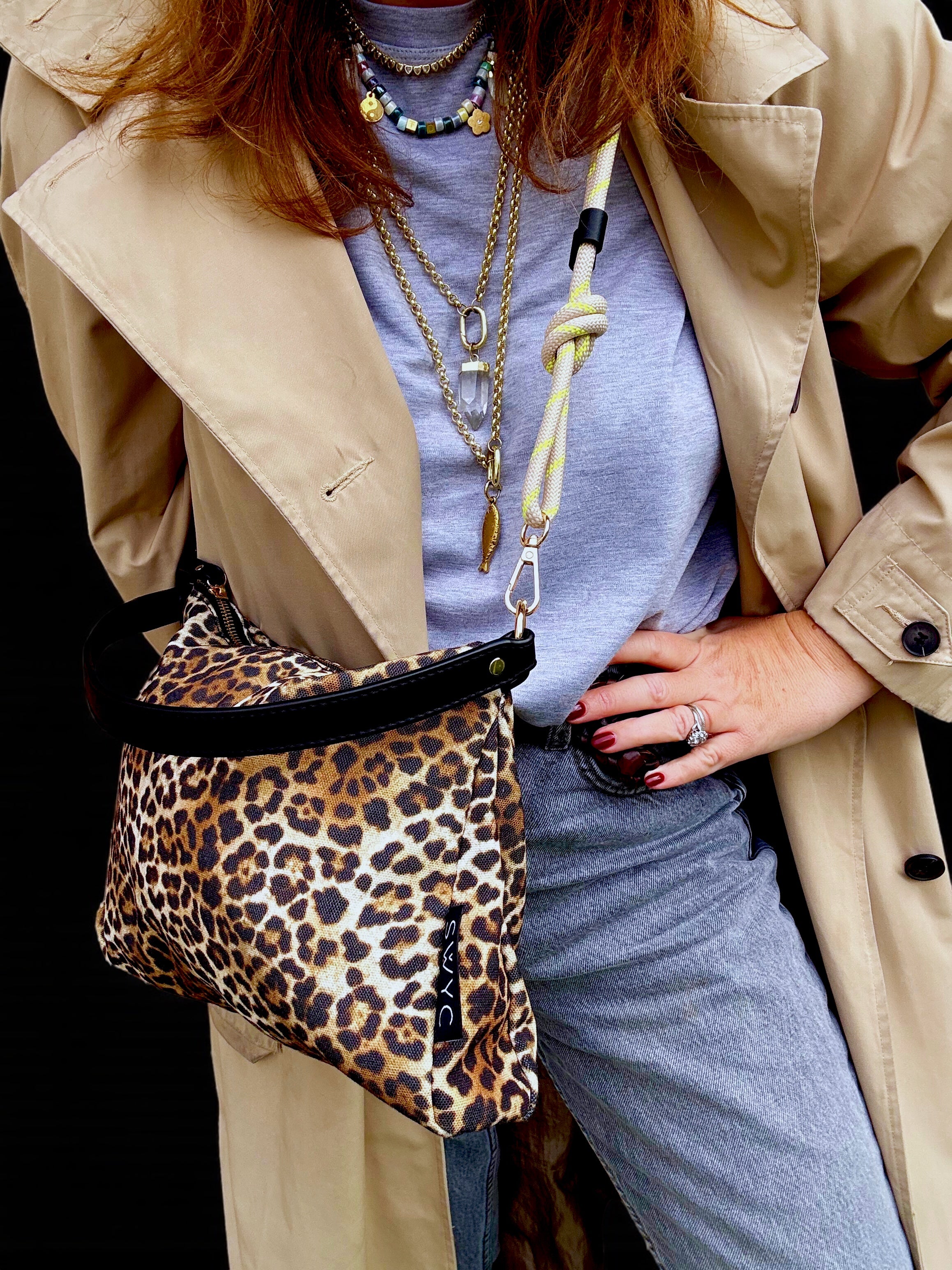 Leopard Print Luxe Crossbody Shoulder Bag with Interchangeable Rope Strap