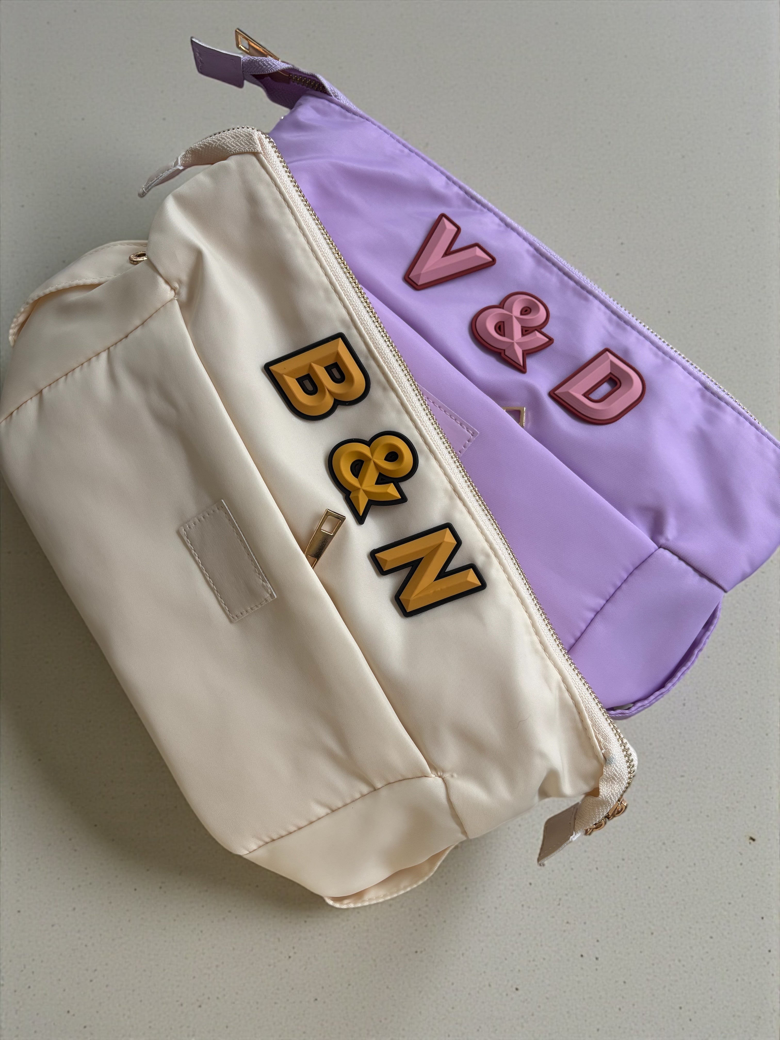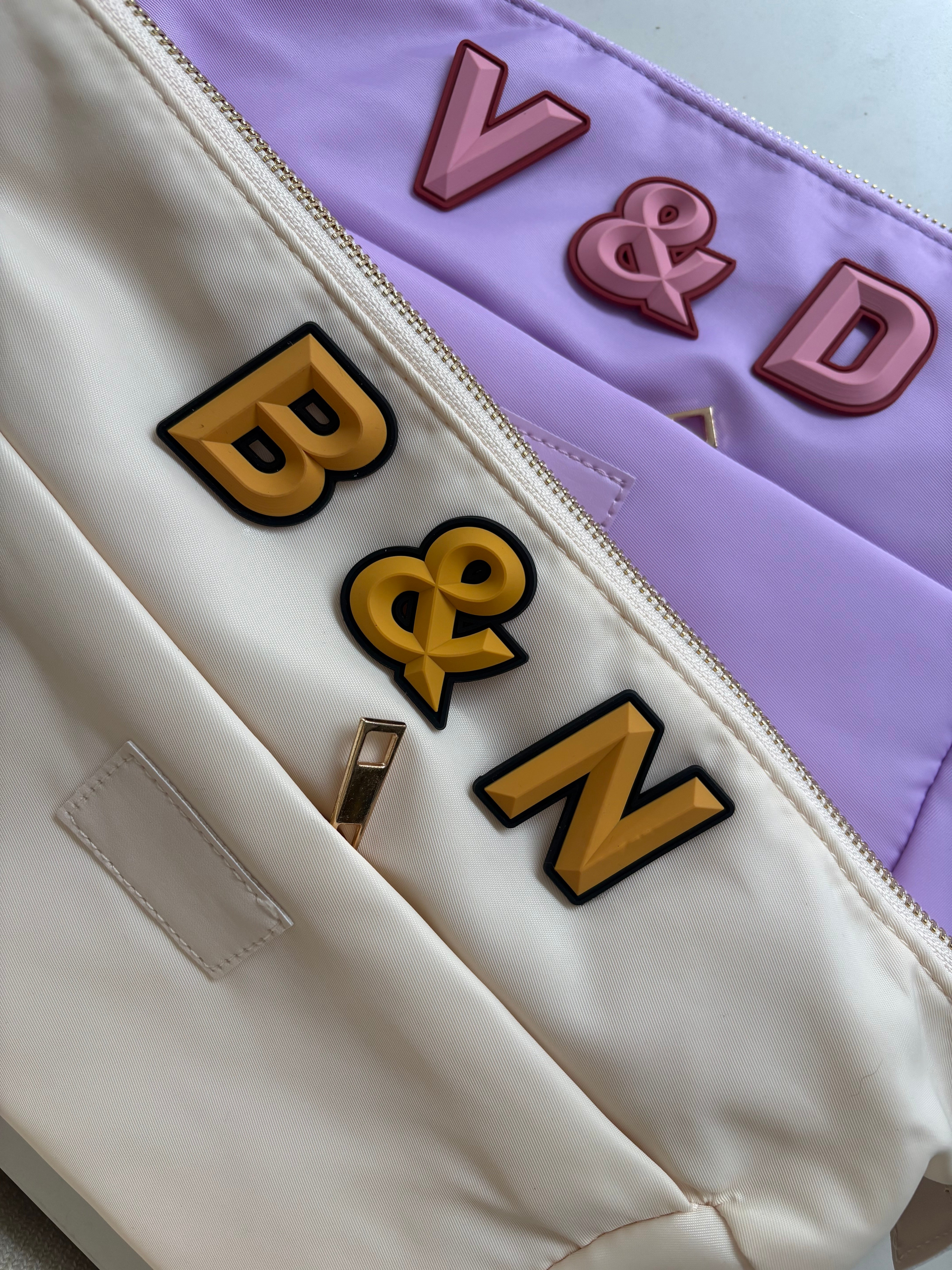 Personalise with up to 6 of our rubber initial patches. If you need more initials please email us for confirmation these will fit We now have the “&” patch available perfect for your kids initials or an original engagement/wedding gift |