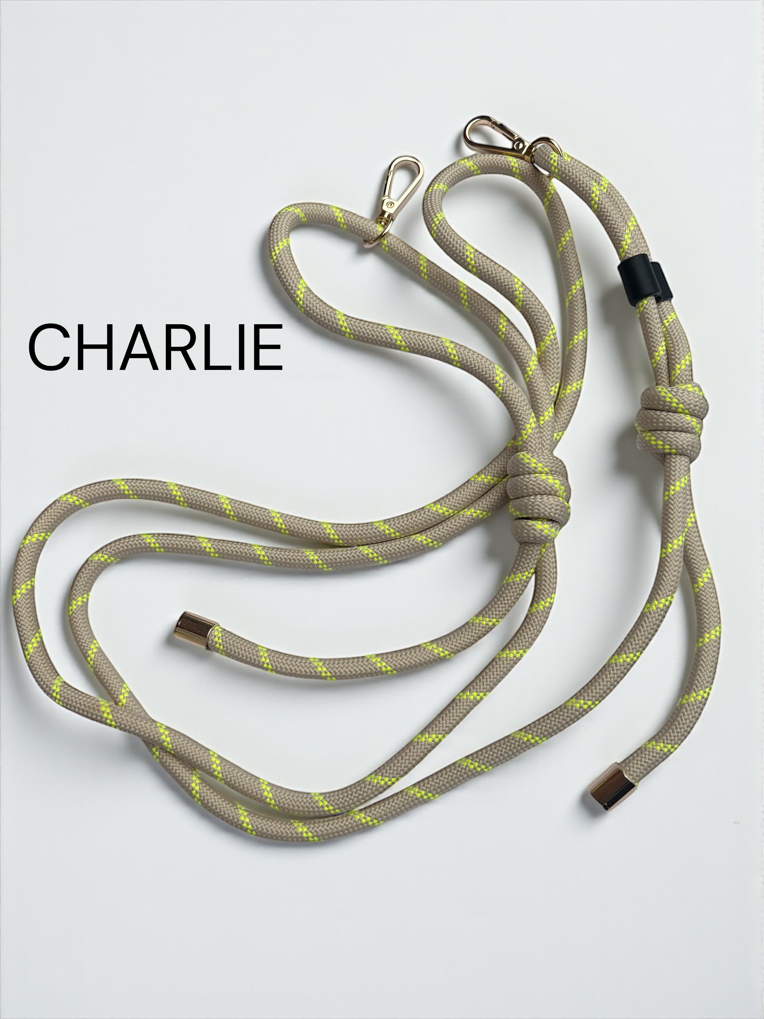 Adjustable length: 220cm at maximum extended length. This can be made shorter very easily using the sliding knots