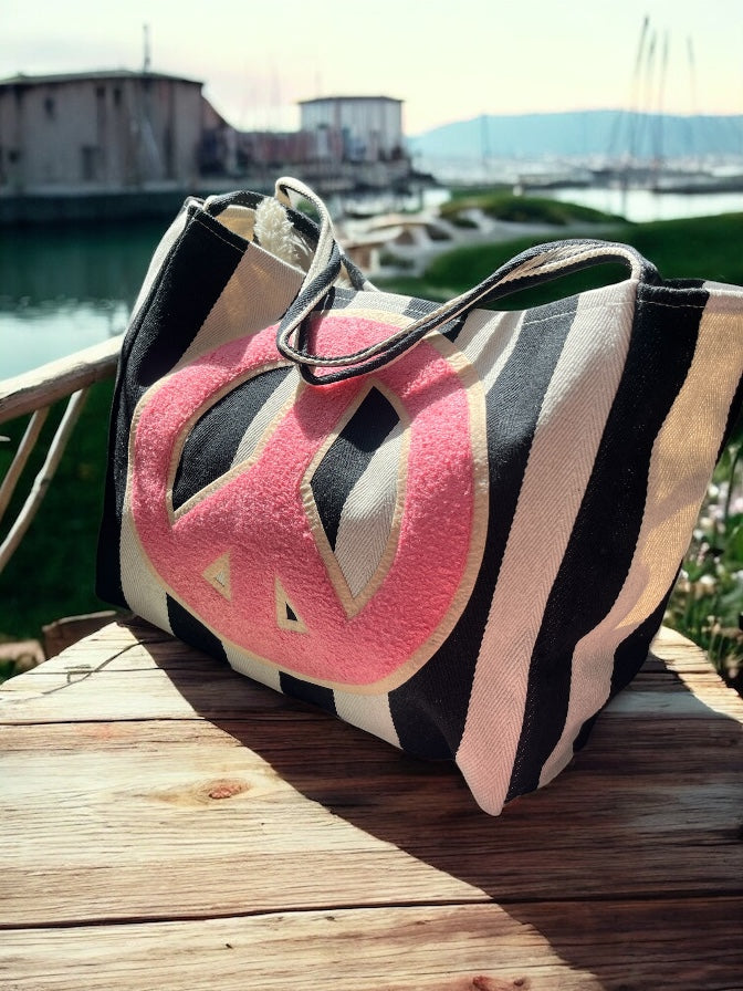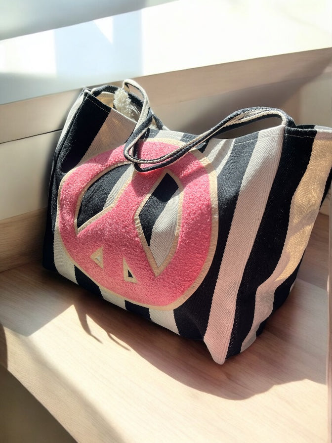 Peace sign striped bag
