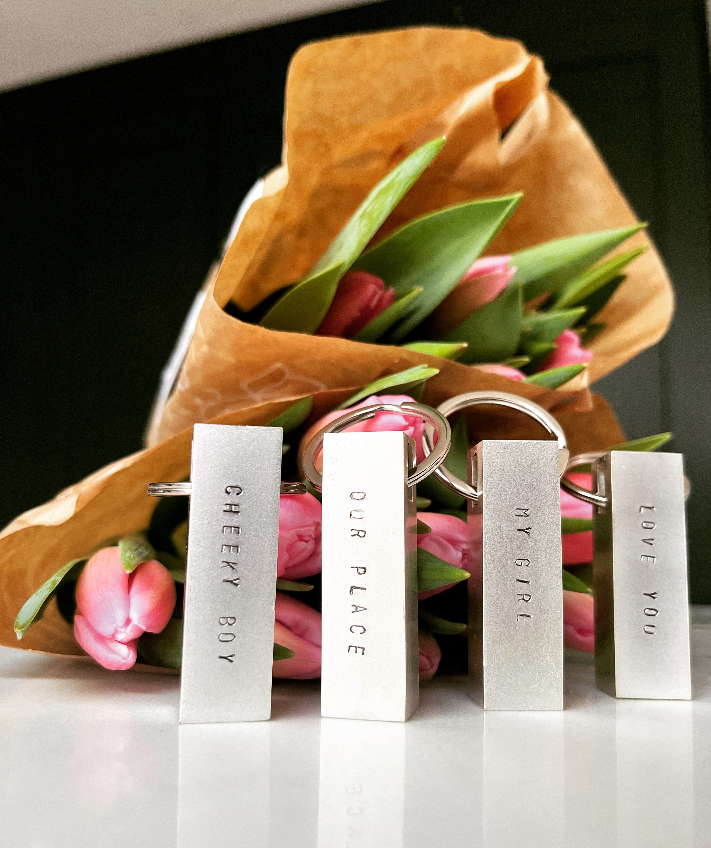 Made from high-quality metal with a sleek, minimalist design, these keyrings feature deep-stamped lettering for a lasting impression.