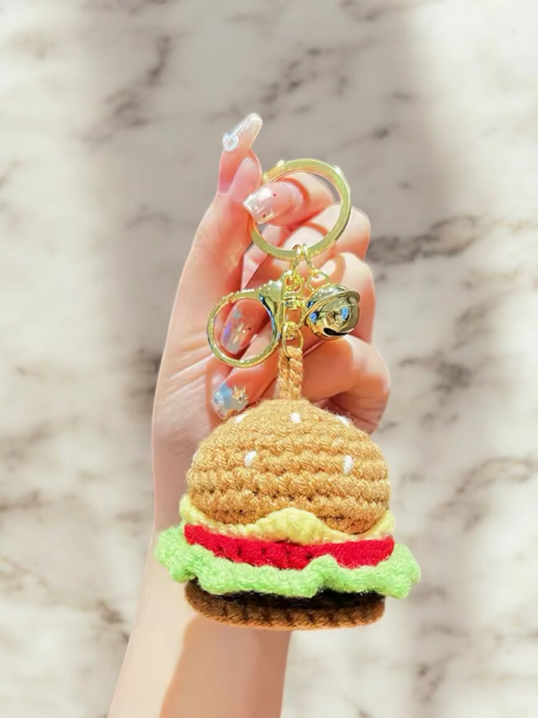 Crochet hamburger bag charm