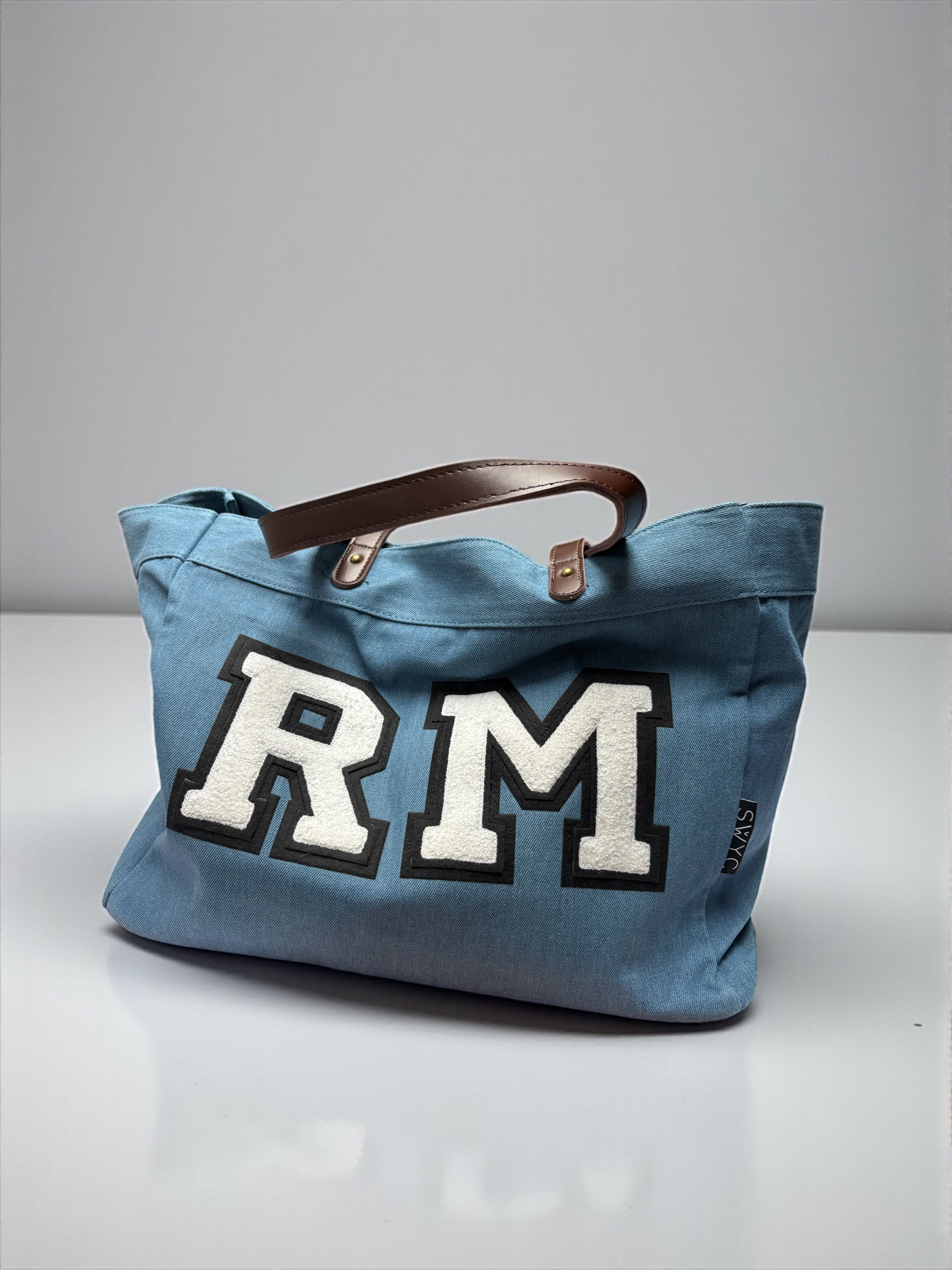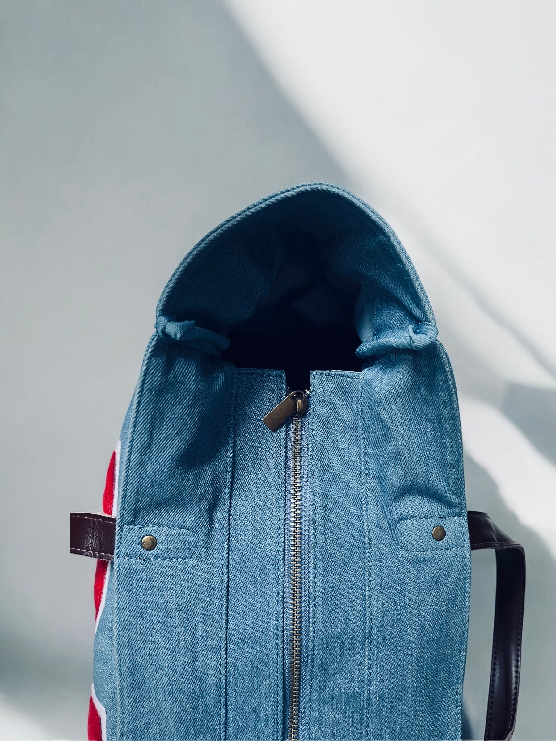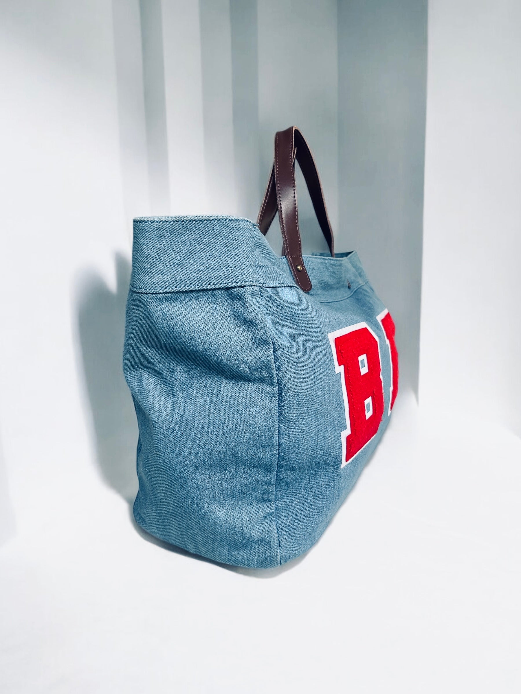 This blue denim shopper bag offers comfortable, hands-free carrying with handles to fit comfortably over your shoulder. The thoughtful addition of protective feet on the bottom ensures the bag stays off the floor, keeping the base clean and protected from dirt and wear.