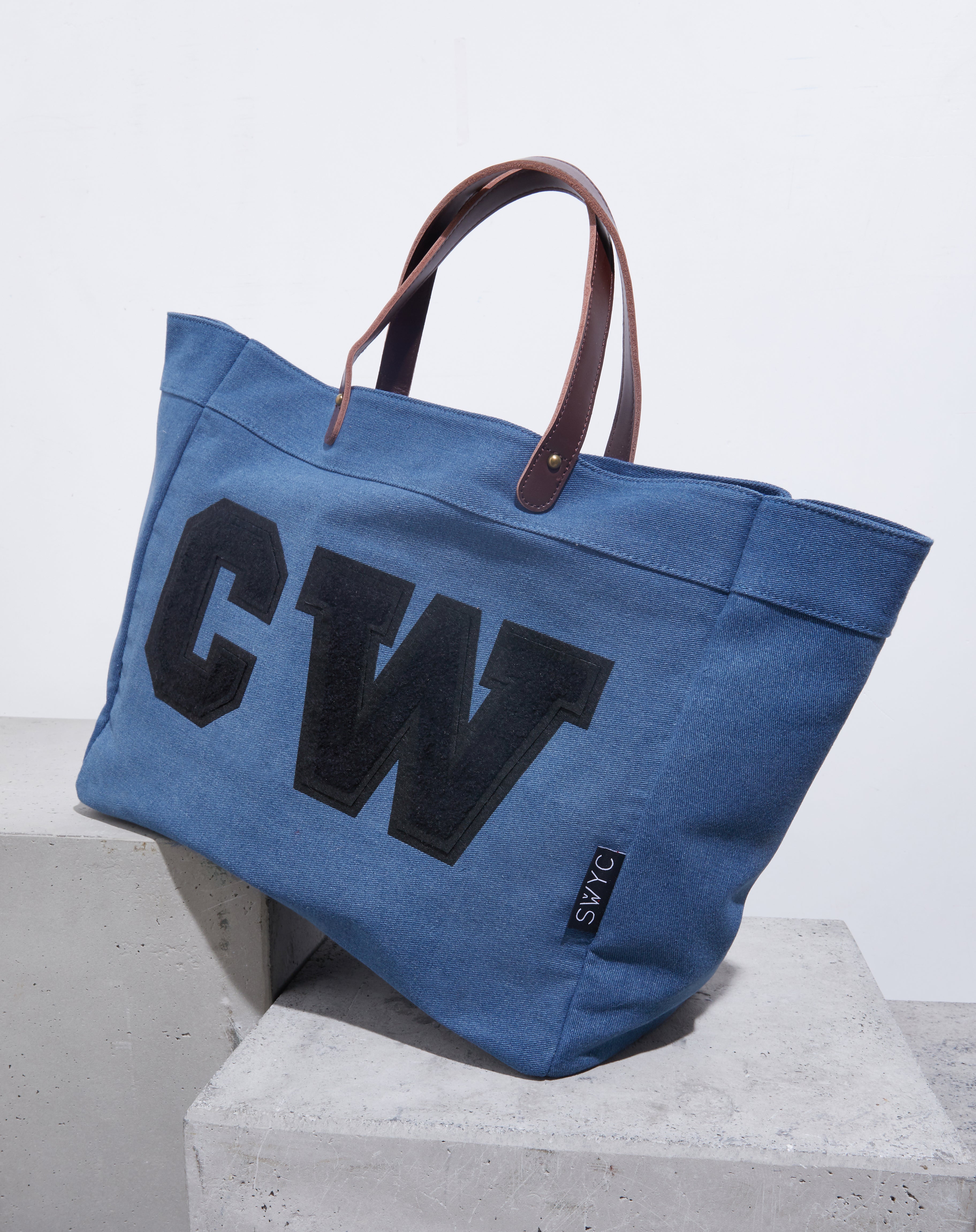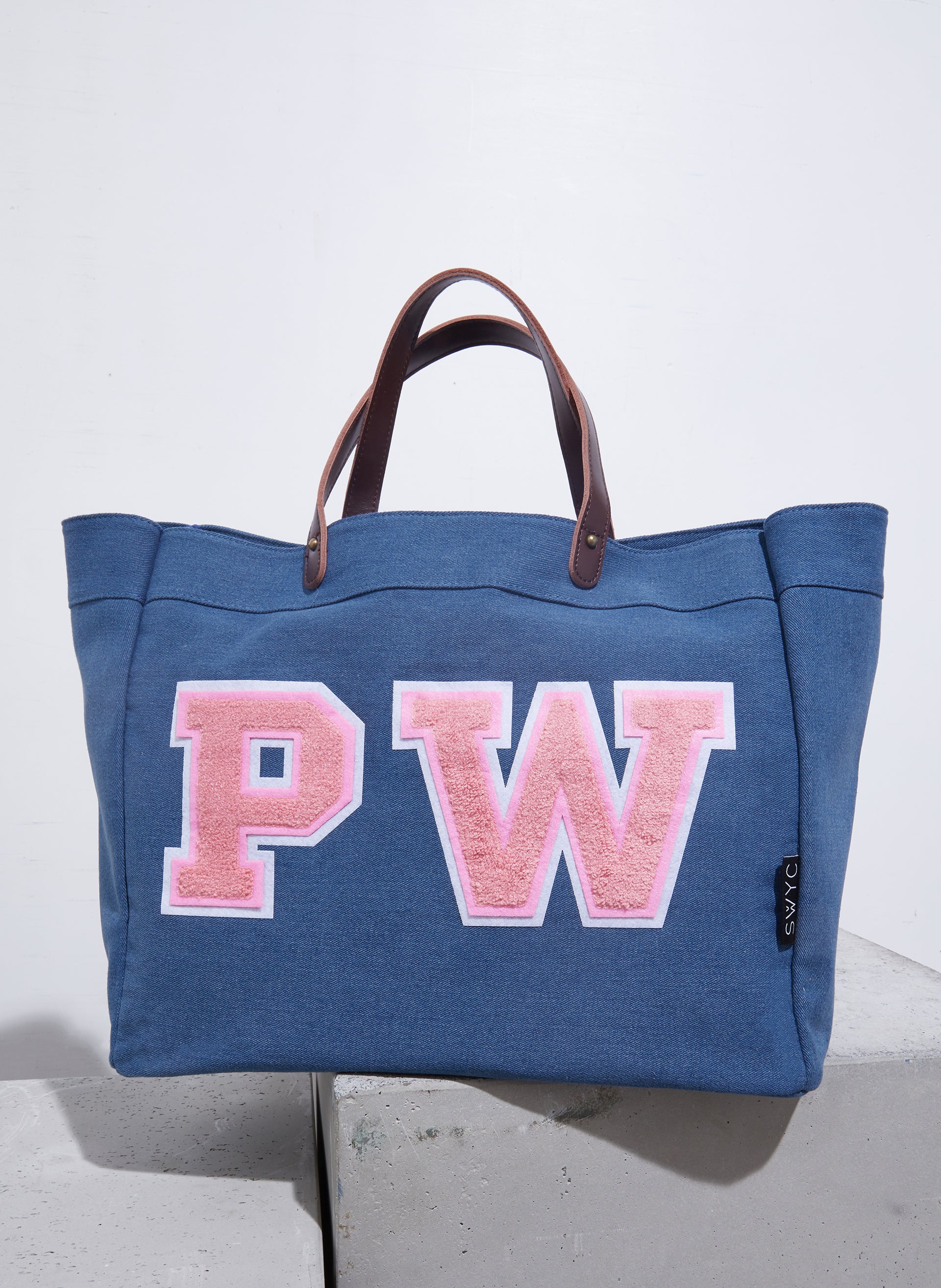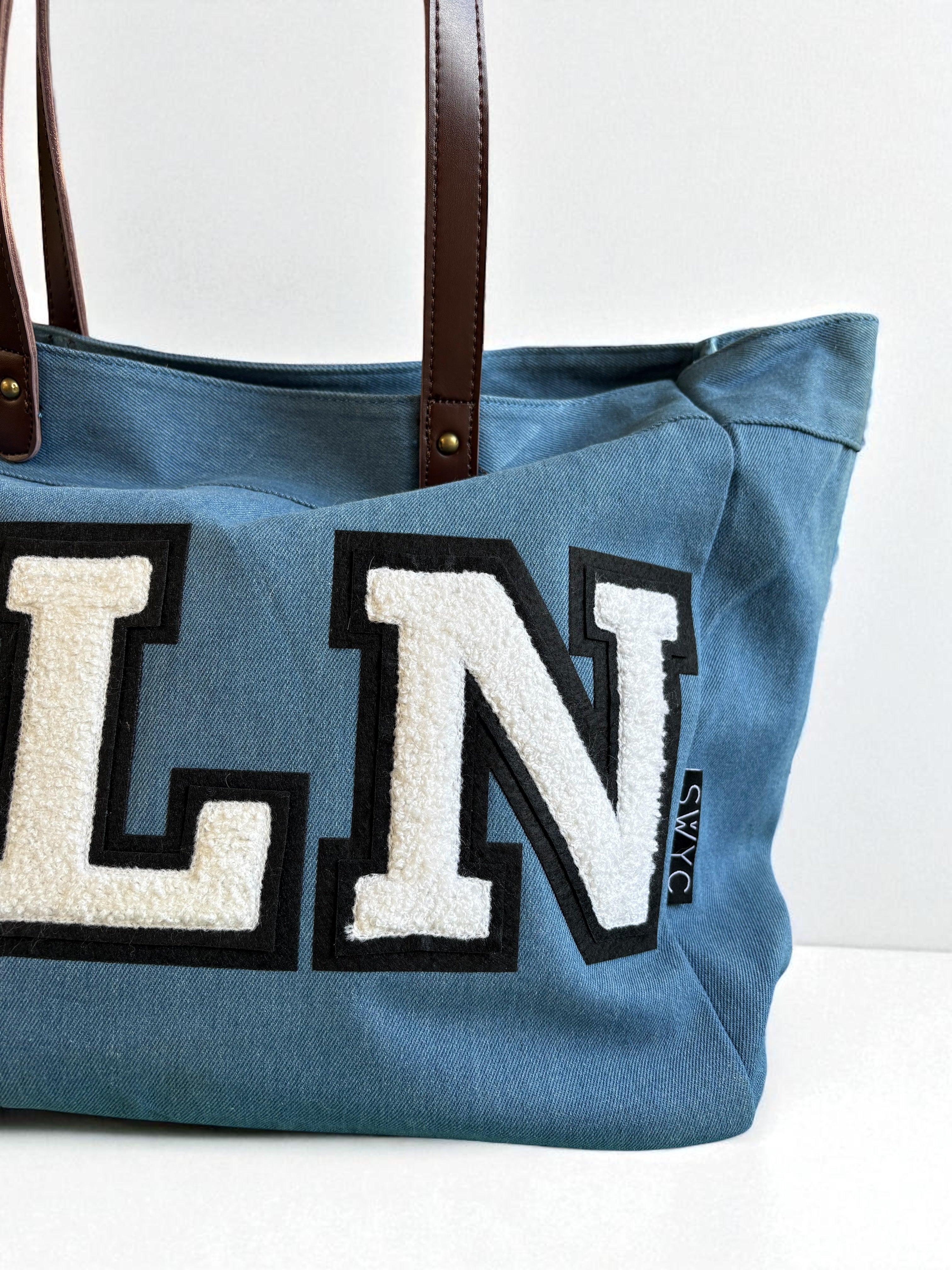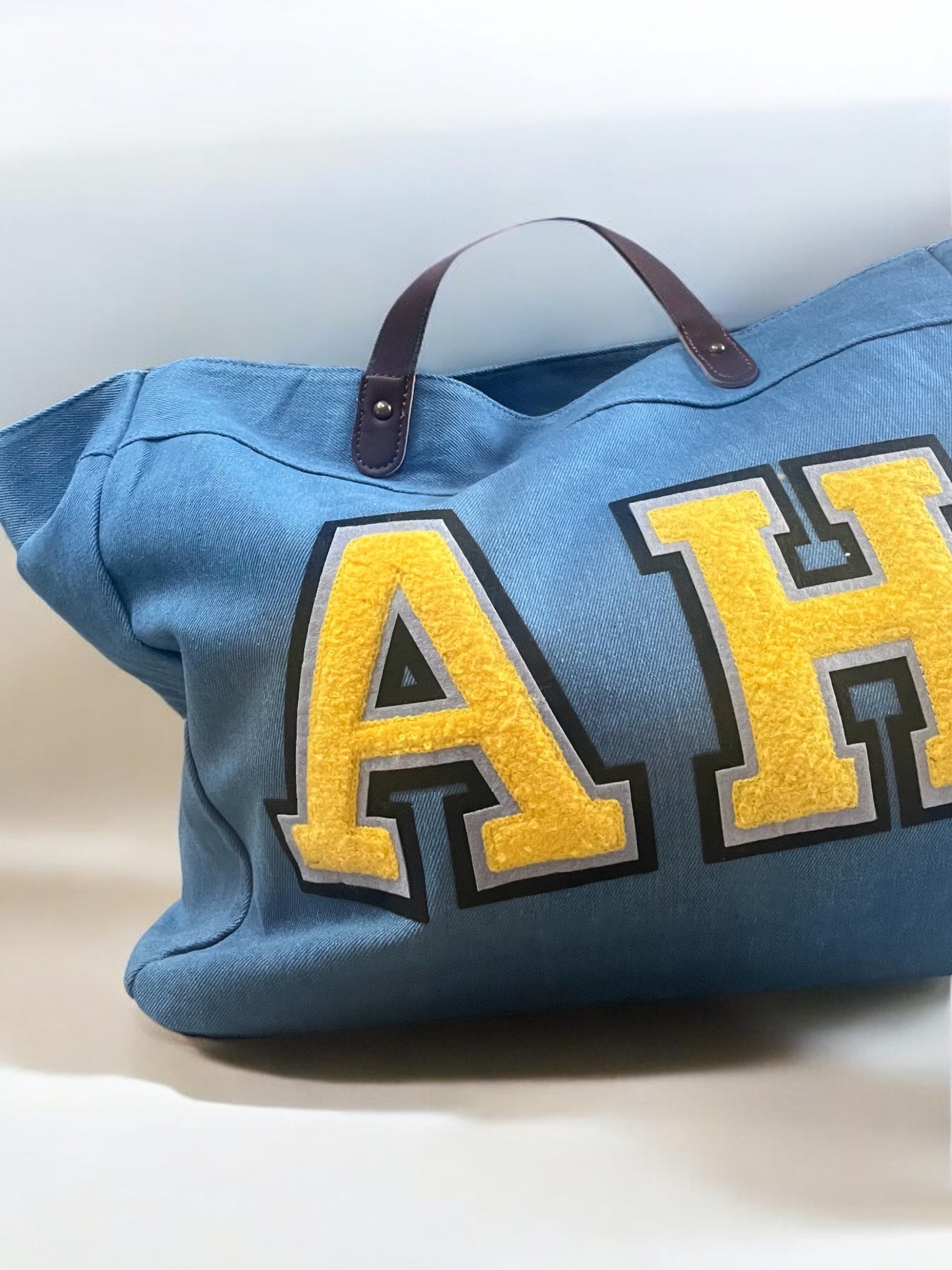 This blue denim shopper bag offers comfortable, hands-free carrying with handles to fit comfortably over your shoulder. The thoughtful addition of protective feet on the bottom ensures the bag stays off the floor, keeping the base clean and protected from dirt and wear.