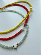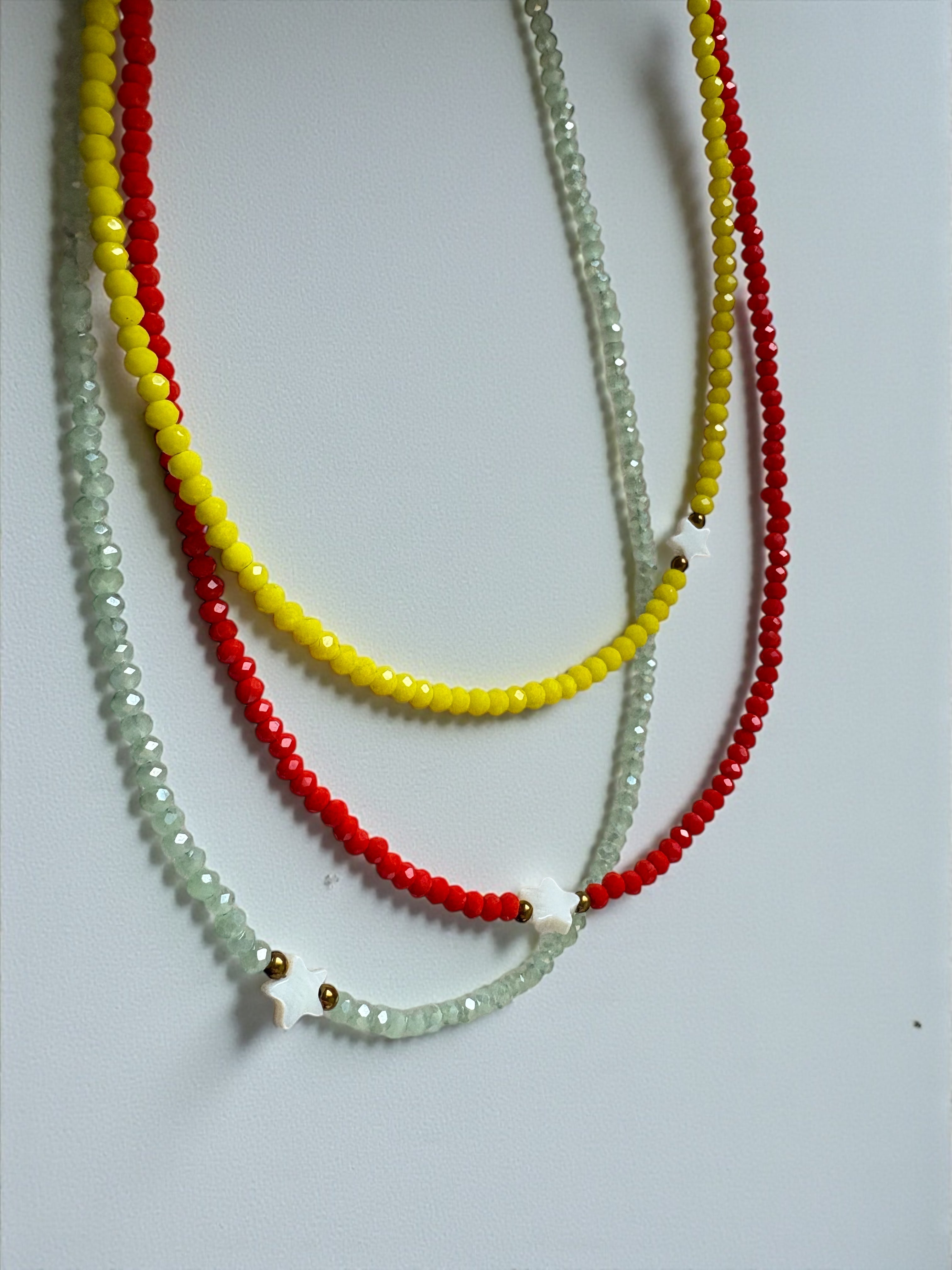 Bring a pop of colour to your style with this beaded necklace featuring a delicate mother of pearl star charm.