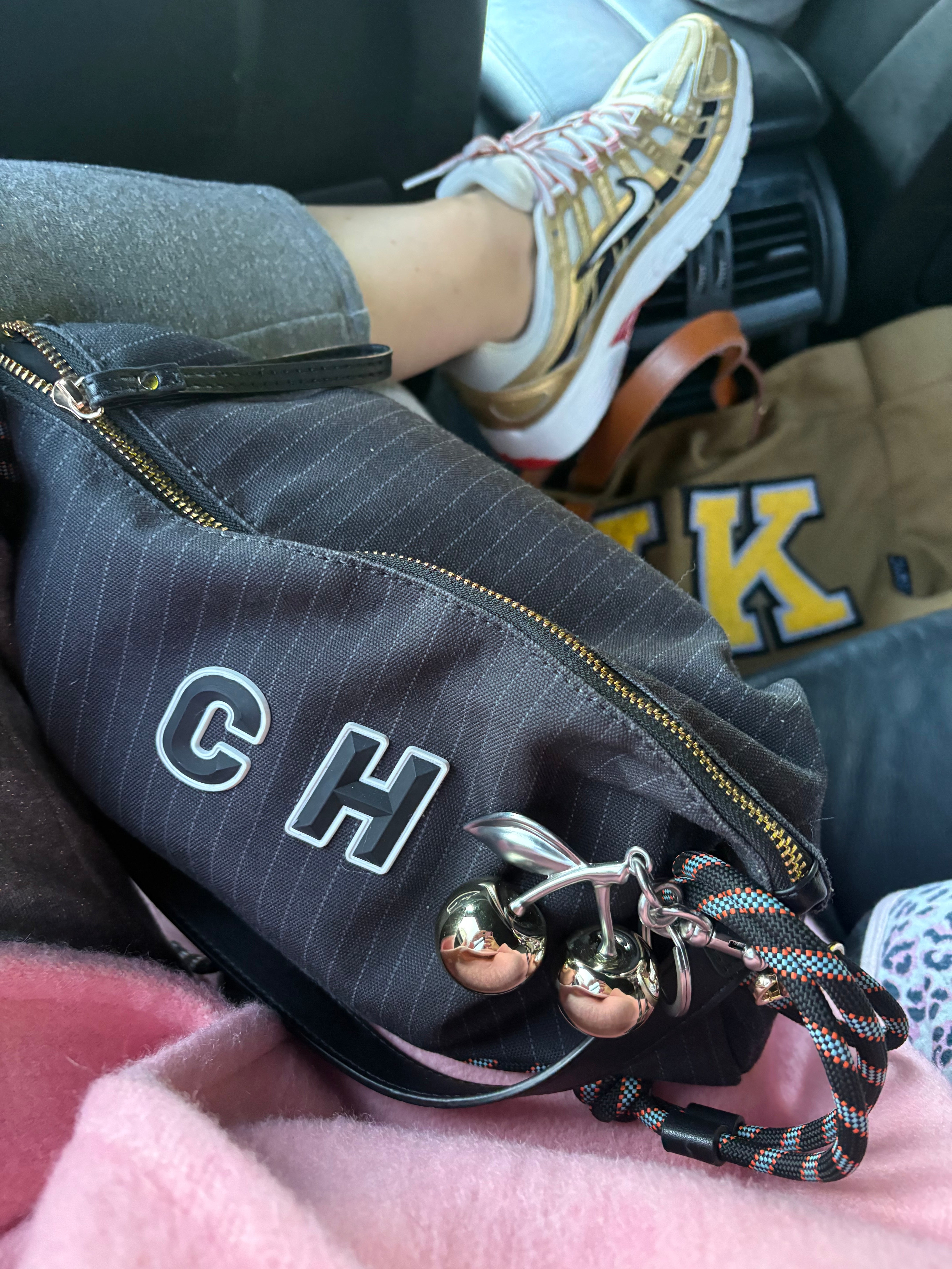 Black pinstripe Luxe Crossbody Shoulder Bag with Interchangeable Rope Strap