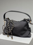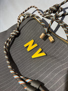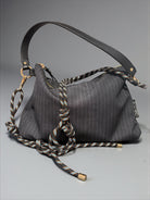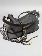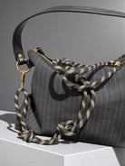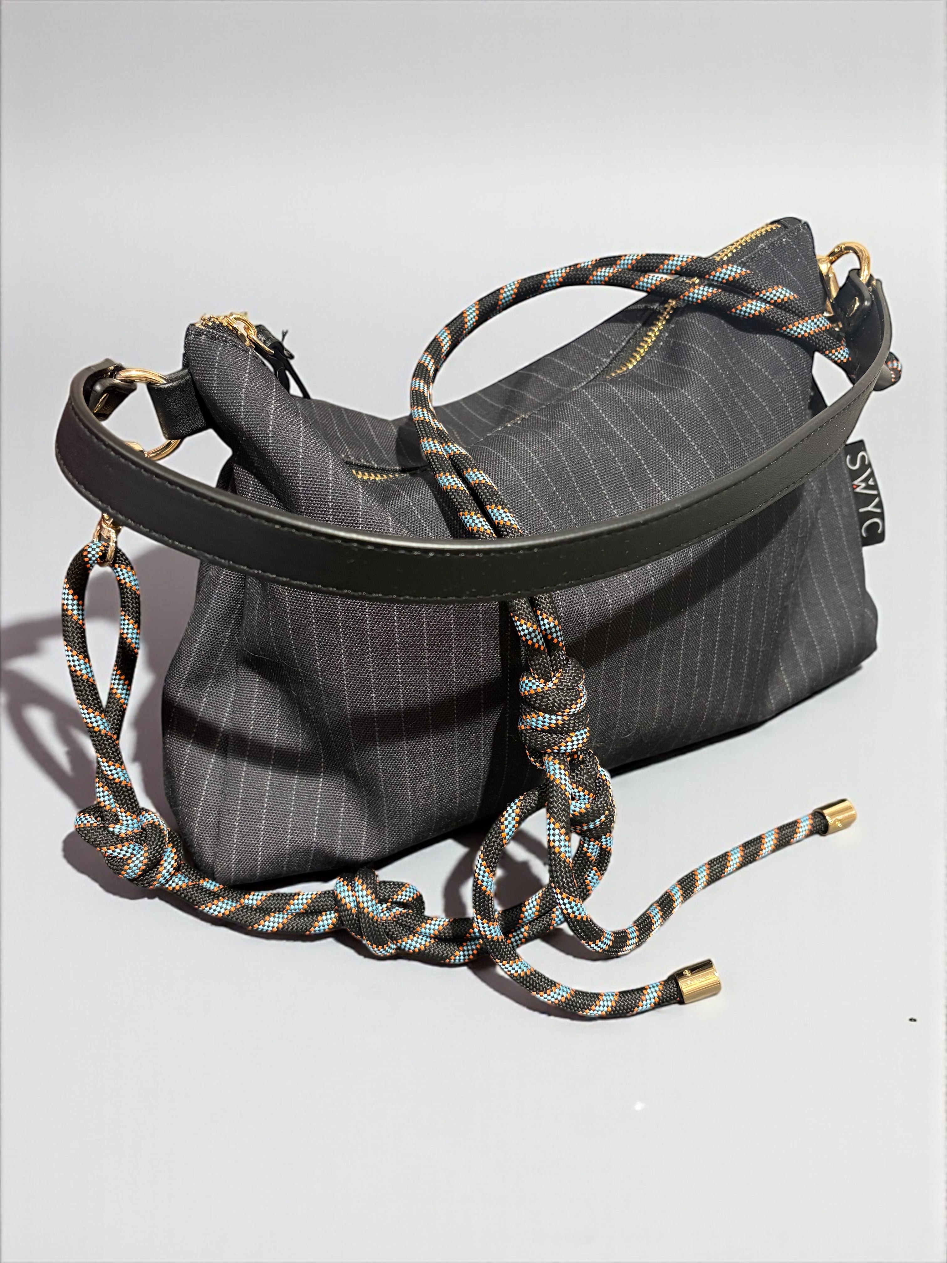 Black pinstripe Luxe Crossbody Shoulder Bag with Interchangeable Rope Strap