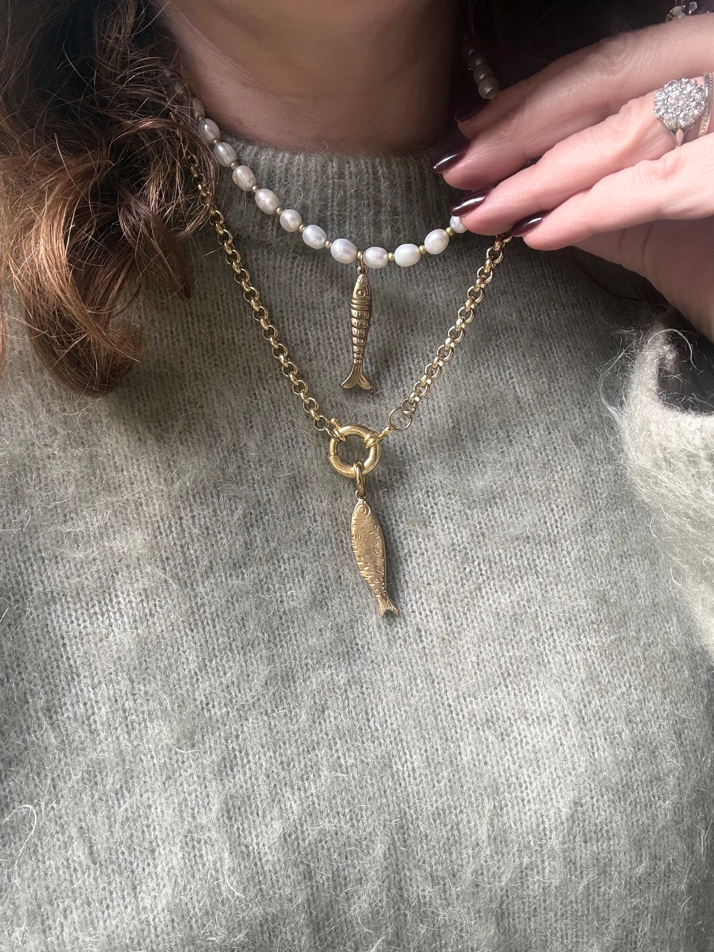 Also looks great worn with the gold clasp fish necklace