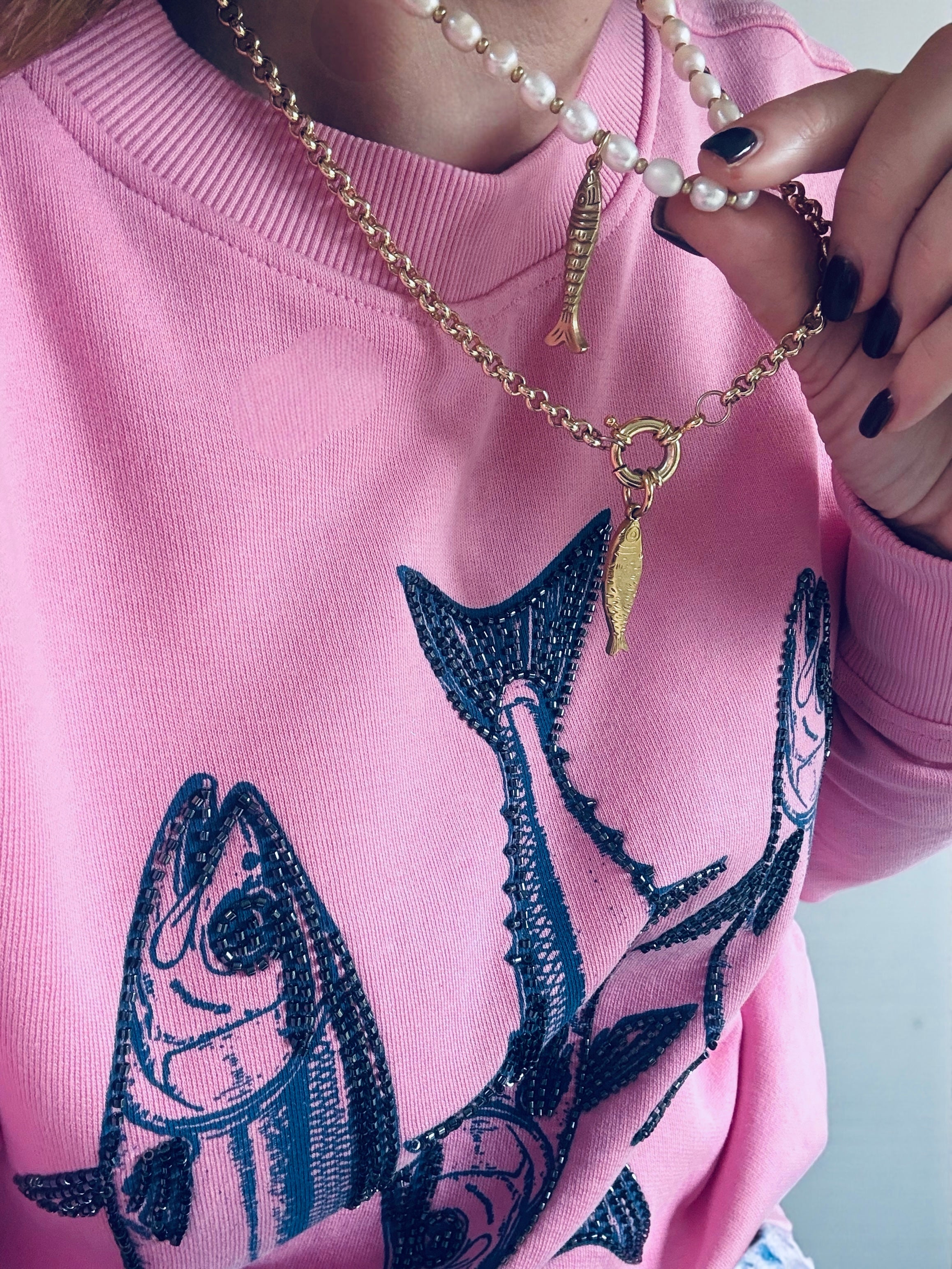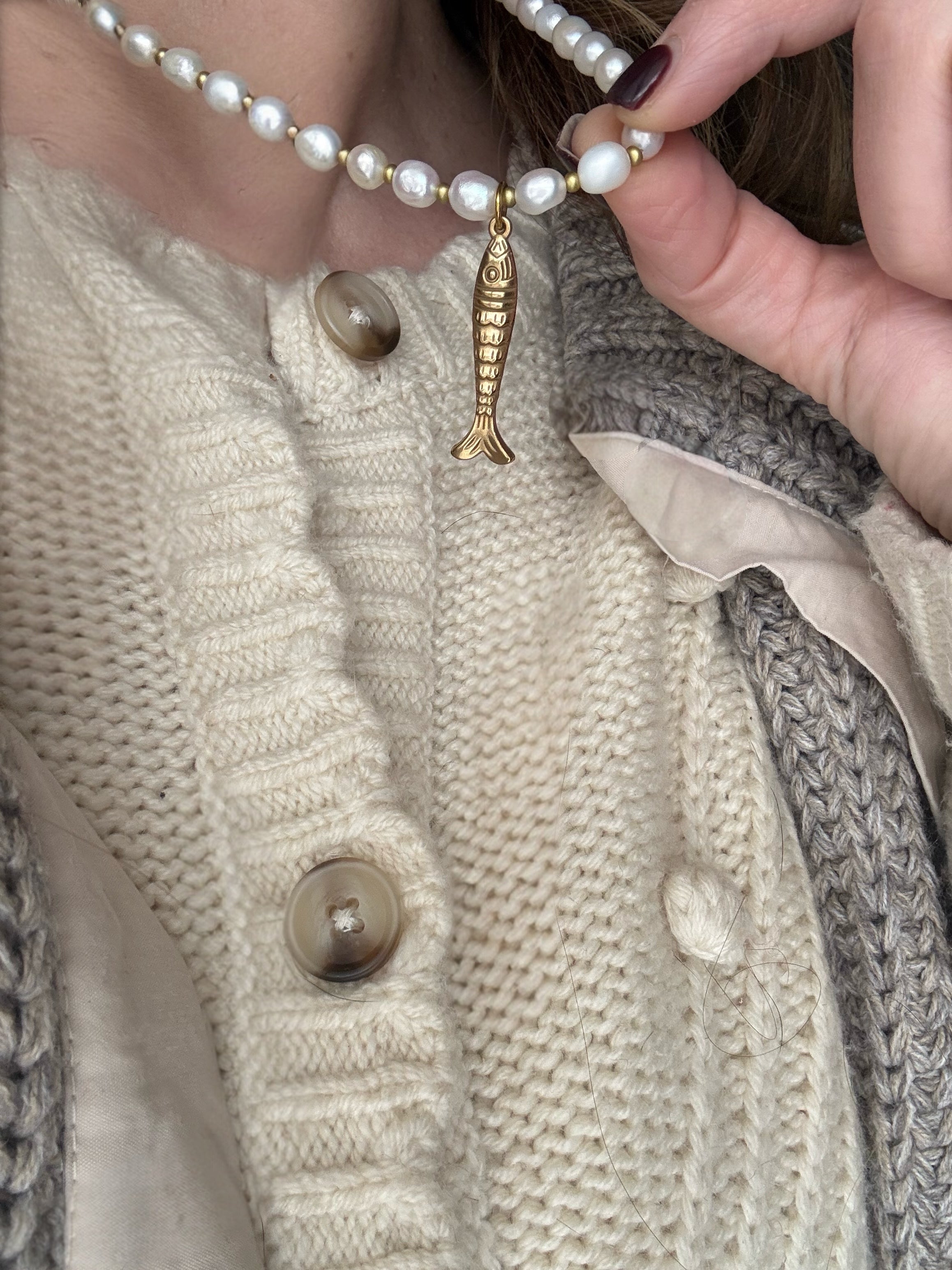 Fish and pearl necklace