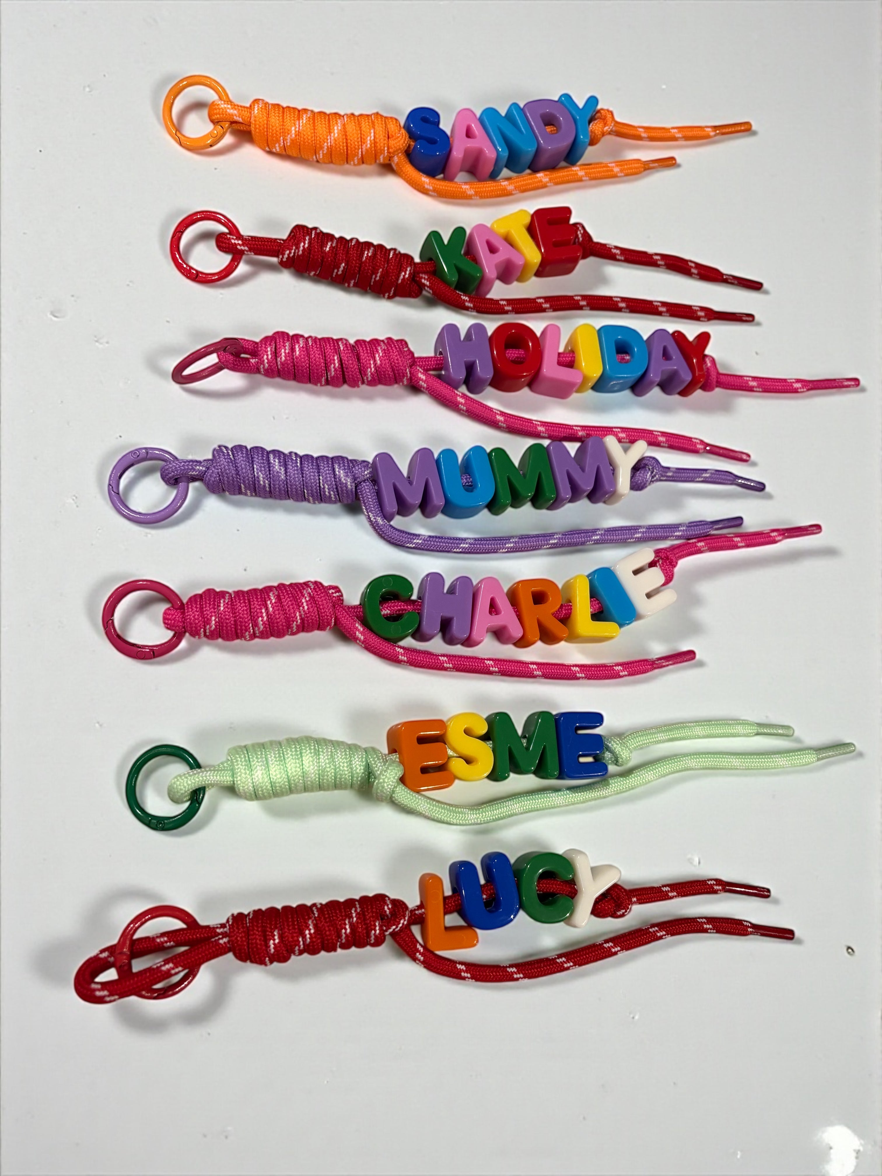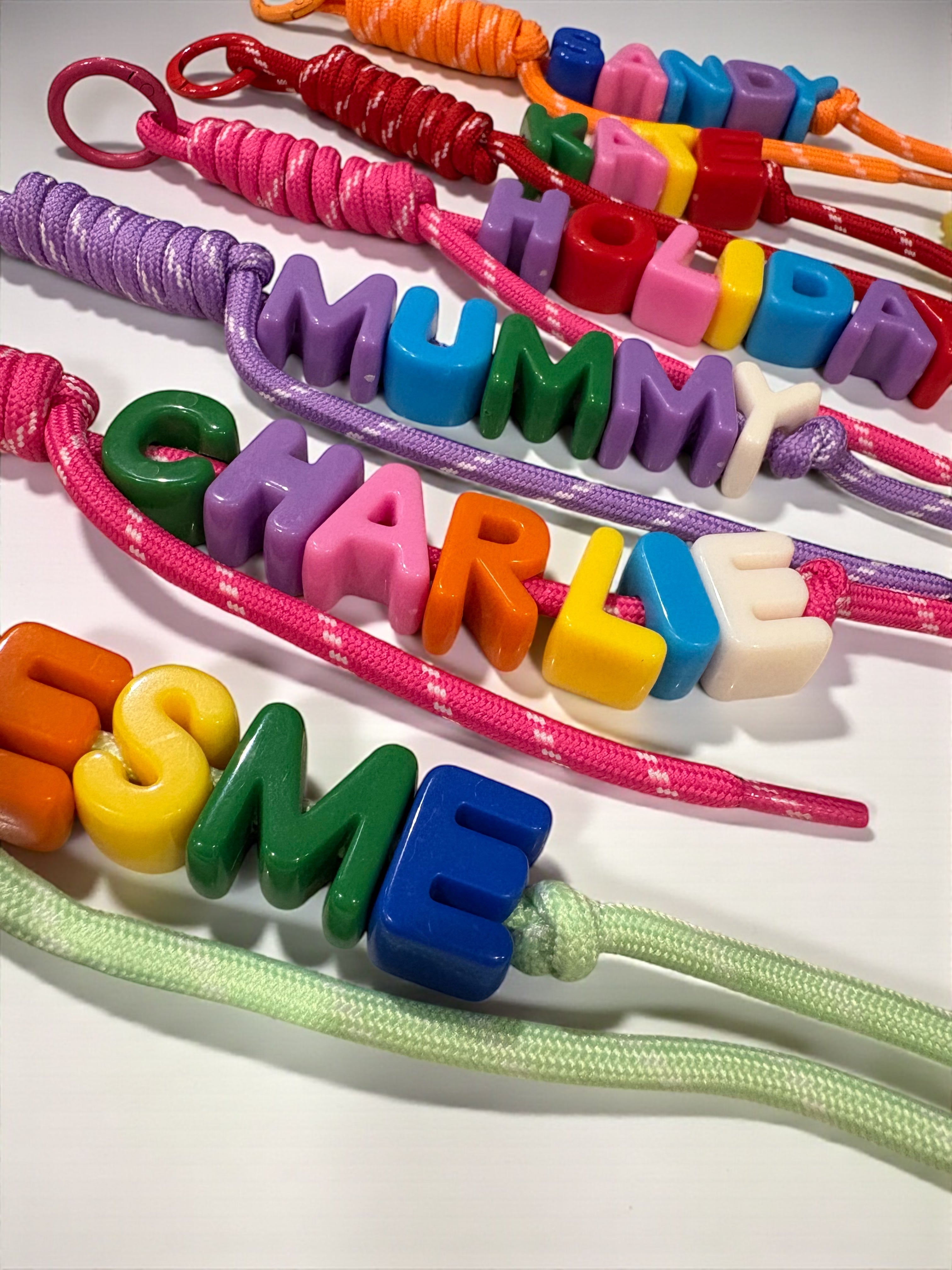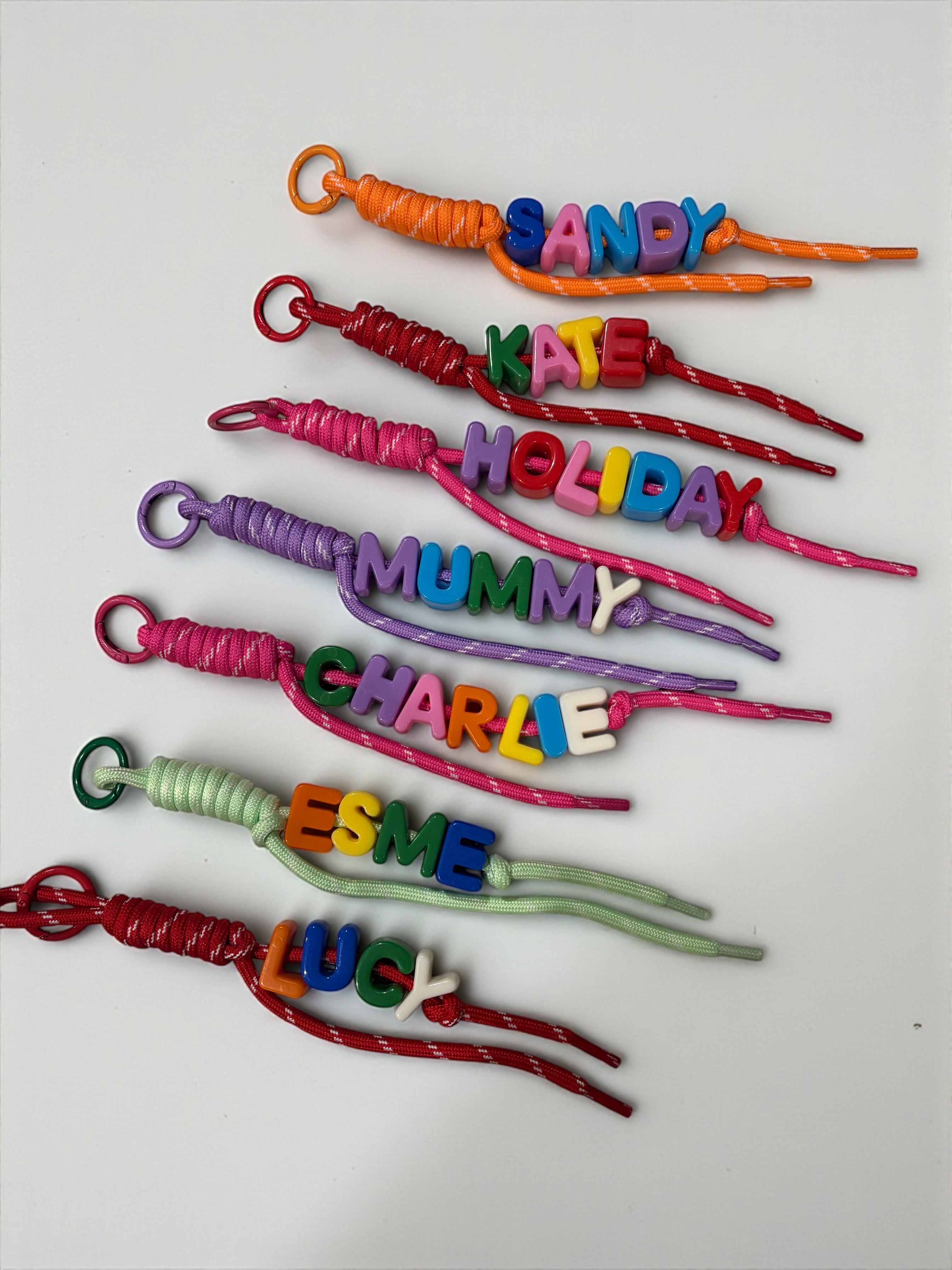 Add a personal touch to your keys, bags, or zippers with this personalised name keyring. Made with durable paracord and finished with colourful letter beads, each piece is custom-made with the name or word of your choice.