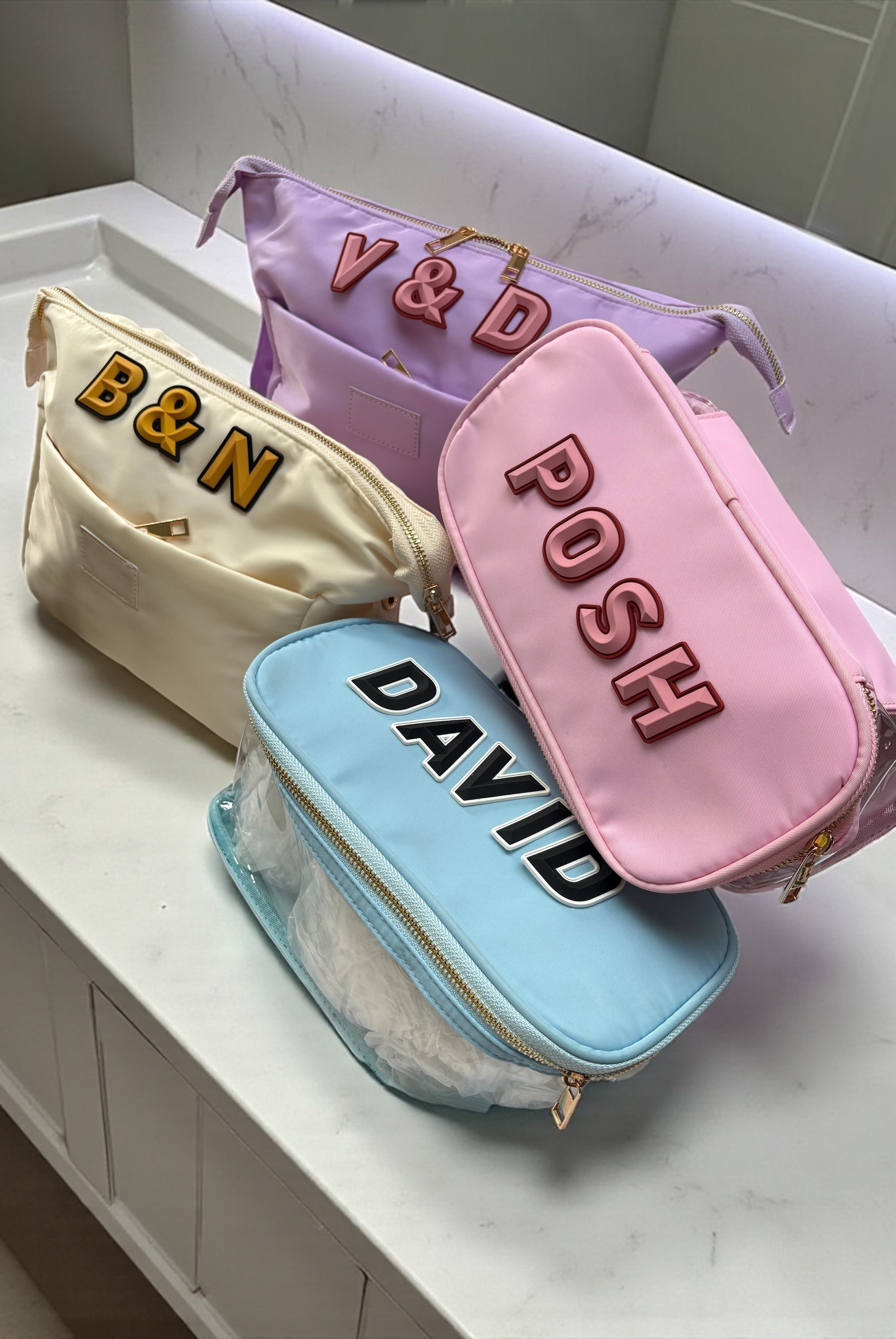 Discover our range of personalised pouches and wash bags, perfect for travel, toiletries, makeup, and everyday essentials. Customise with initials, names, or messages for a unique gift or everyday accessory. Made from high-quality materials, our personalised bags are ideal for birthdays, weddings, or as a stylish travel essential.