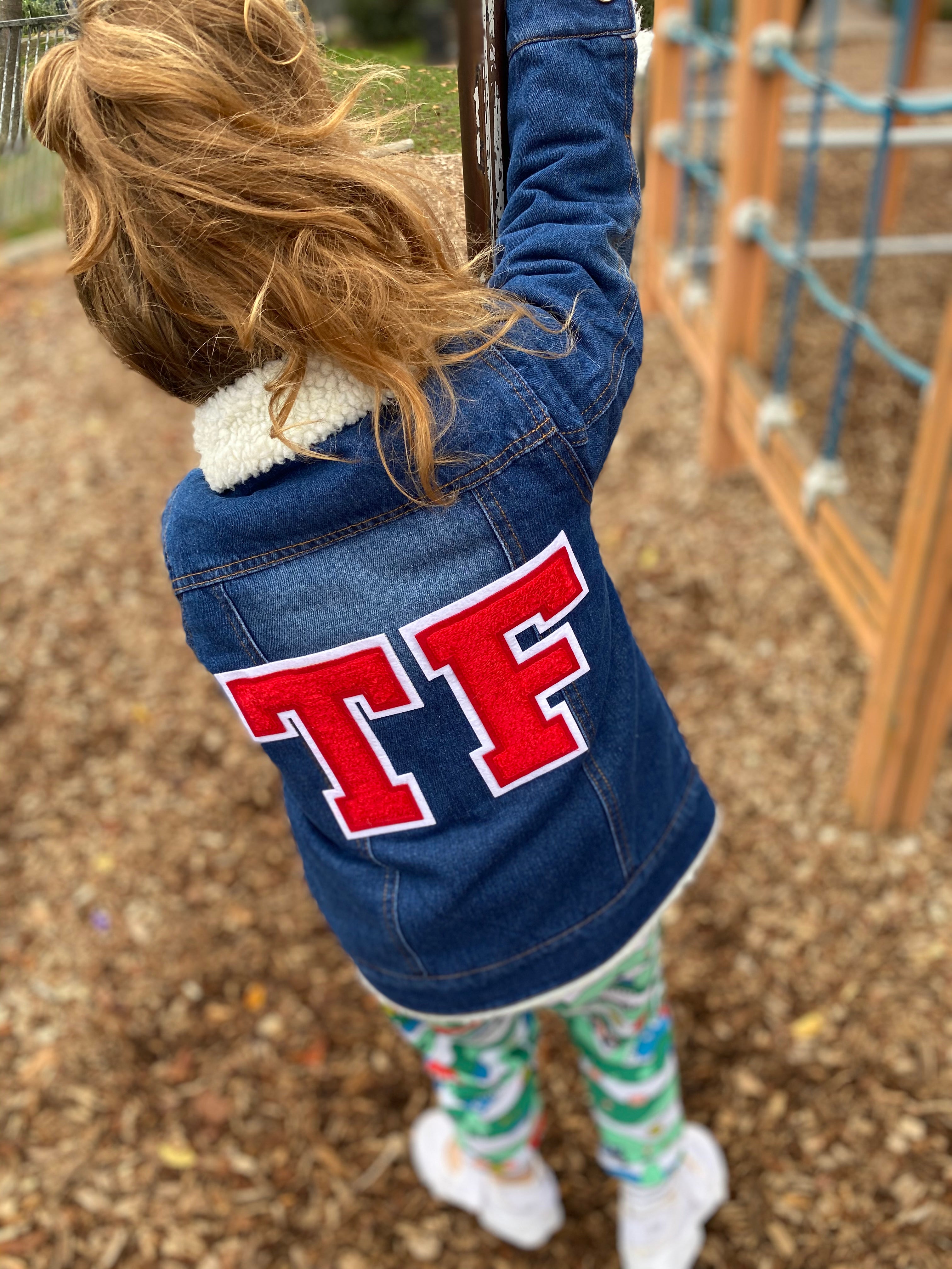 Give your little ones a stylish and personalised touch with these custom kids' denim jackets! Made from high-quality denim, these jackets feature bold varsity-style initial patches on the back, creating a trendy and unique look.