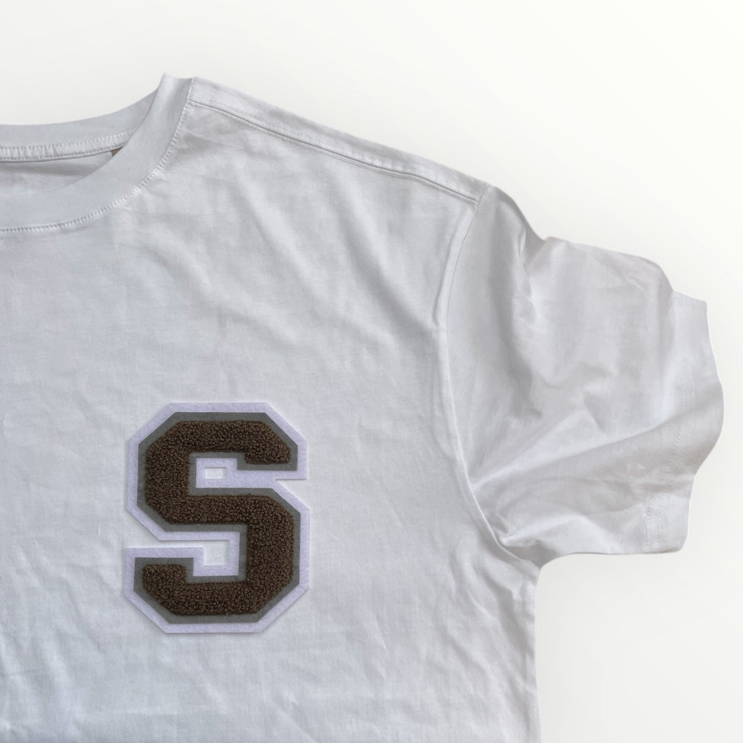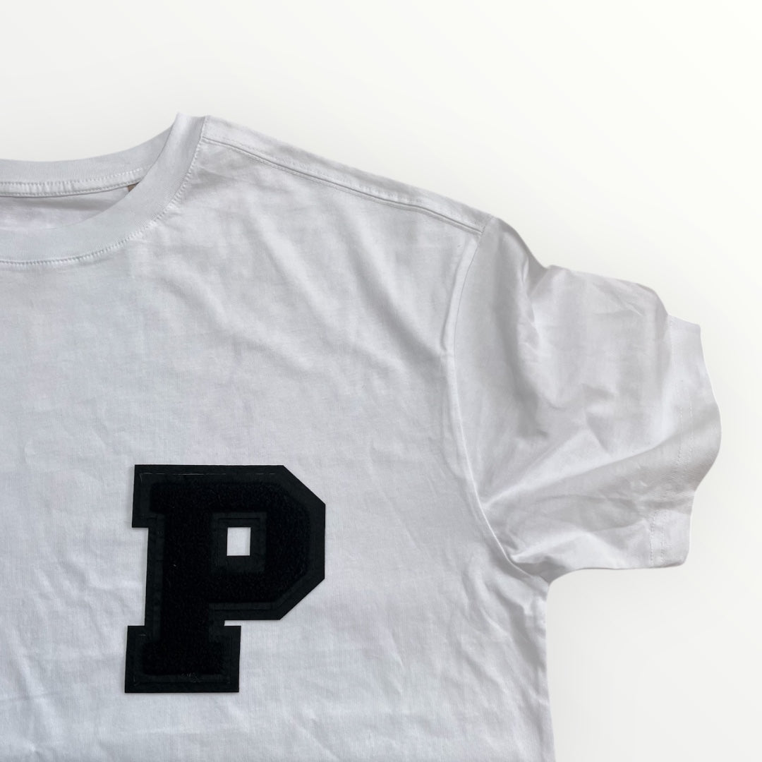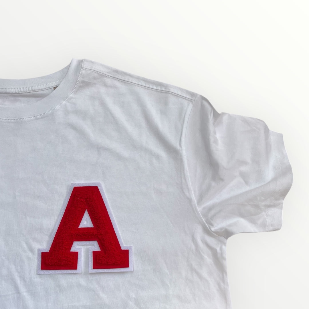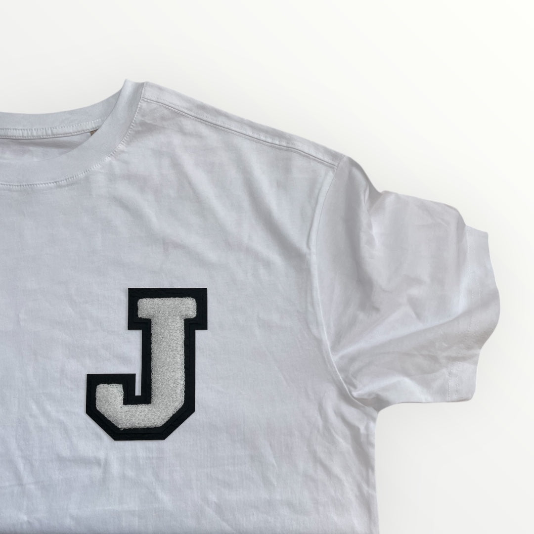 Choose any initial which will be applied to the left chest. Our patches are 14cm in height and are made of chenille in a classic varsity style. Made up of multiple layers our patches are extremely detailed and create a luxe look.