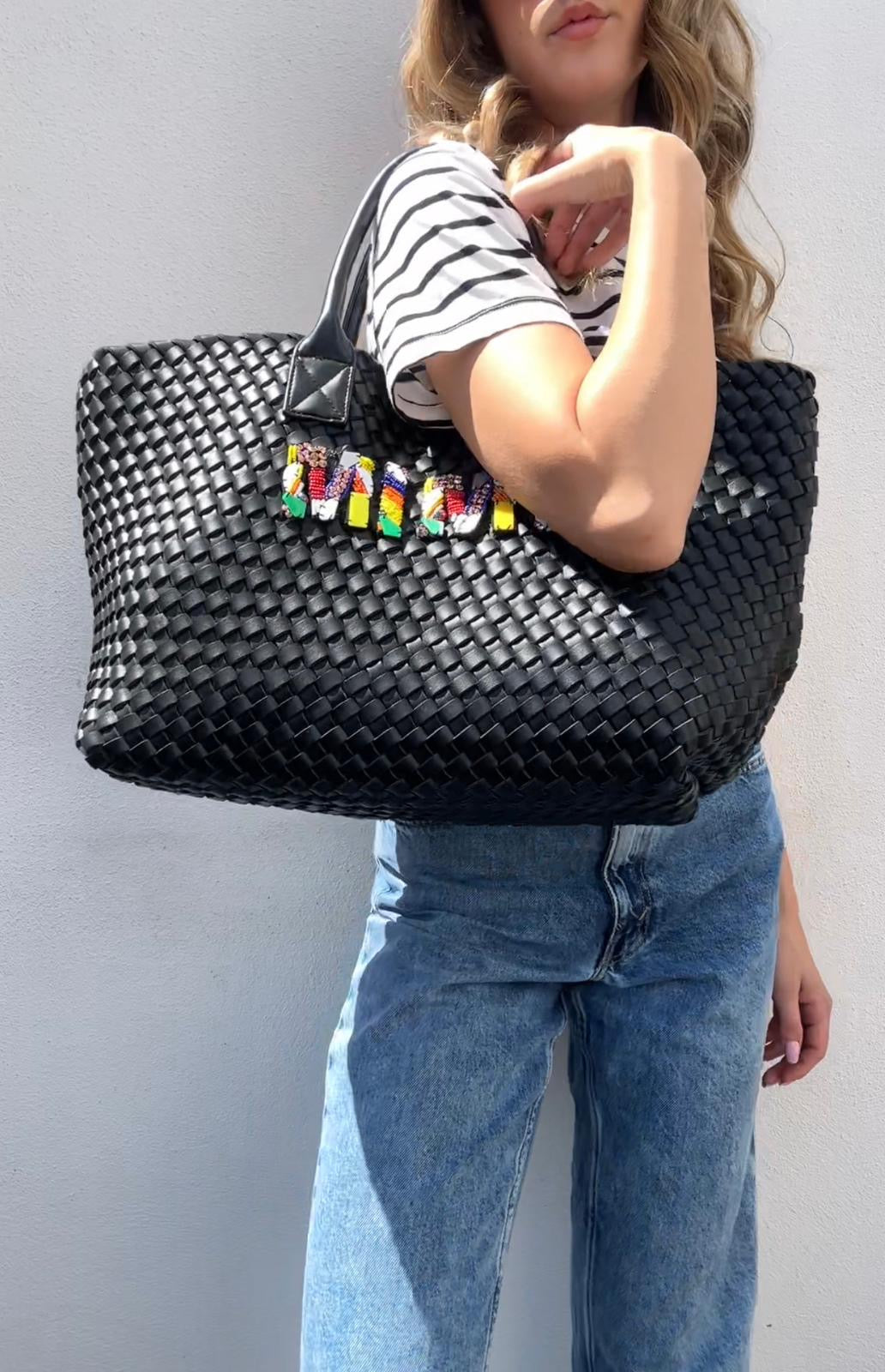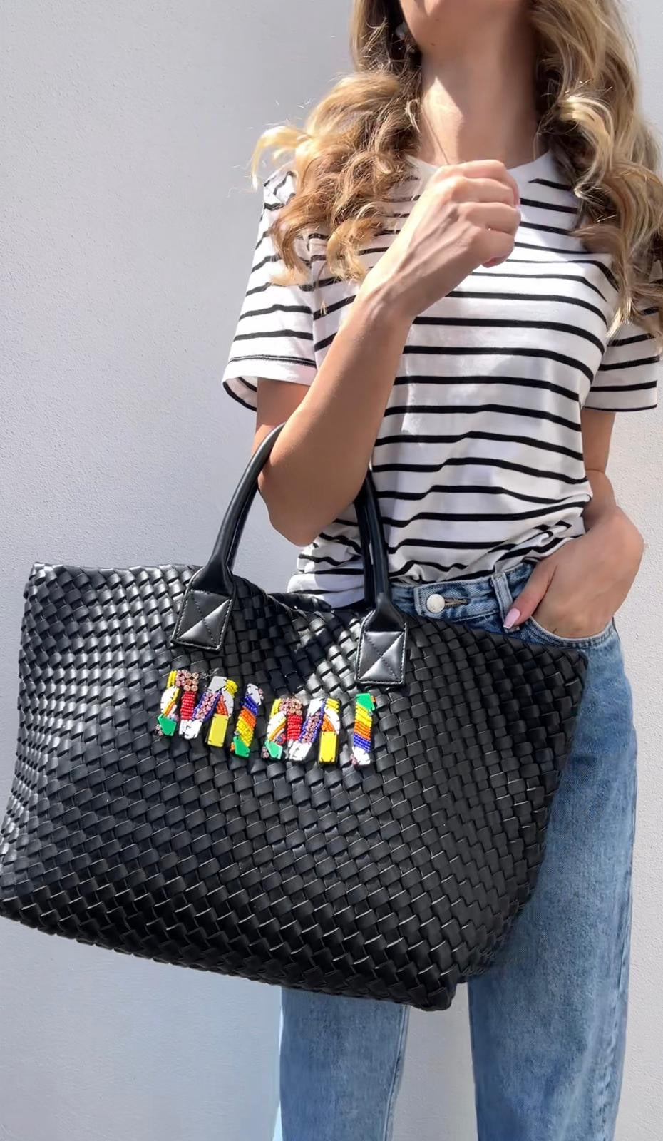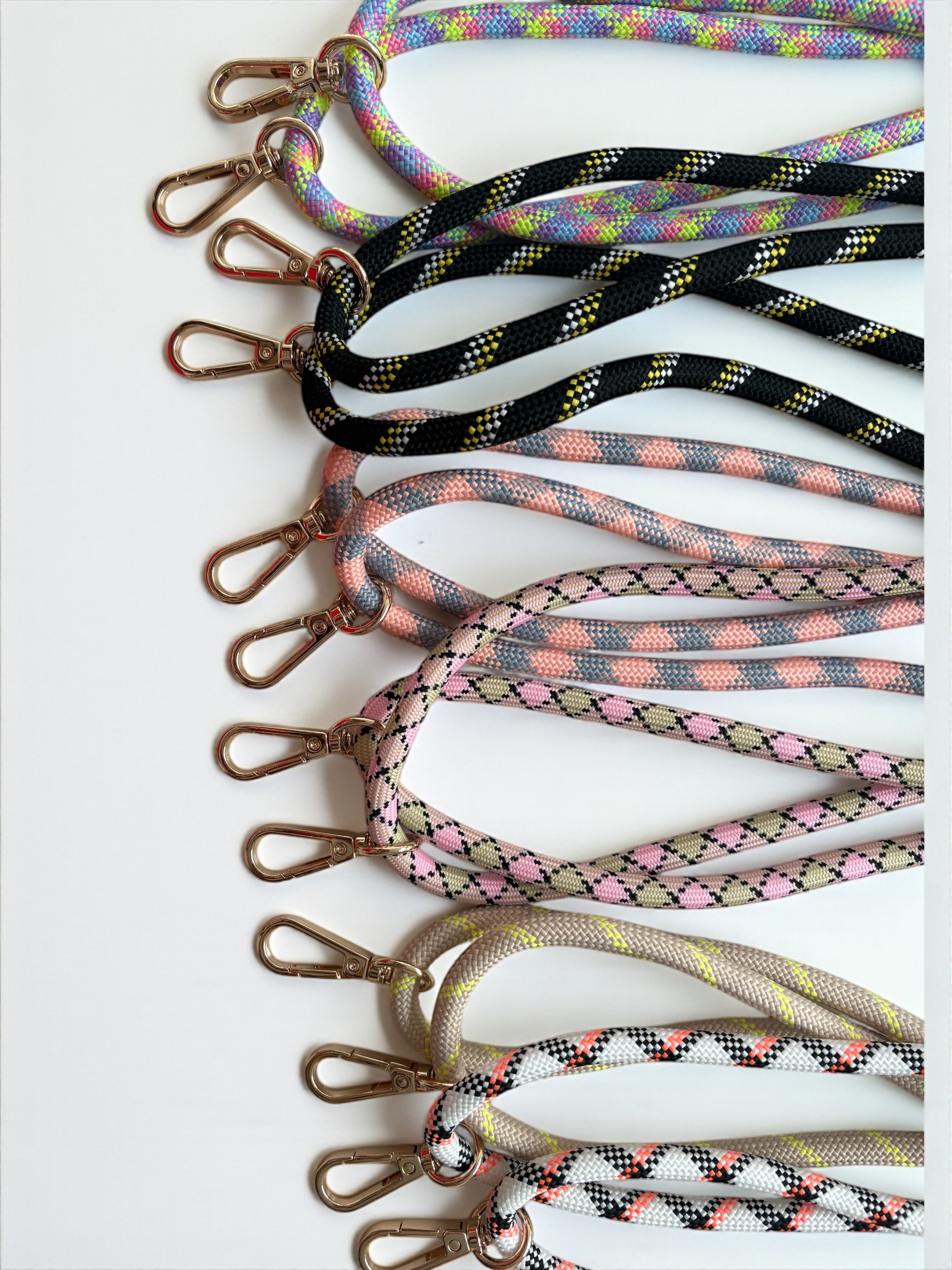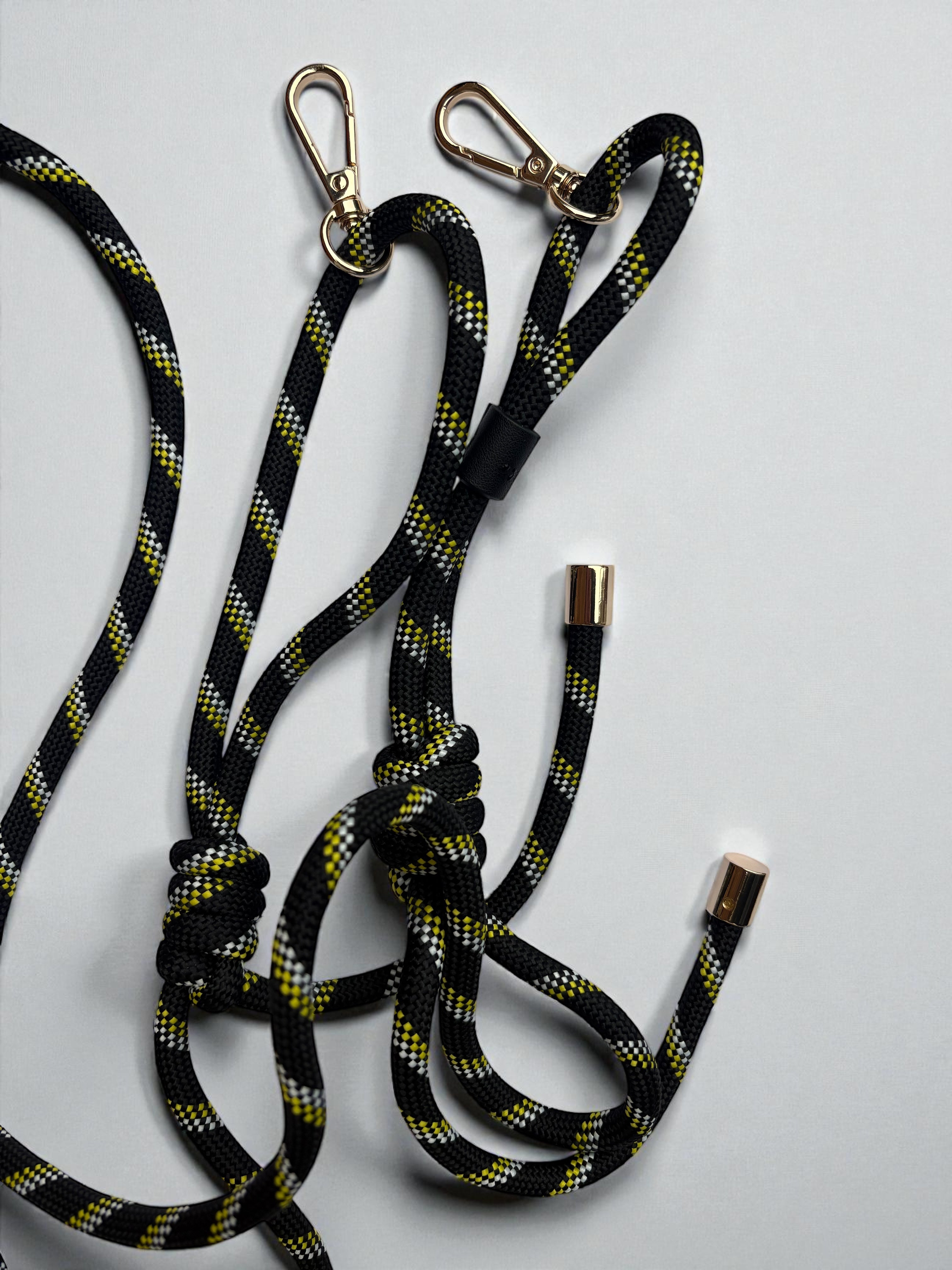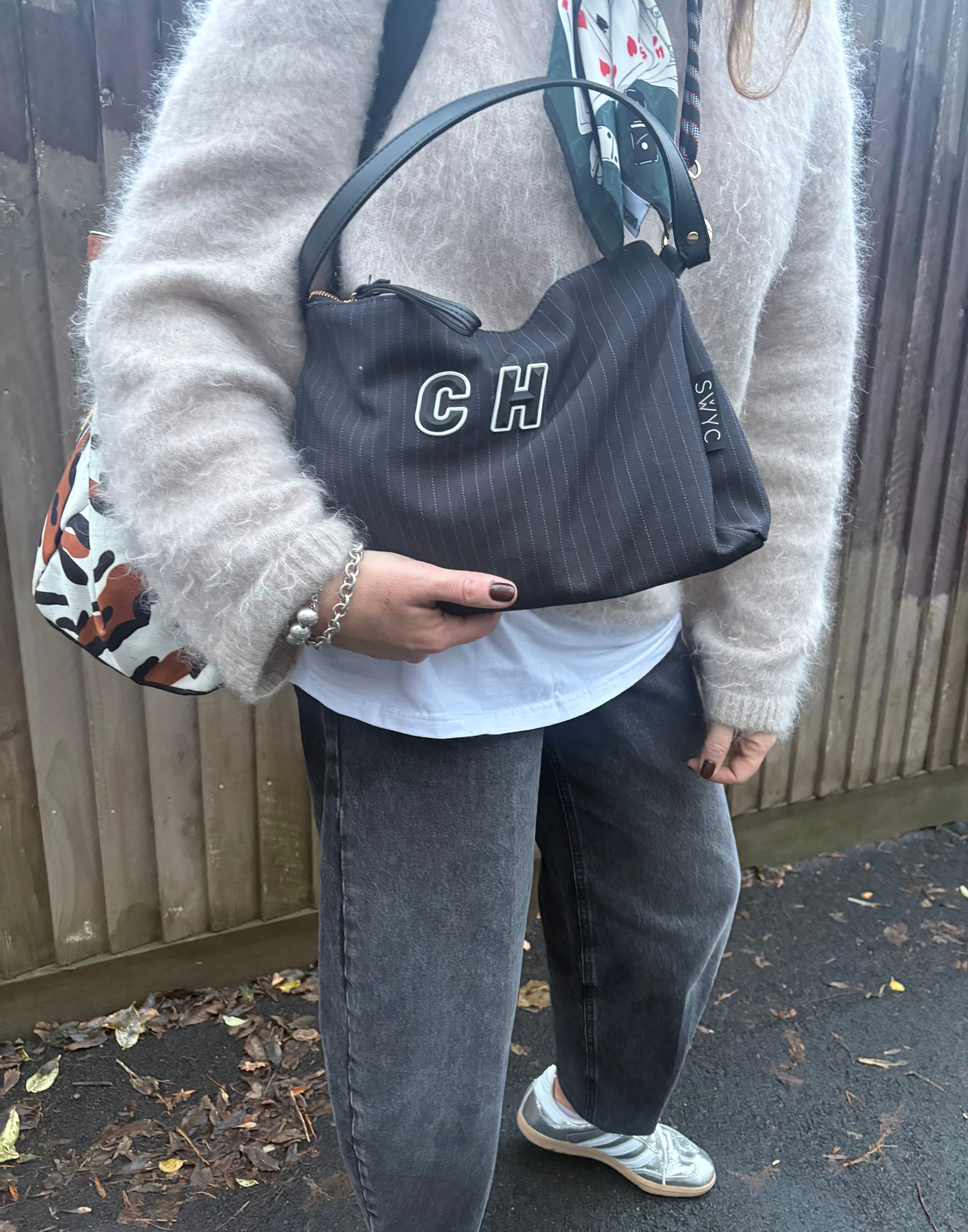 Black pinstripe Luxe Crossbody Shoulder Bag with Interchangeable Rope Strap