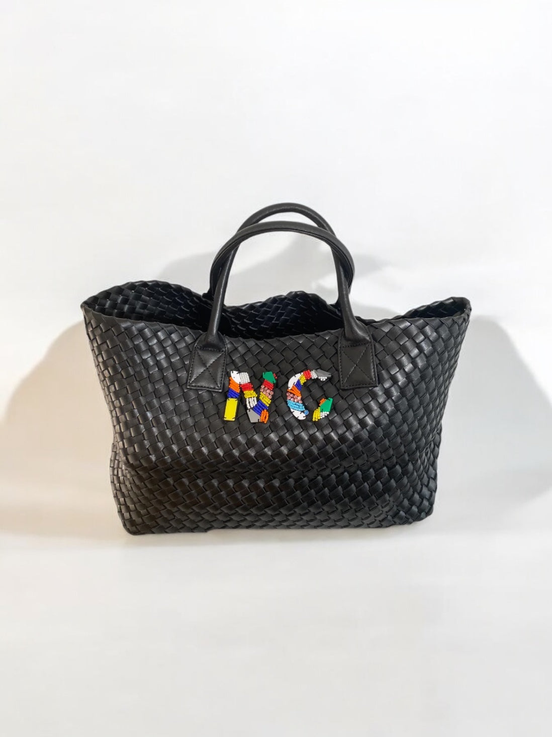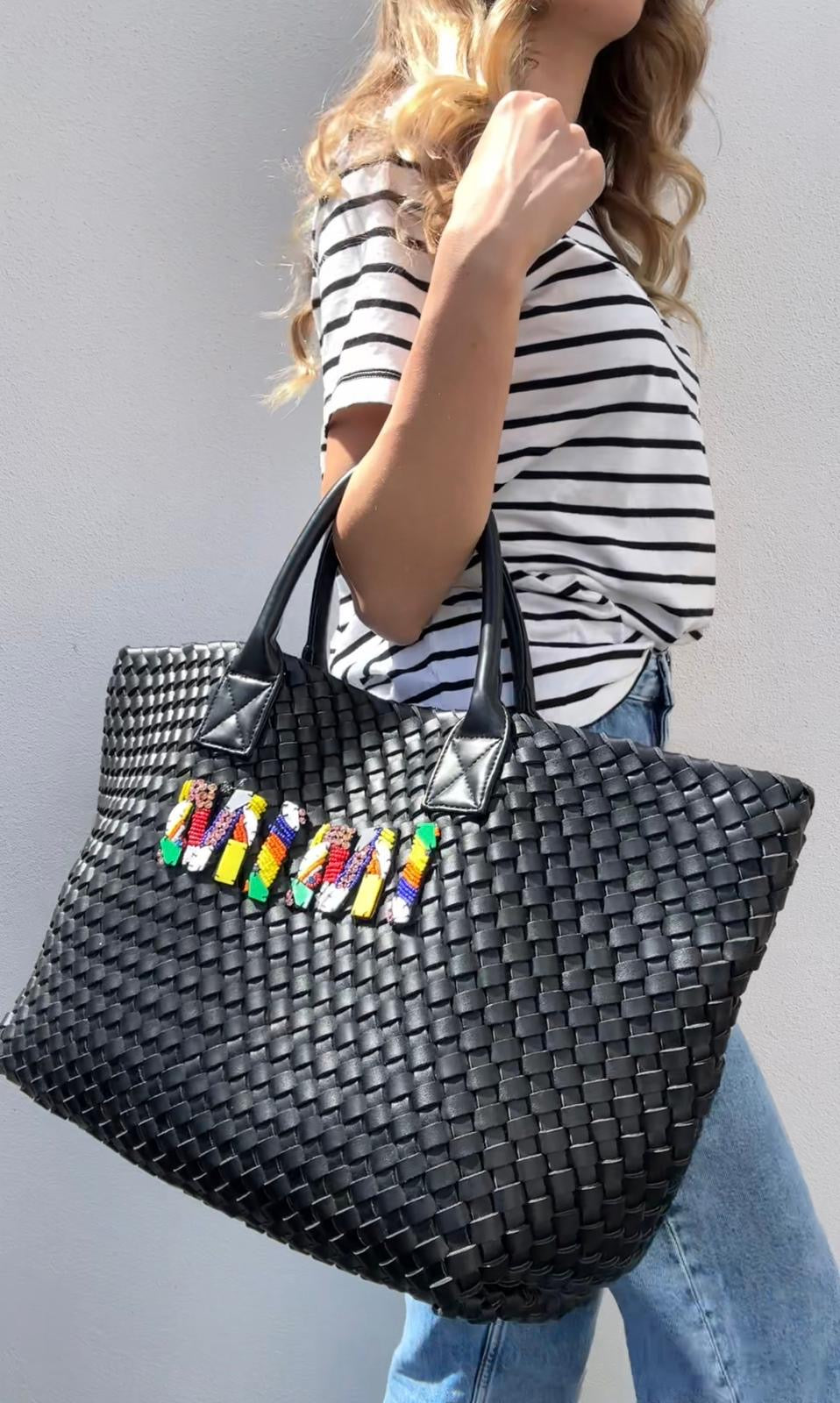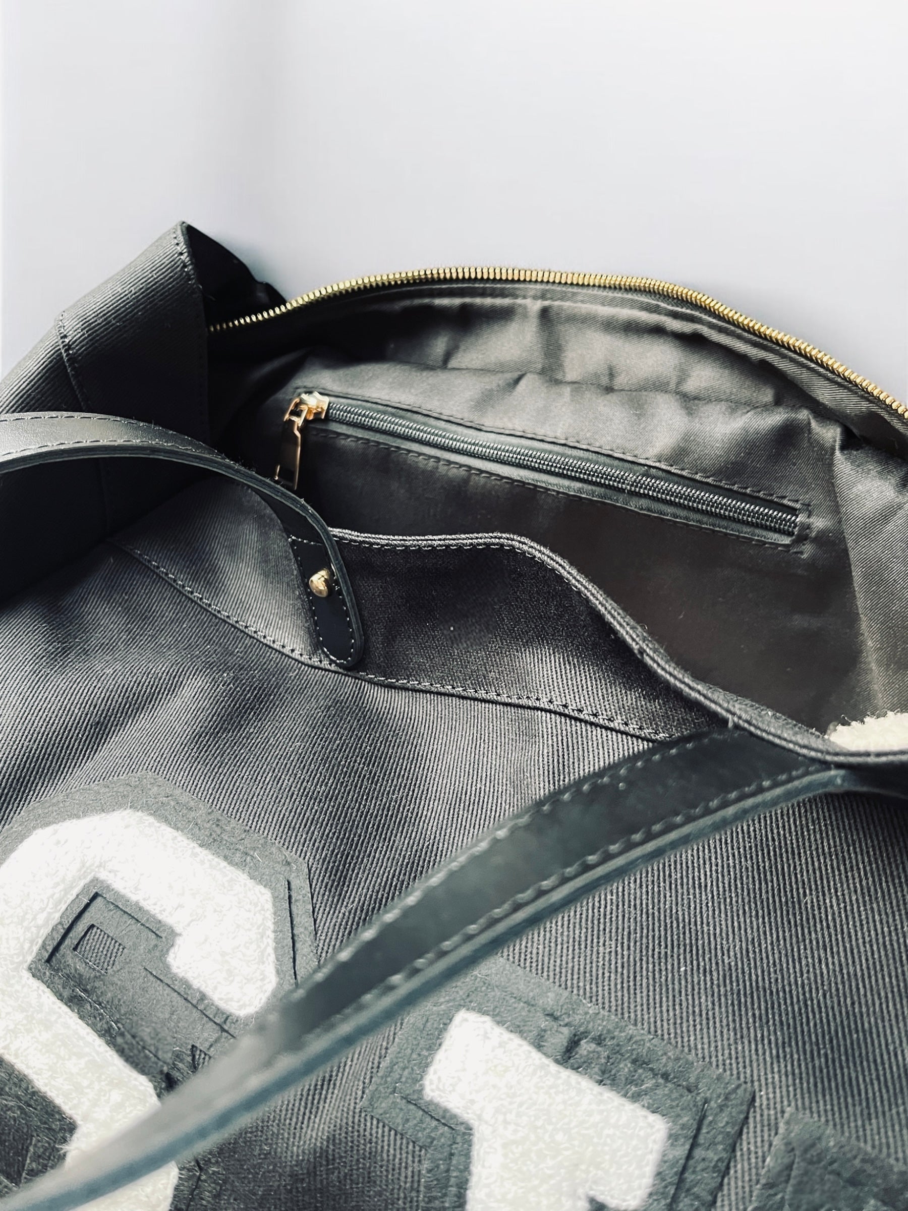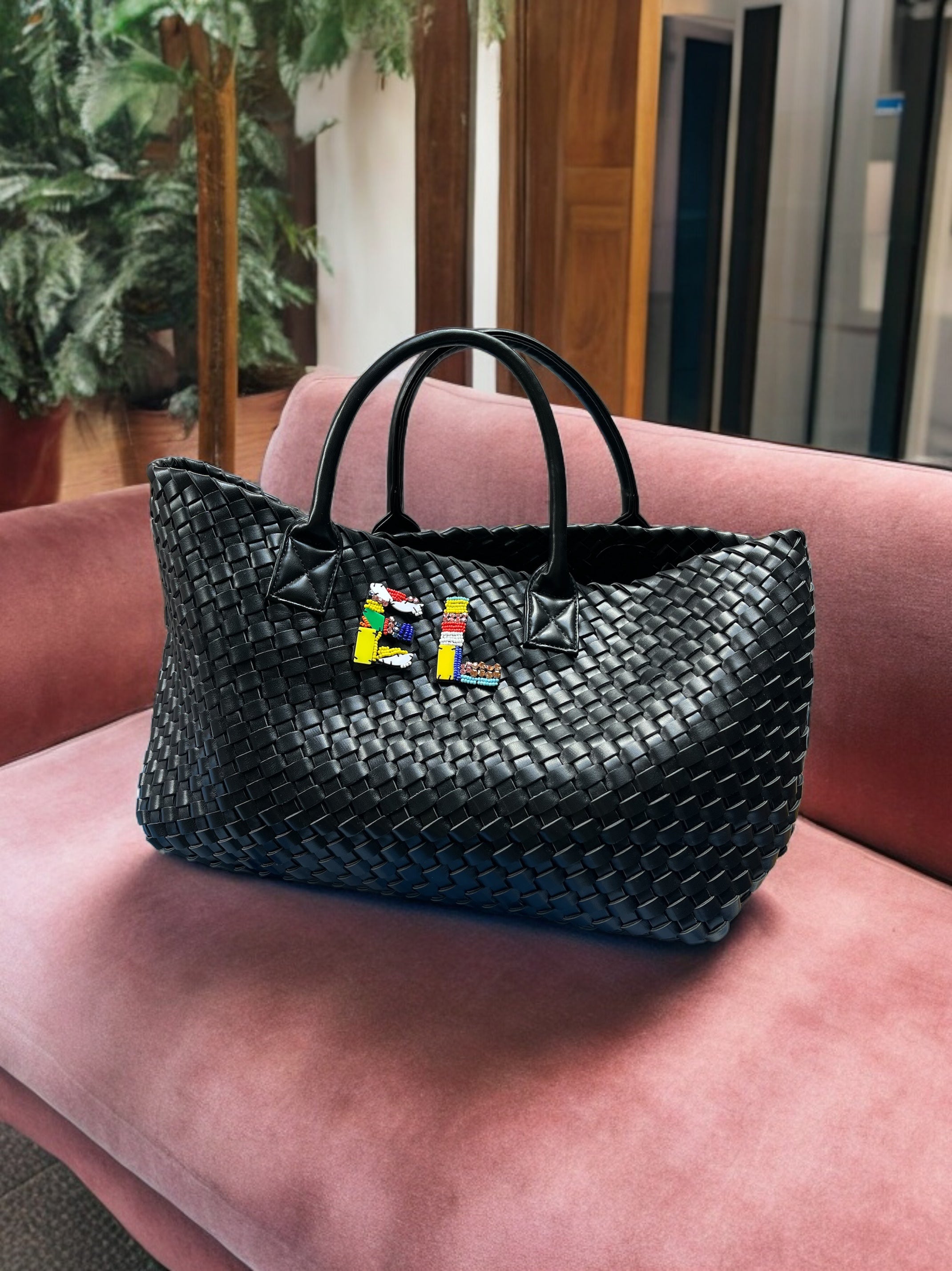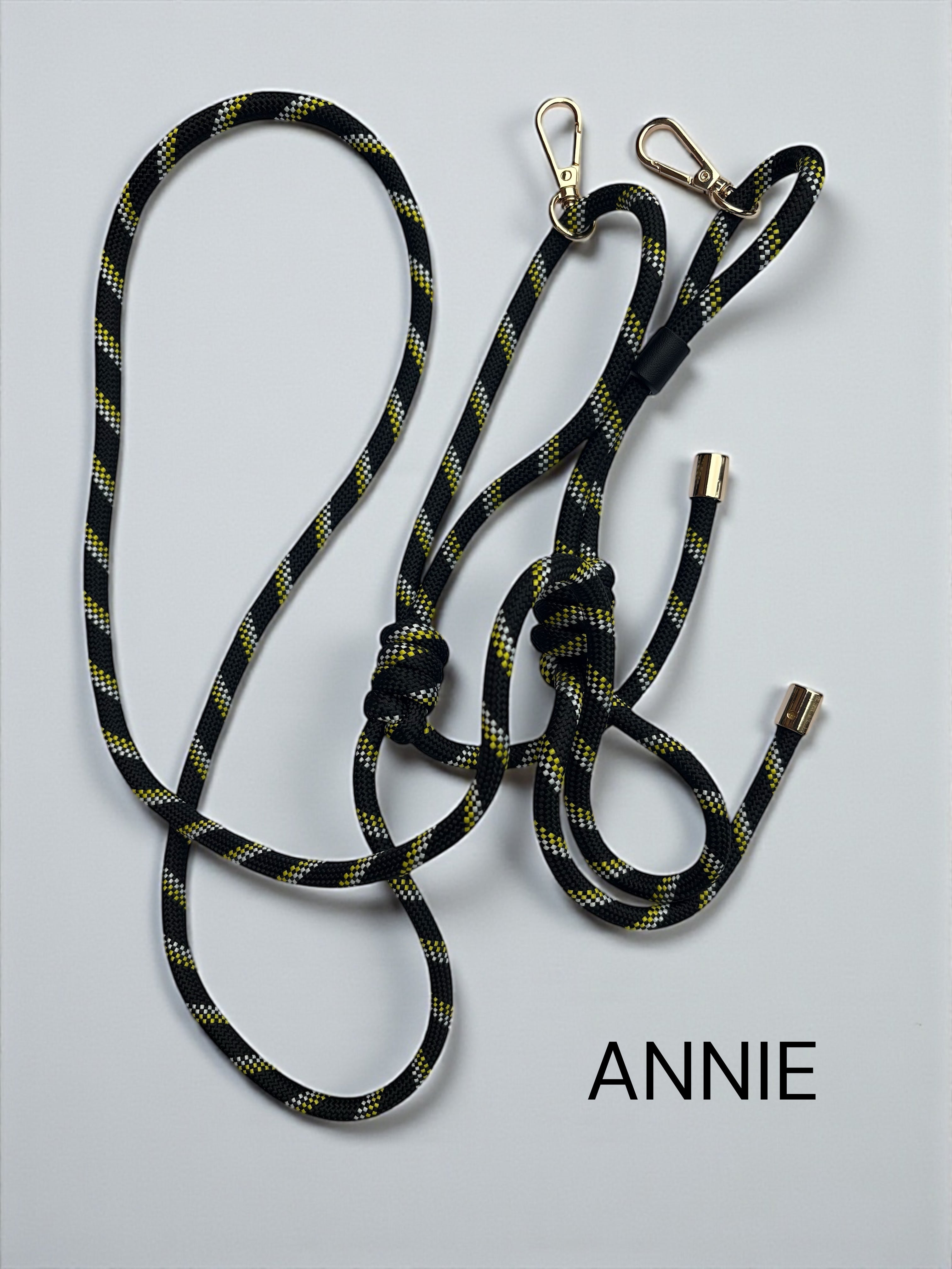Black pinstripe Luxe Crossbody Shoulder Bag with Interchangeable Rope Strap