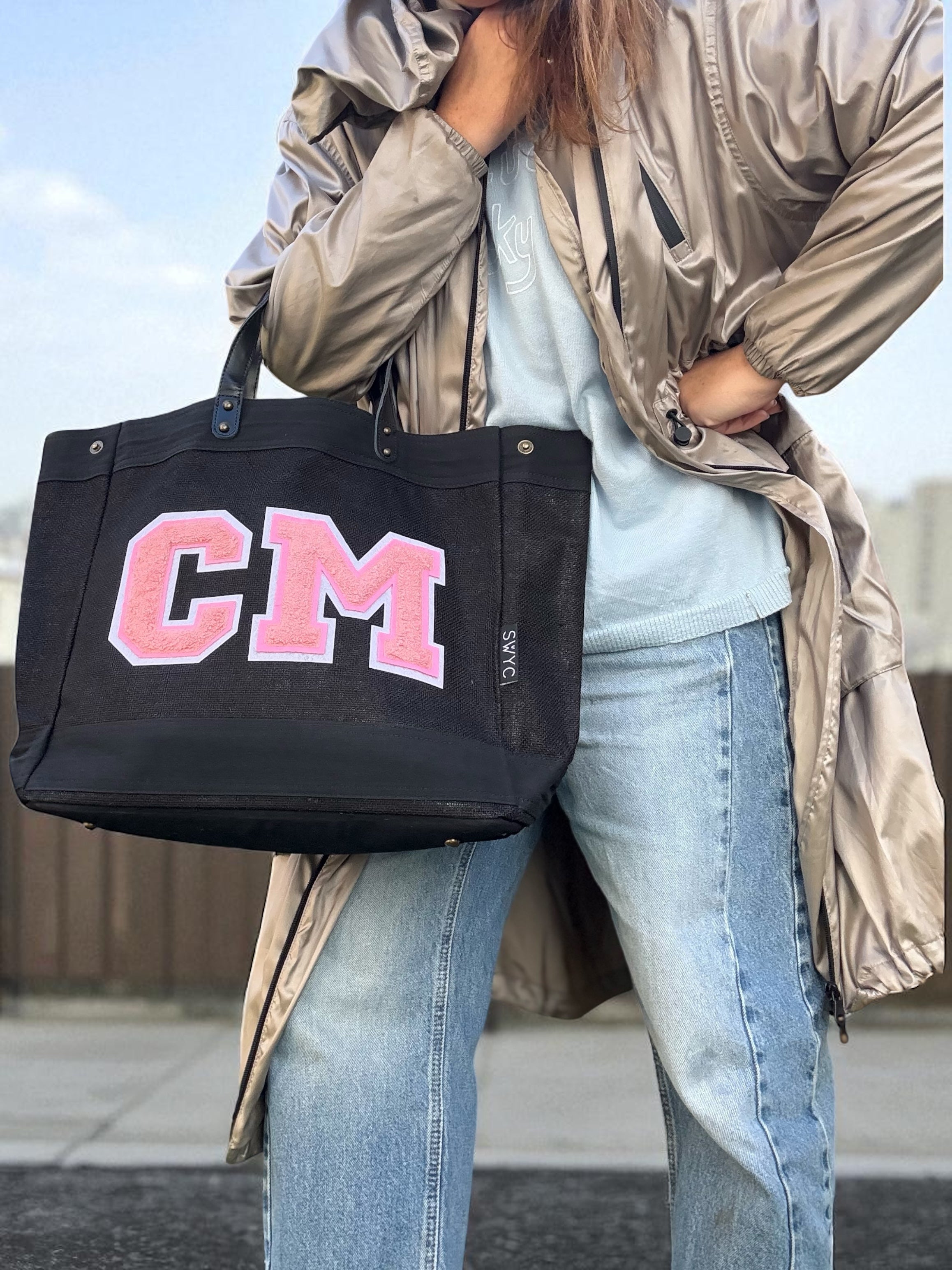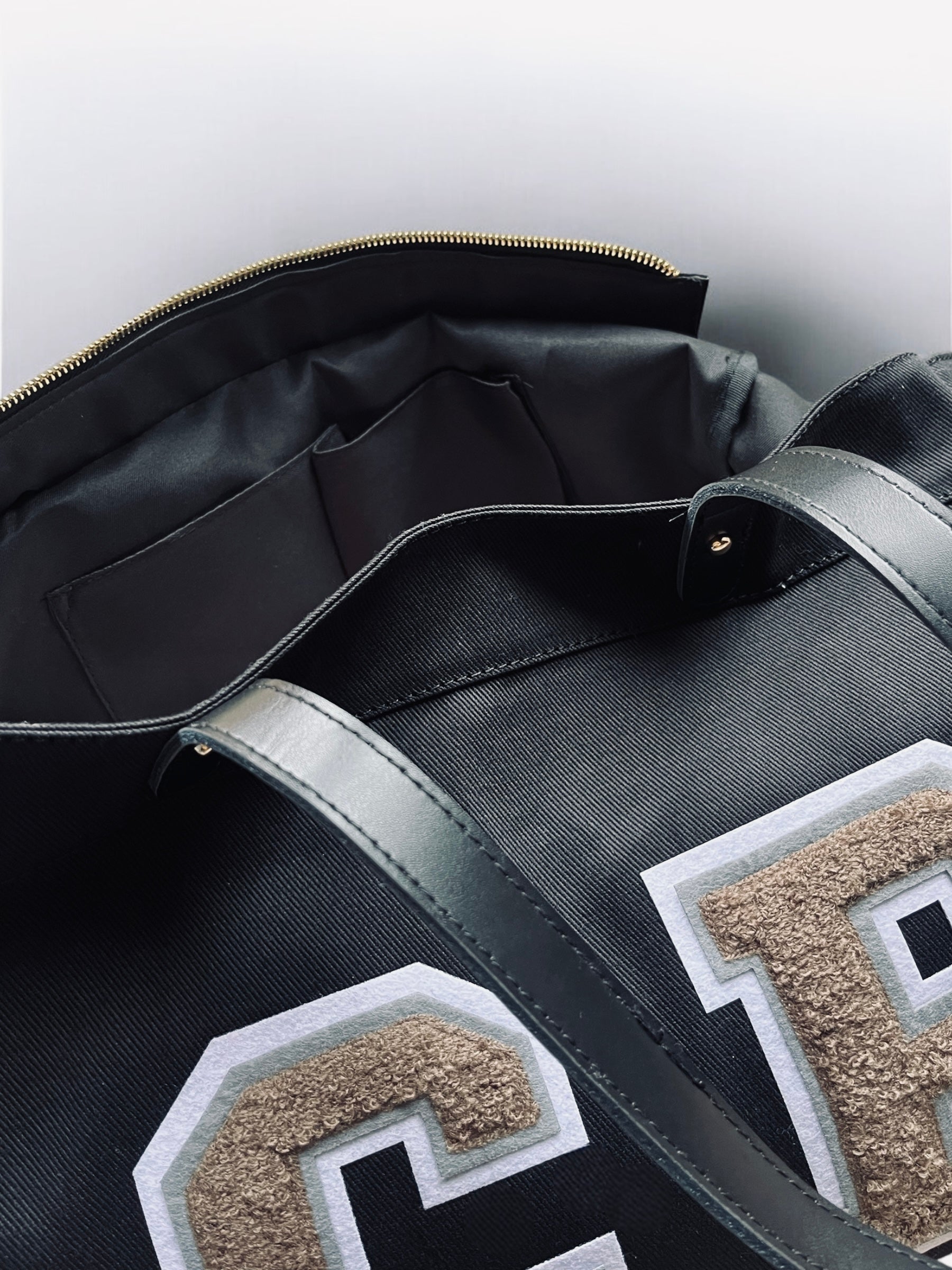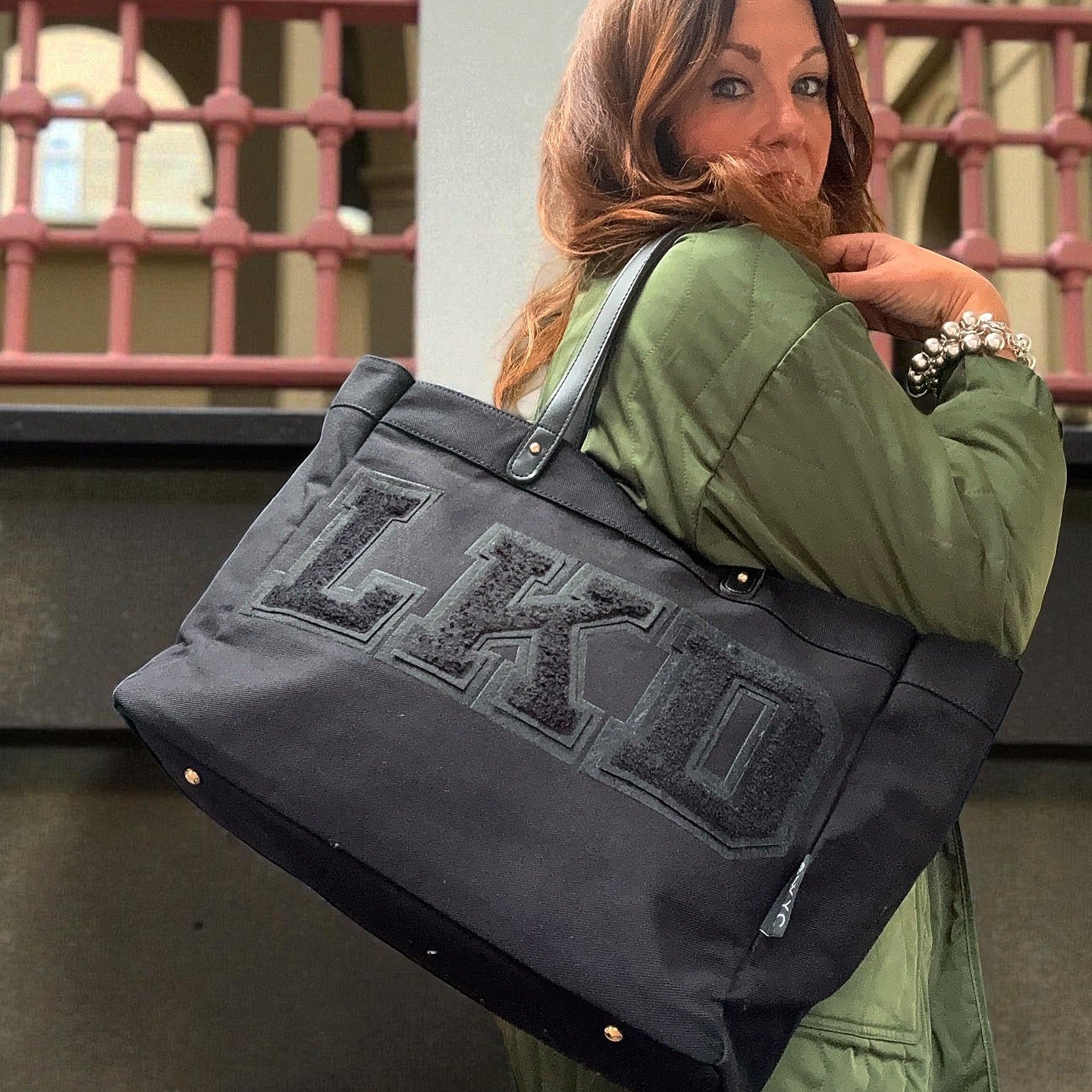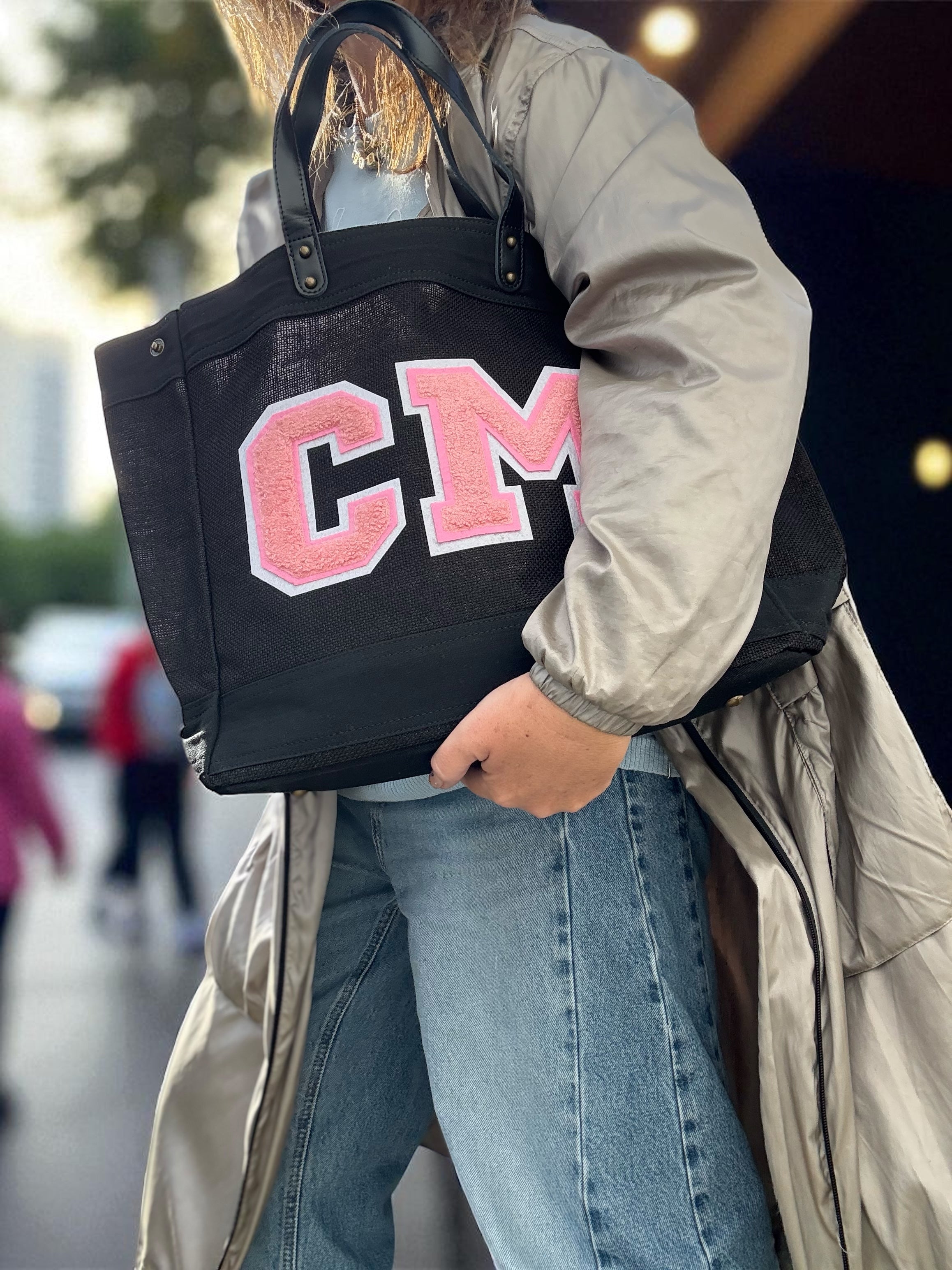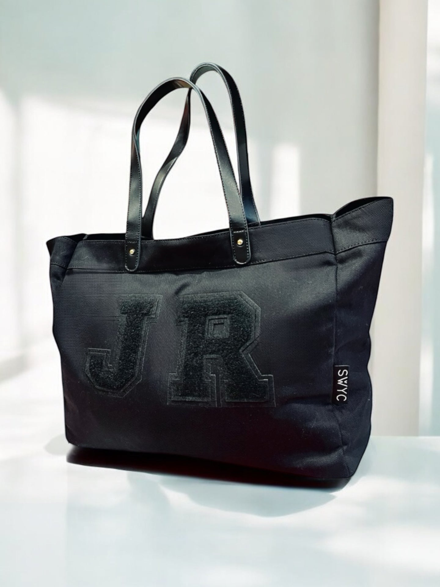 Black pinstripe Luxe Crossbody Shoulder Bag with Interchangeable Rope Strap