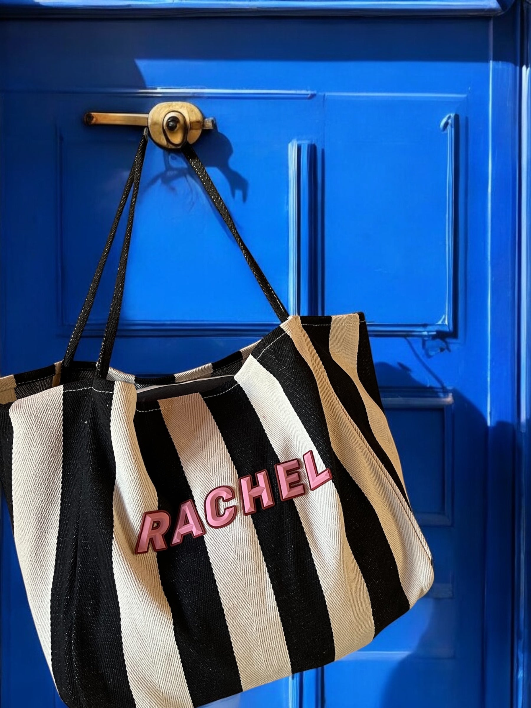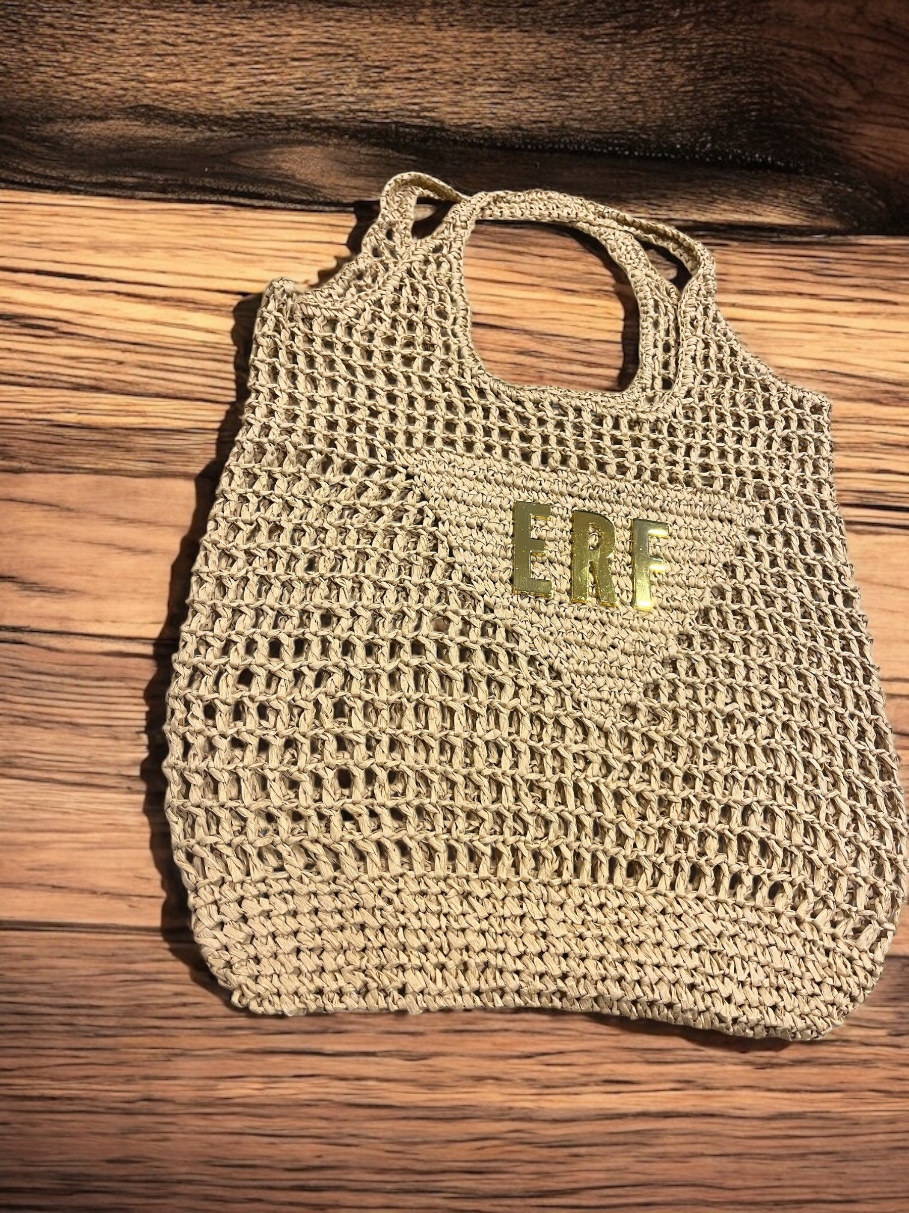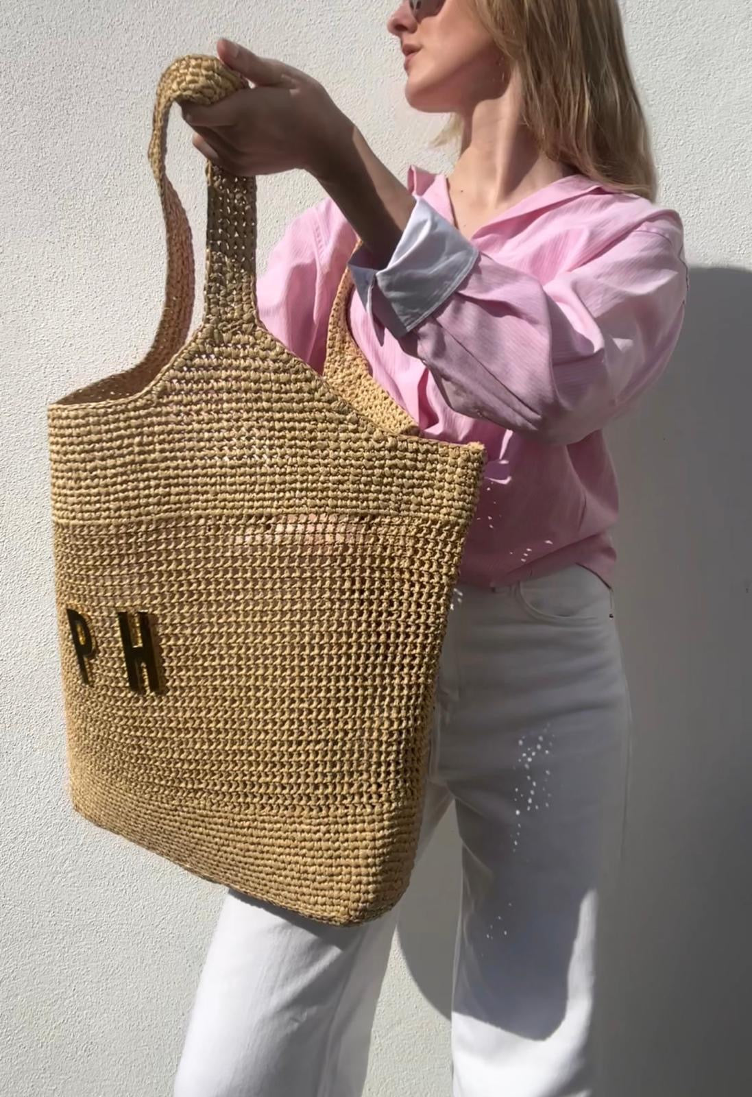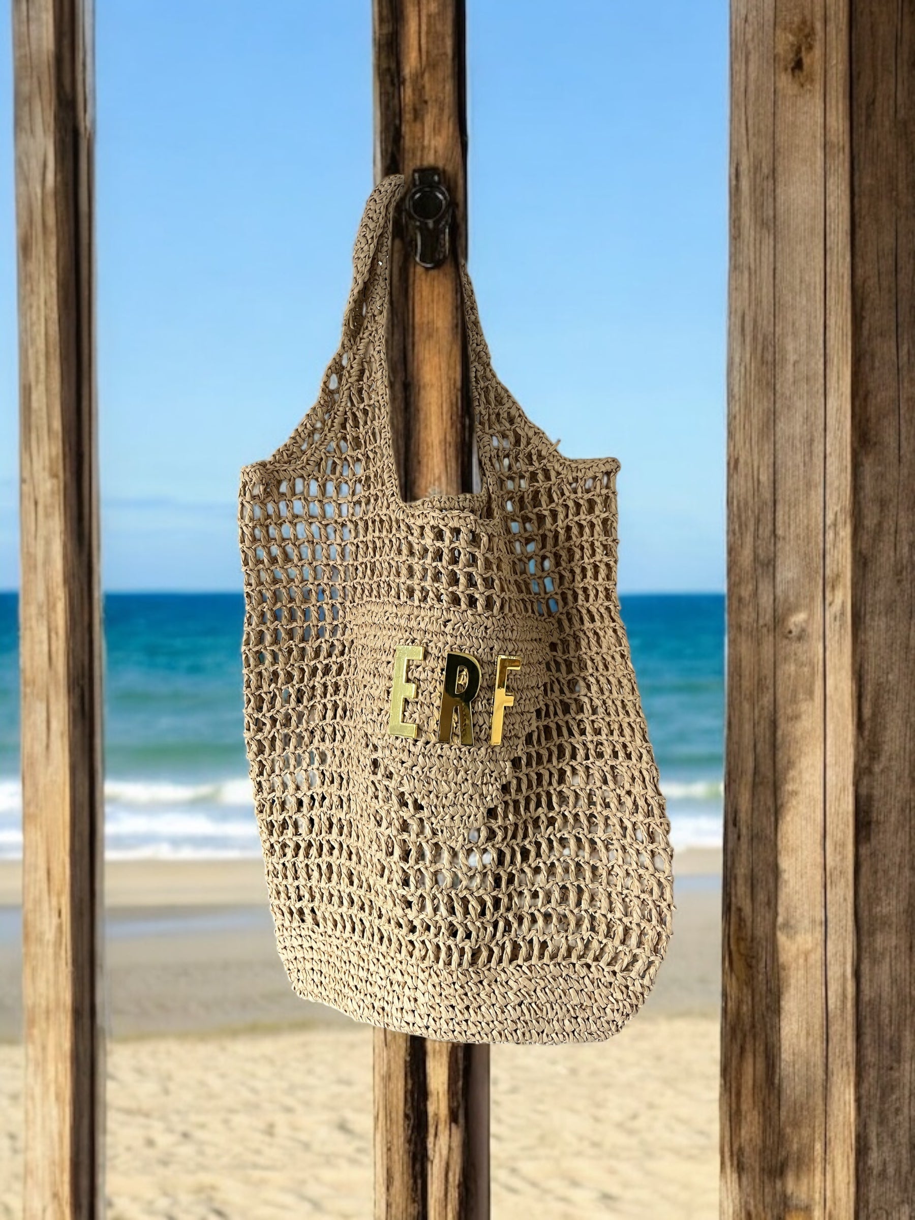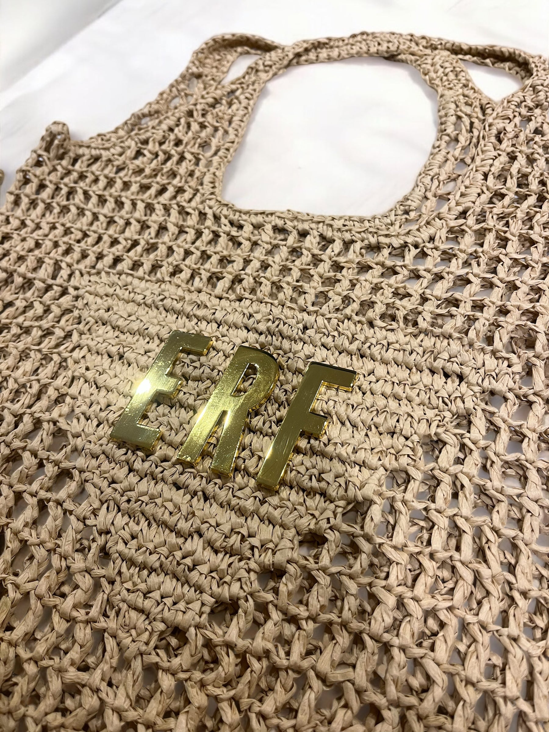 PERSONALISED OPEN BASKET BAG - GOLD METAL LETTERS
