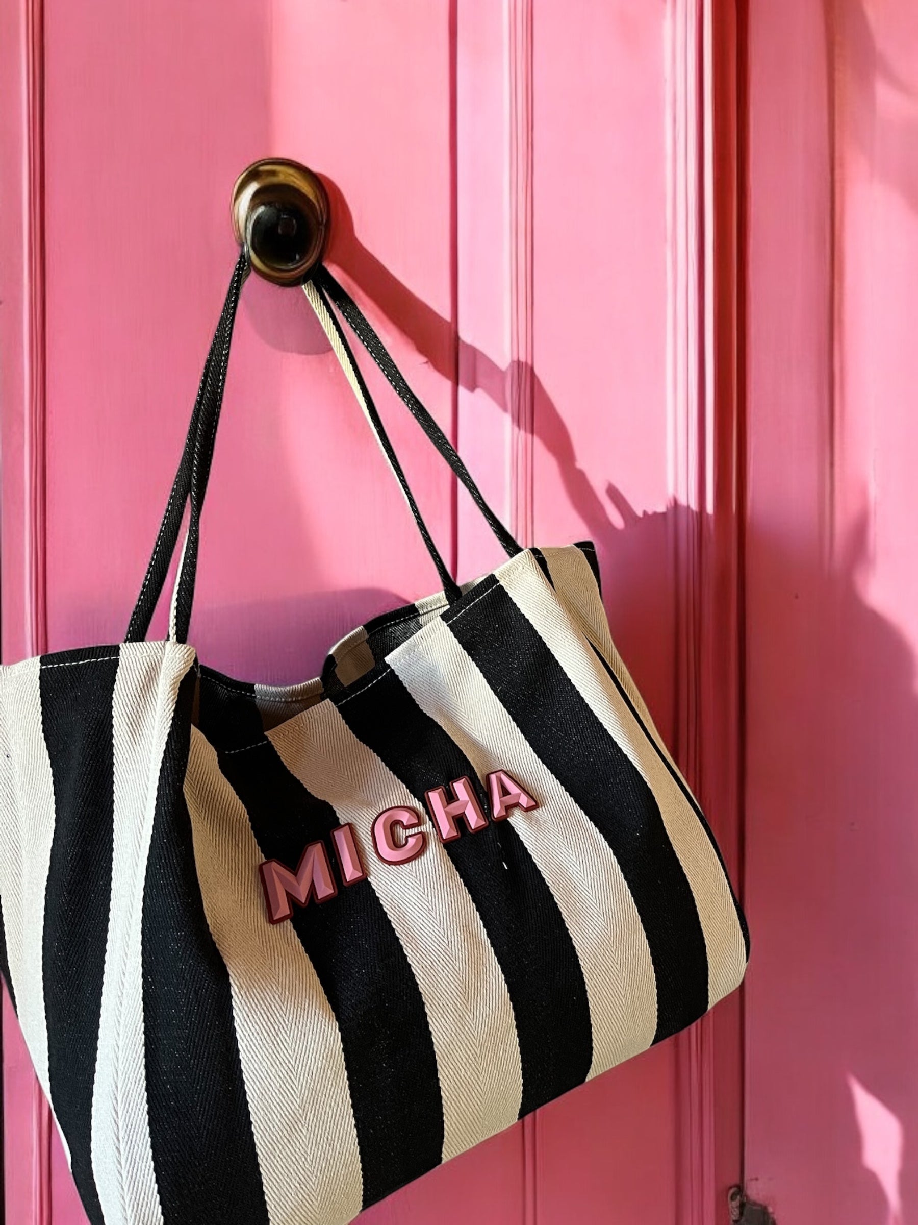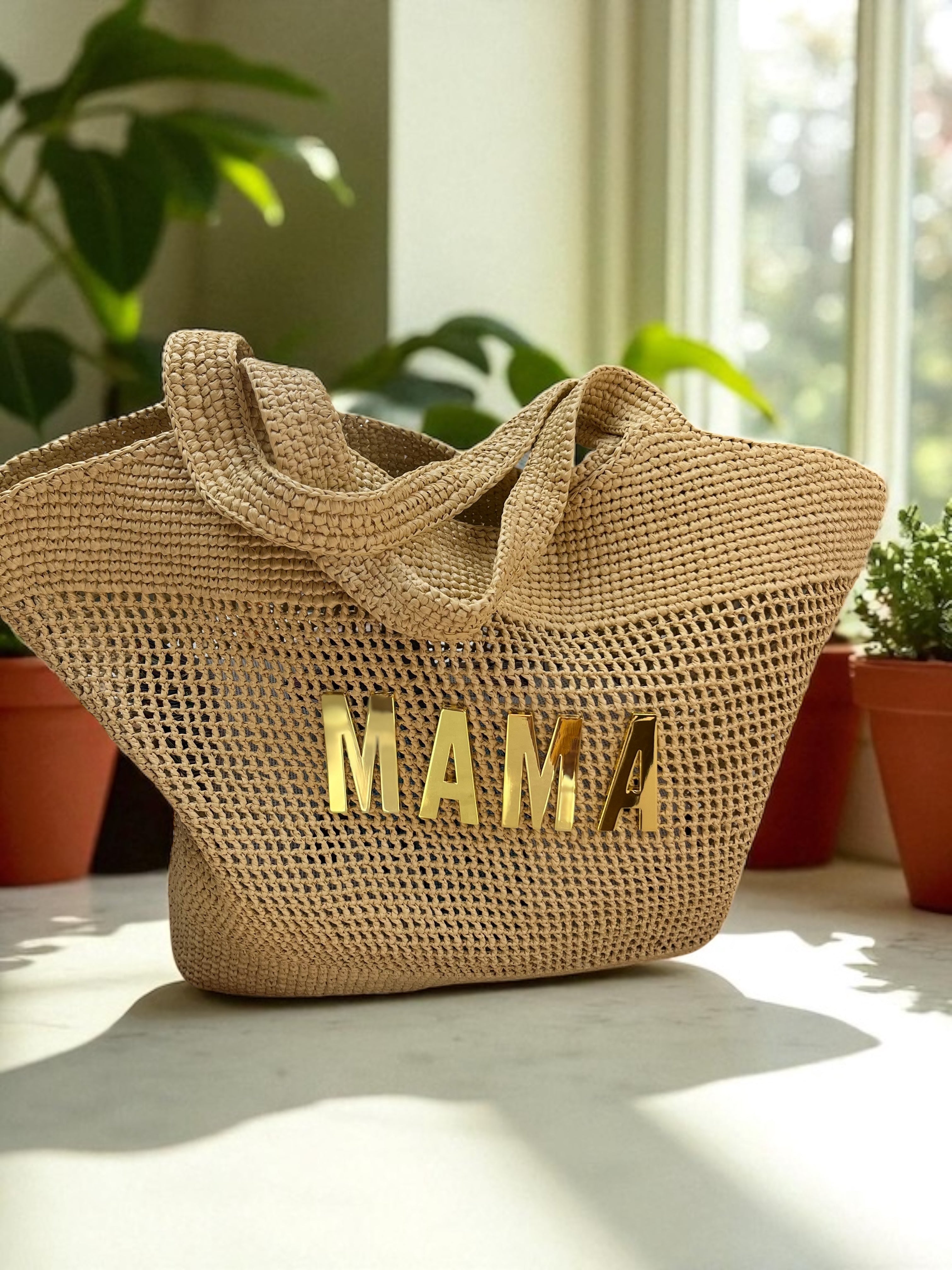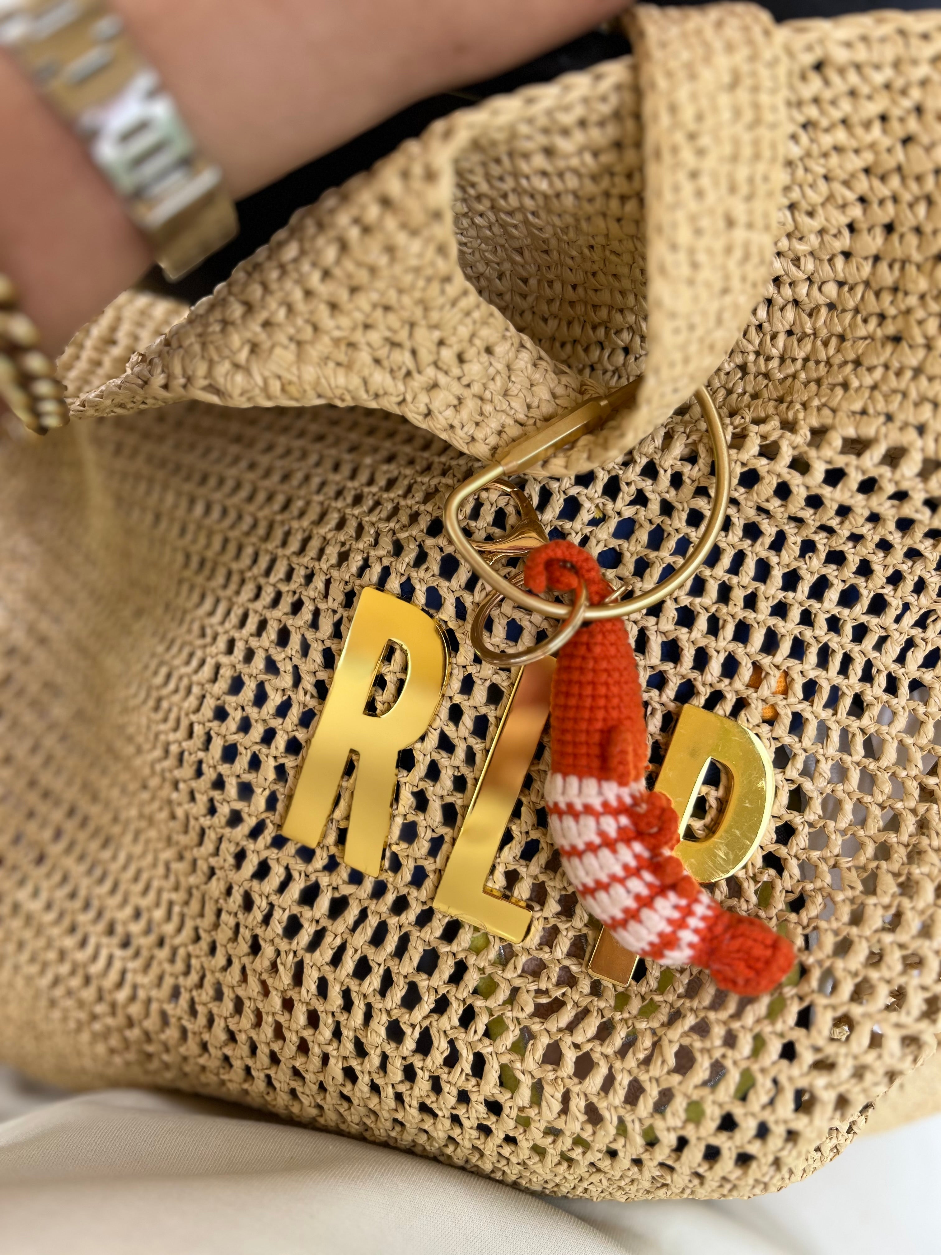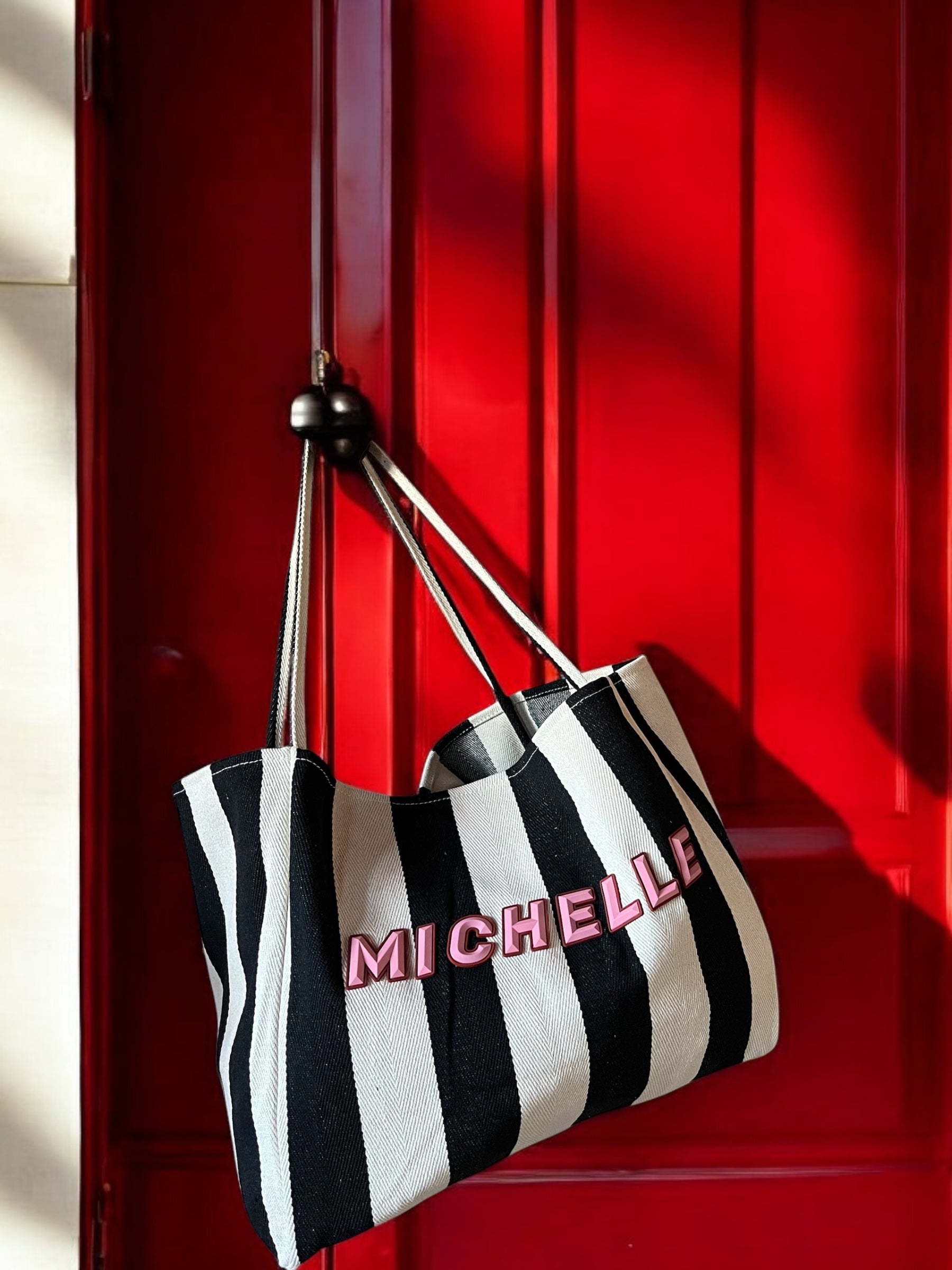 PERSONALISED OPEN BASKET BAG - GOLD METAL LETTERS