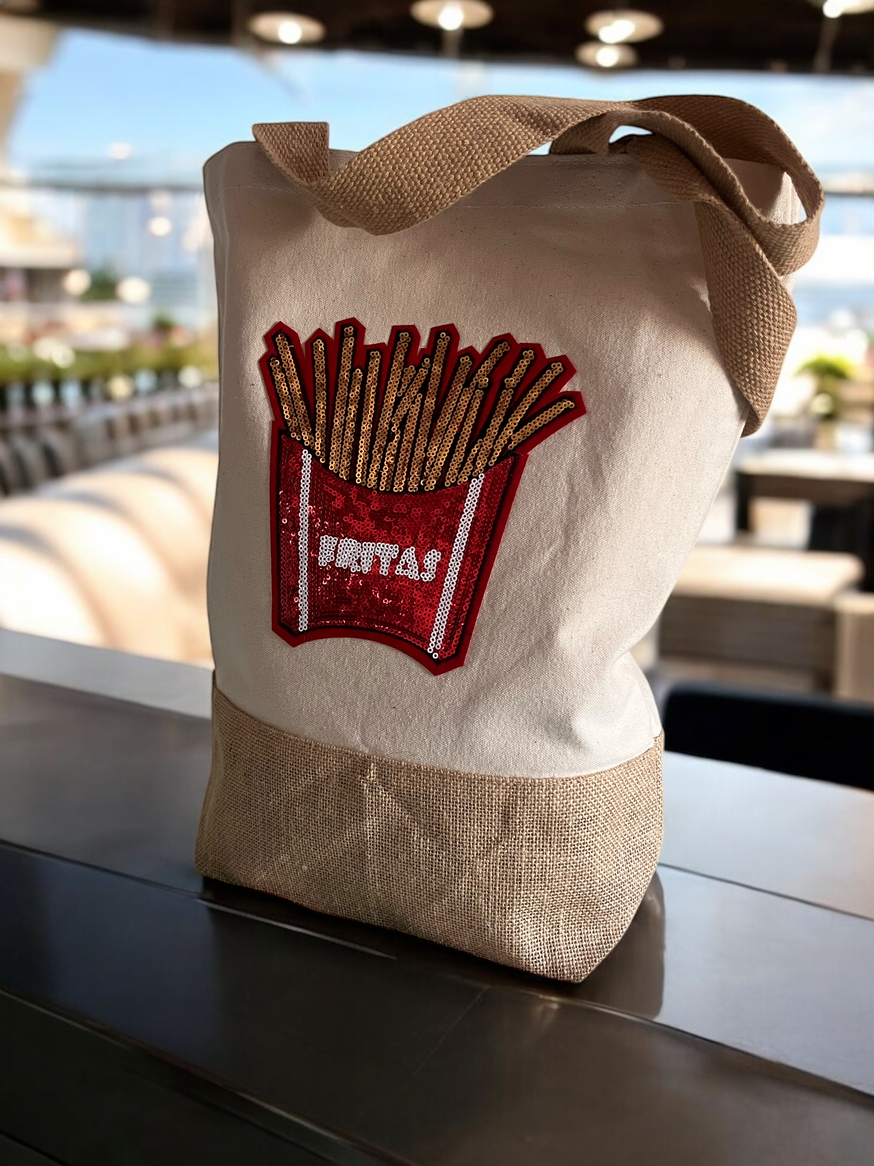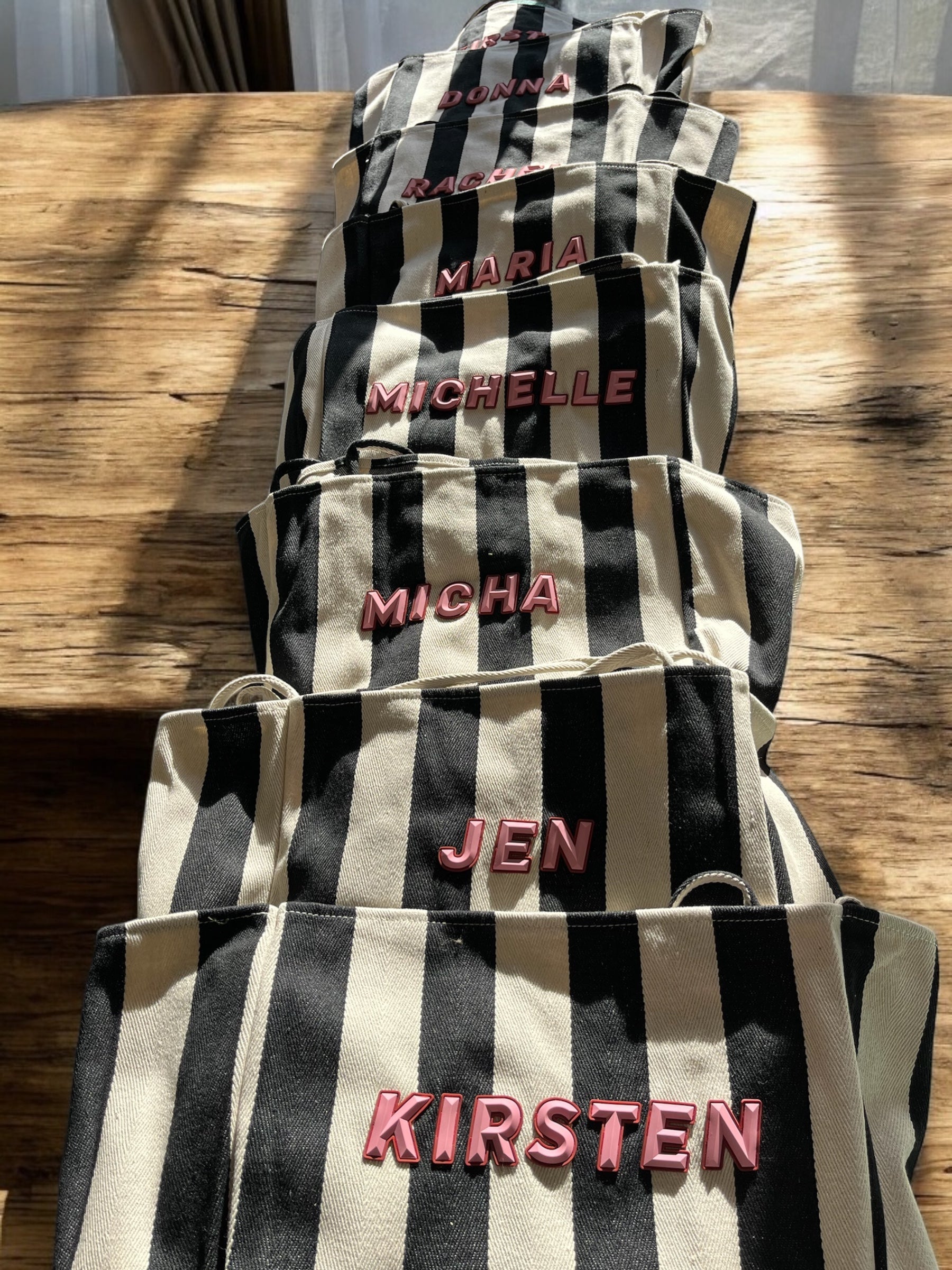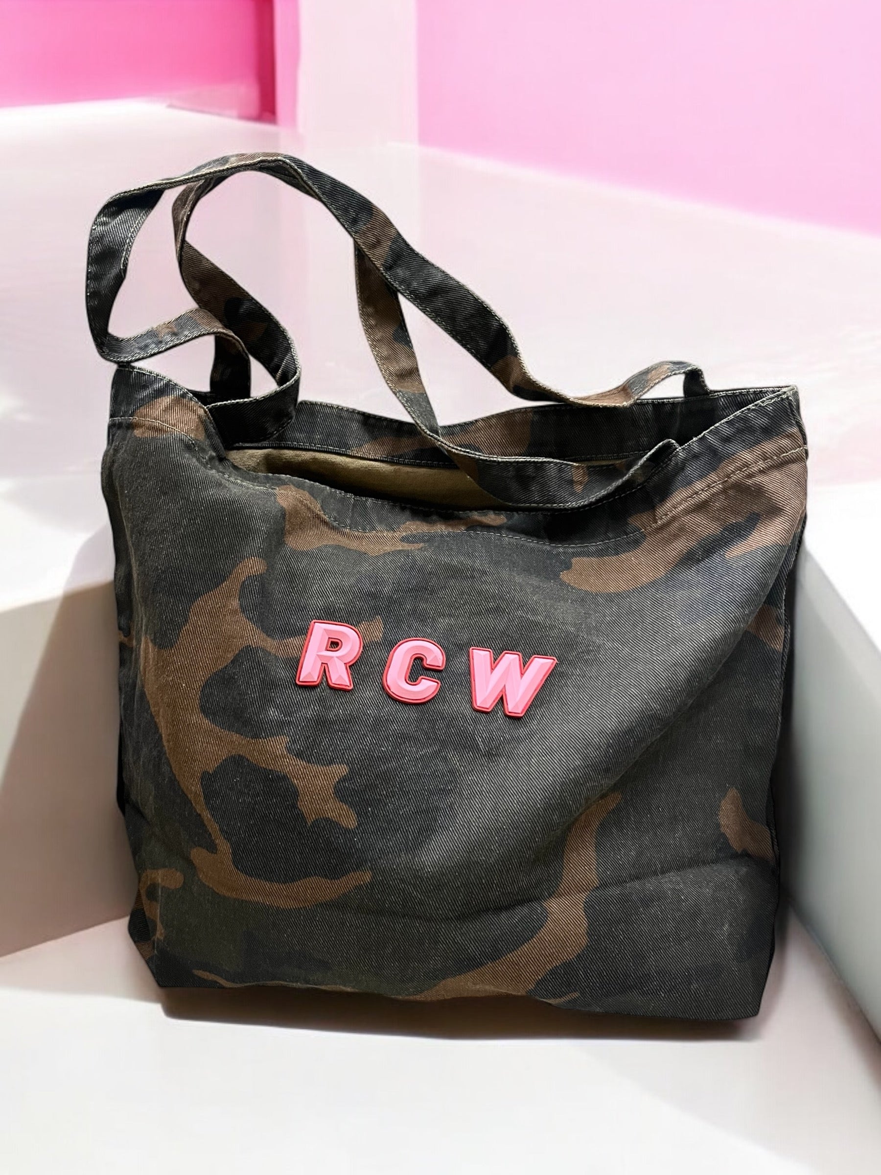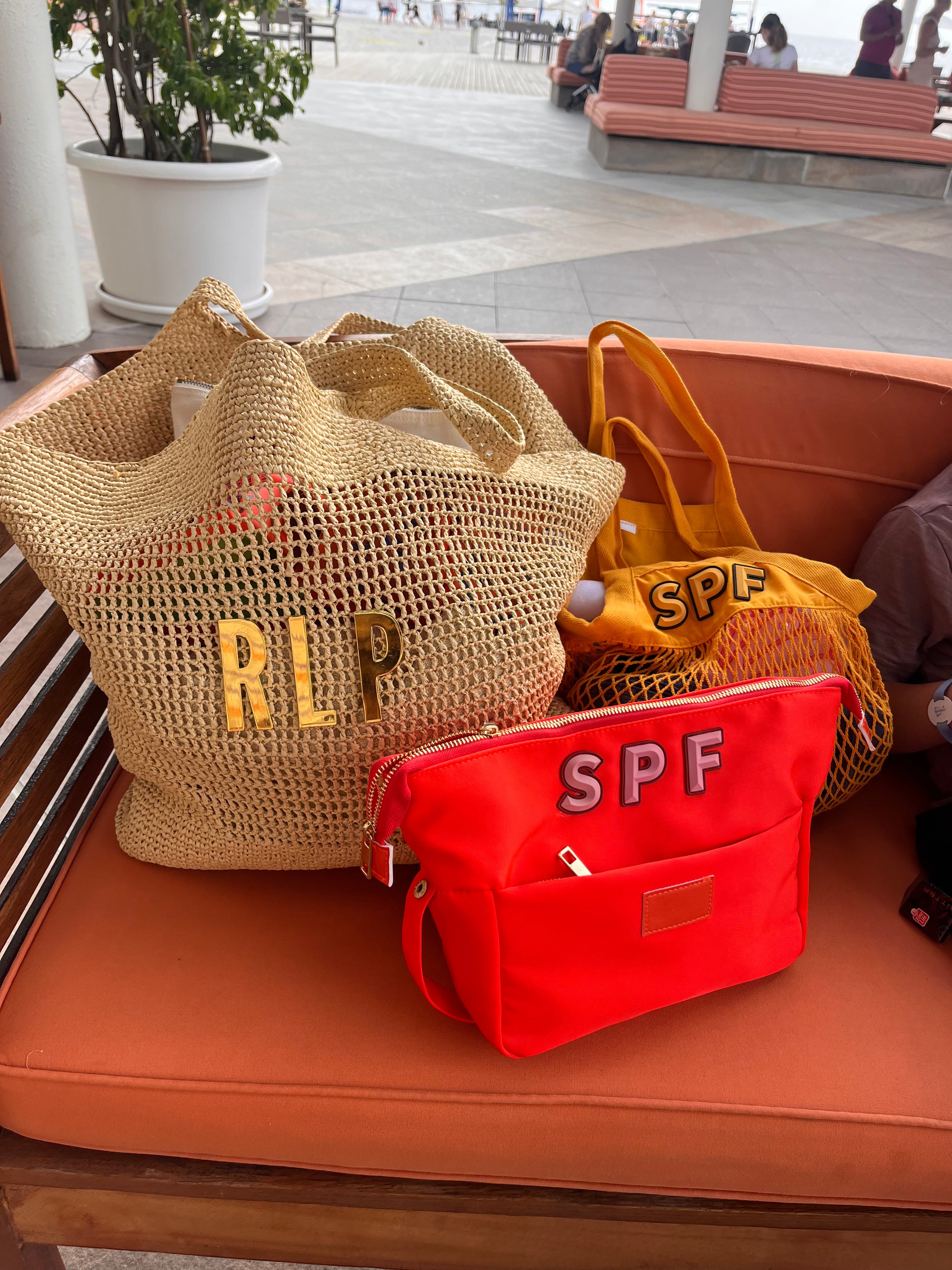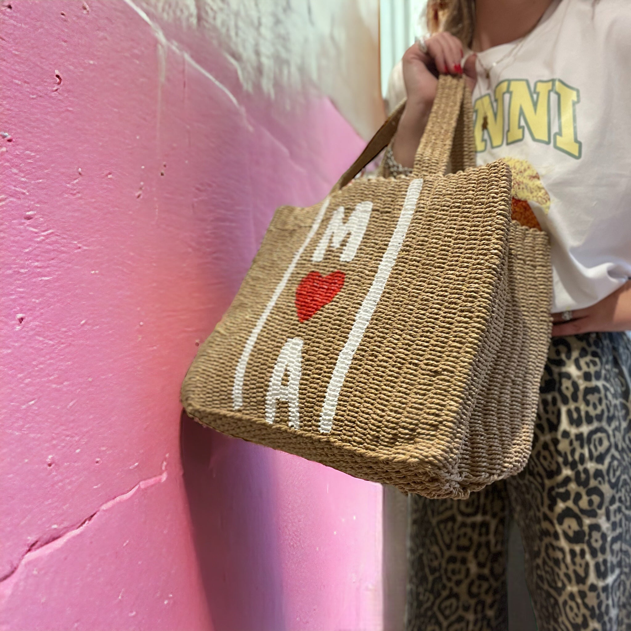 PERSONALISED OPEN BASKET BAG - GOLD METAL LETTERS