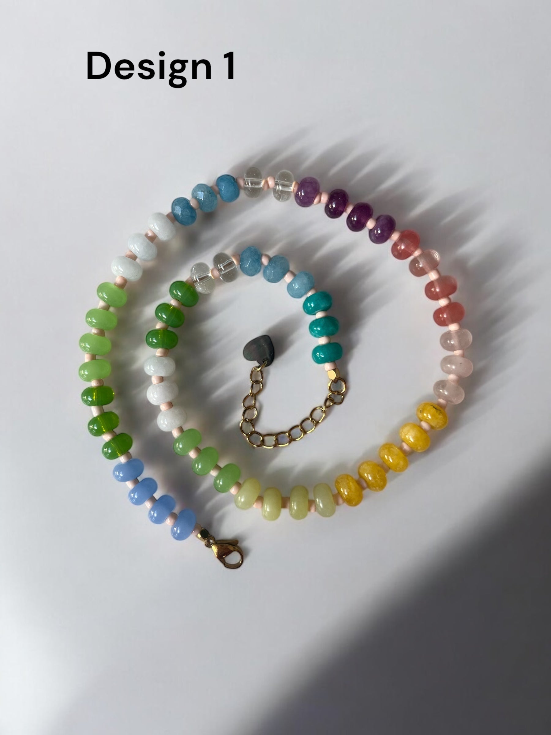 These are real stone beaded necklaces. No plastic here! They are a great addition to any outfit and look great as a first tier necklace for your neck stack