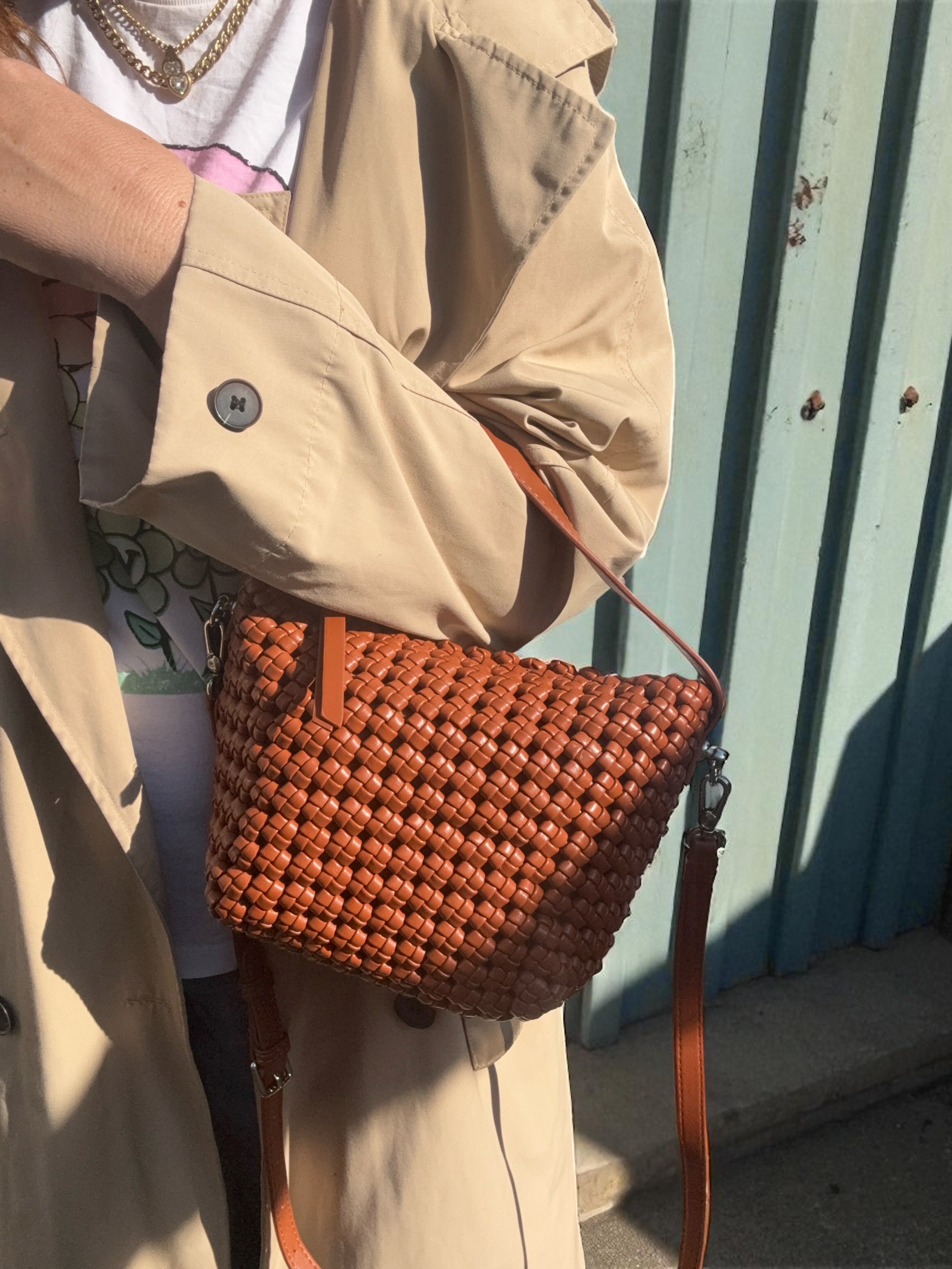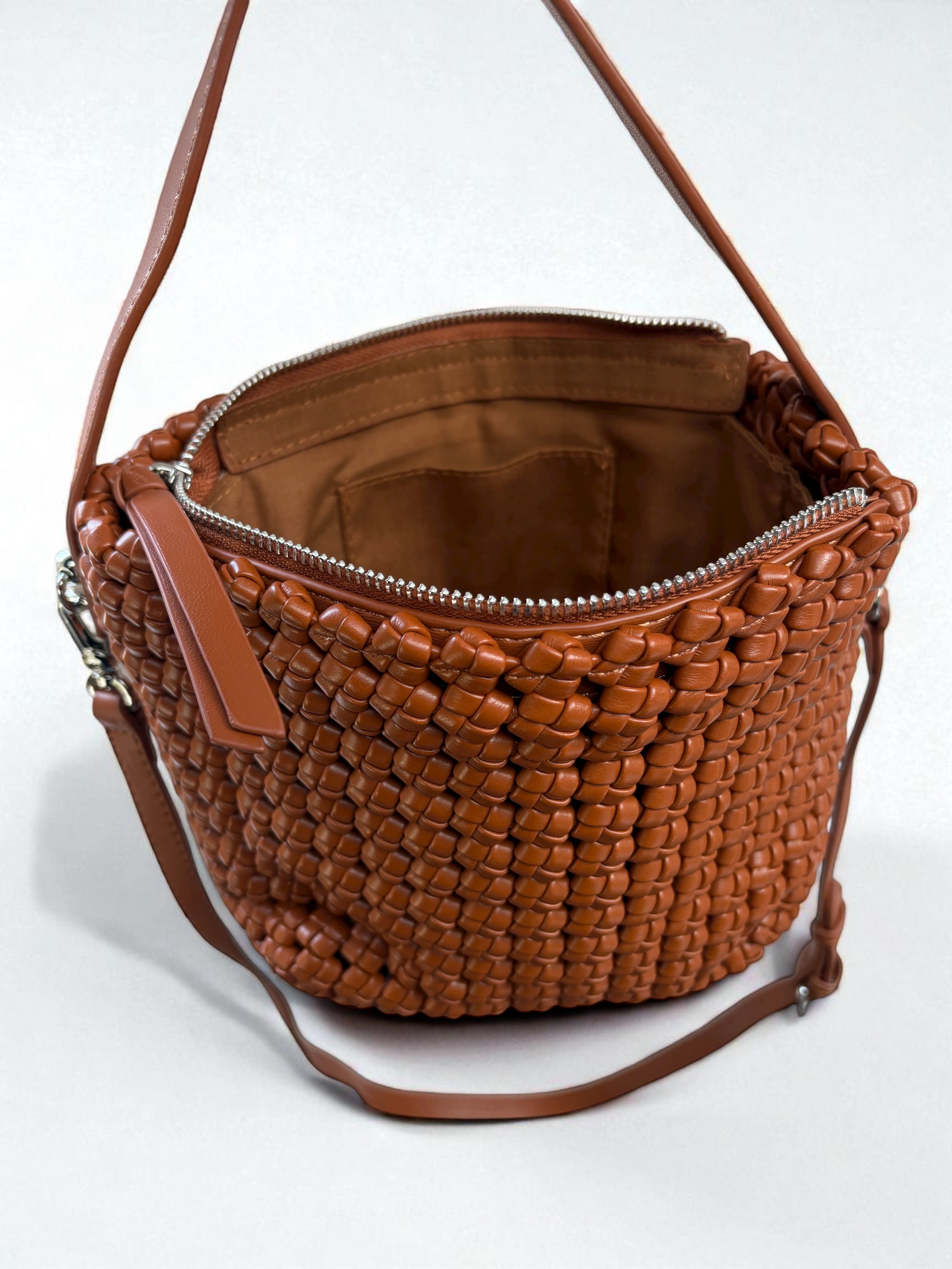 Designed with a modern woven texture, it’s the perfect mix of style and function. Wear it on your shoulder for an elevated look or switch to crossbody when you’re on the go.