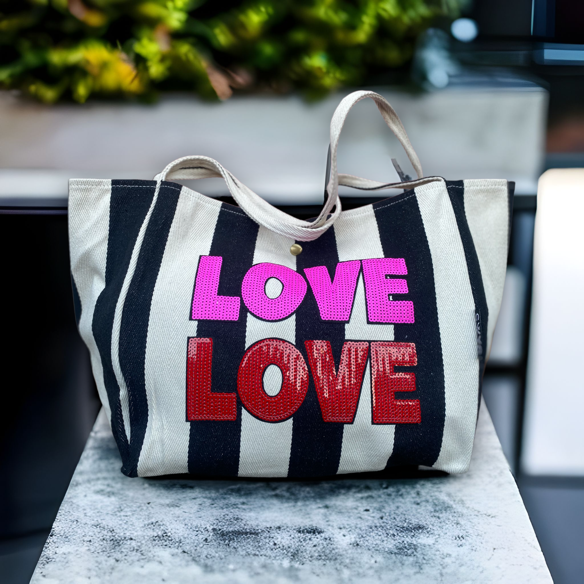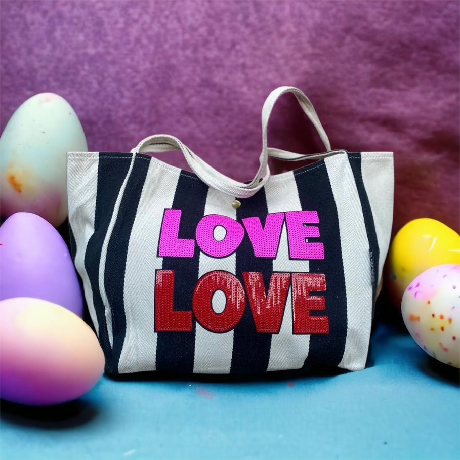 LOVE LOVE sequin bag - black stripe