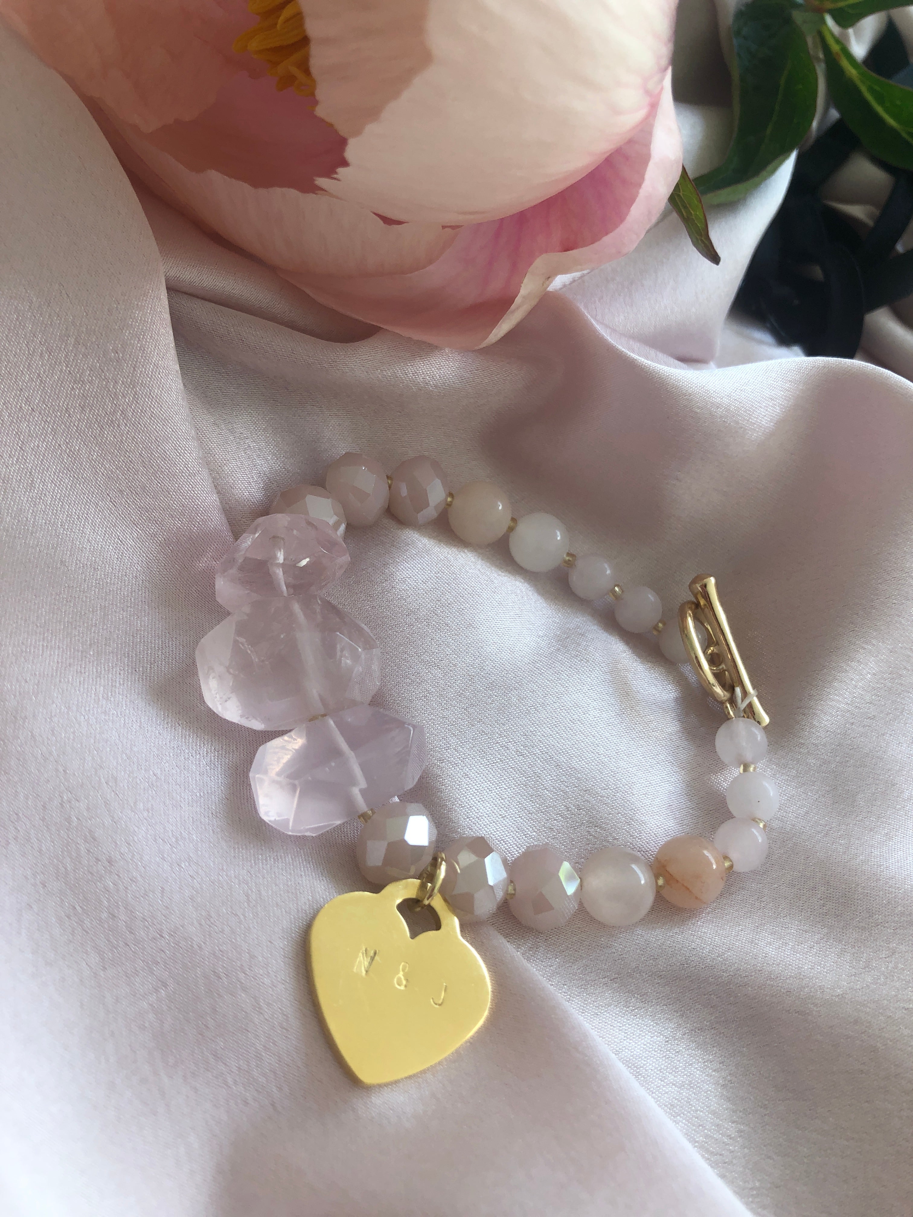 PINK STONE CHUNKY LOVE HEART BRACELET