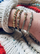 Looks great accompanied with one of our tennis bracelets or other chord bracelets as shown in the stack image